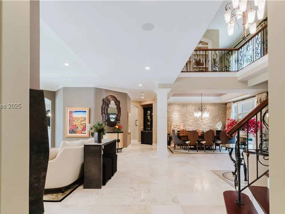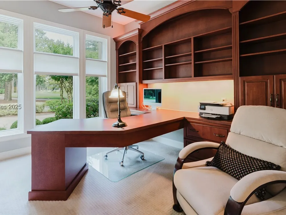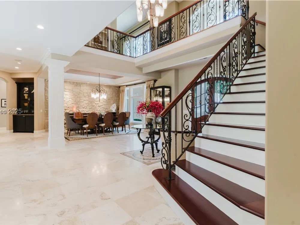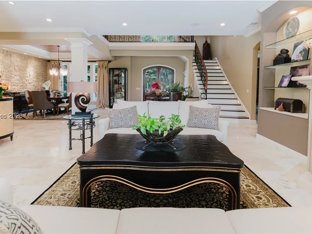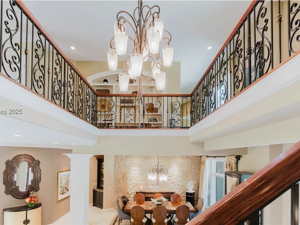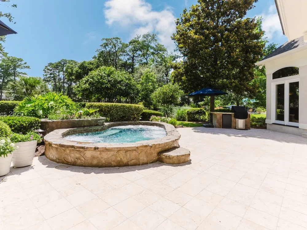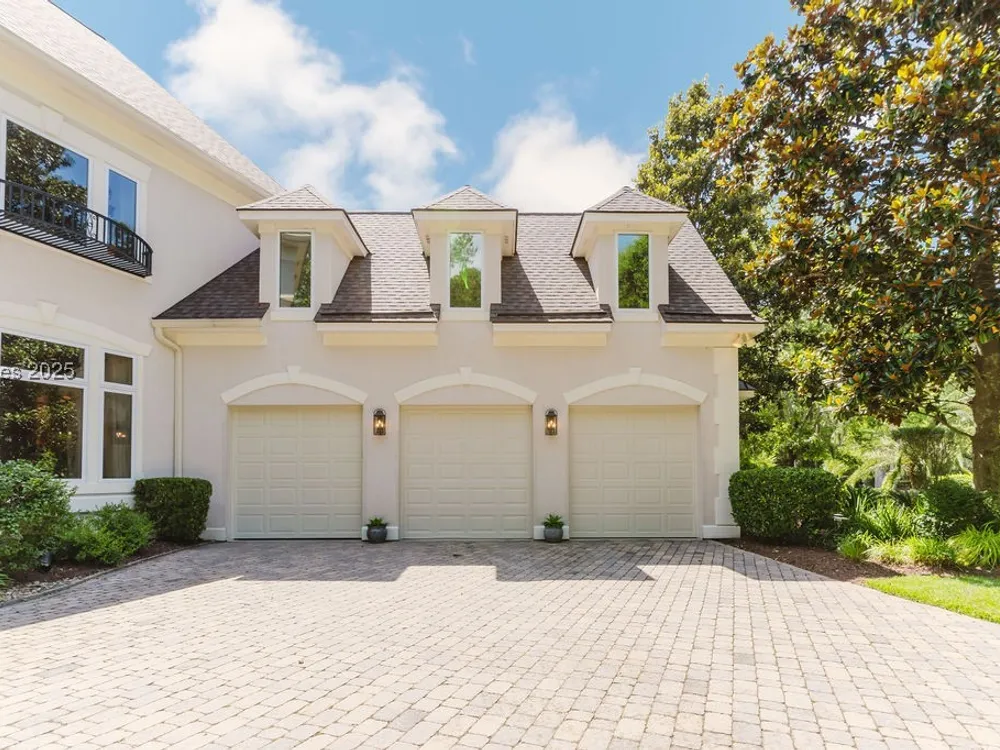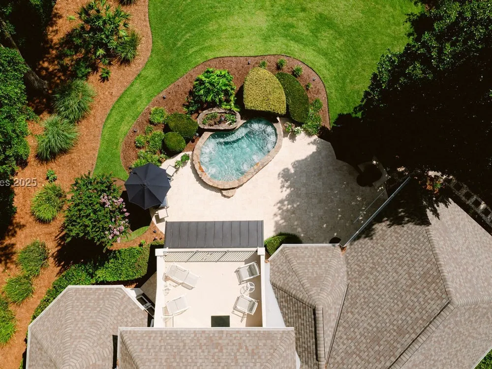 One of the best lots in The Golf Club w/ views of 16th green from front & LONG range 15th green views beyond your luxury stone SPOOL and grassy backyard. Live fencing surrounds this palatial property w/ balcony views. Making meals and memories in your gourmet kitchen or relaxing in your media room loft gives everyone ample space to enjoy. Create storied nights w/friends in your luxurious living areas and later retire in the bonus room above 3 car garage which houses all of your toys! The master suite w/ dedicated office space on primary opens to your outdoor playground with large covered veranda to take advantage of our lowcountry lifestyle.