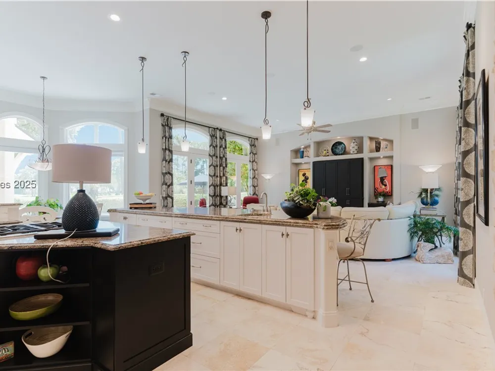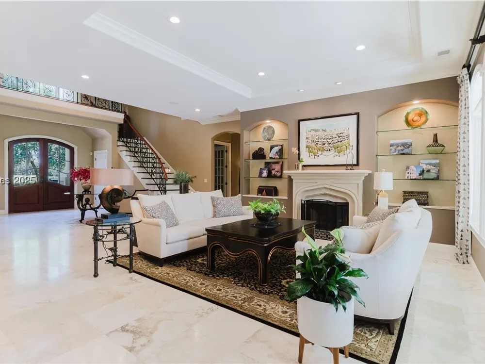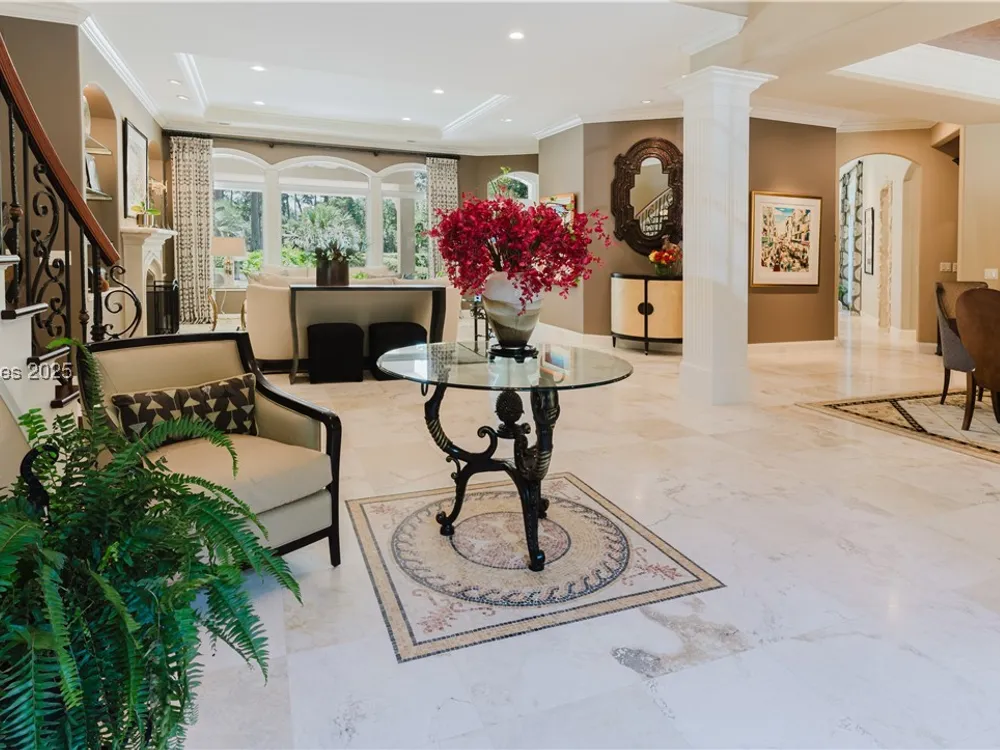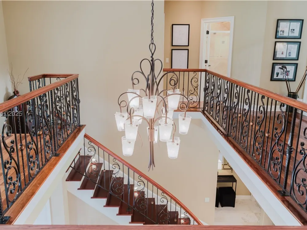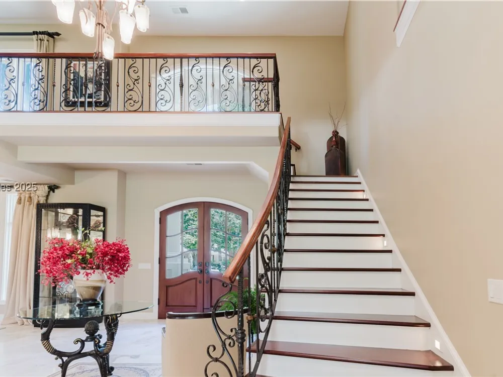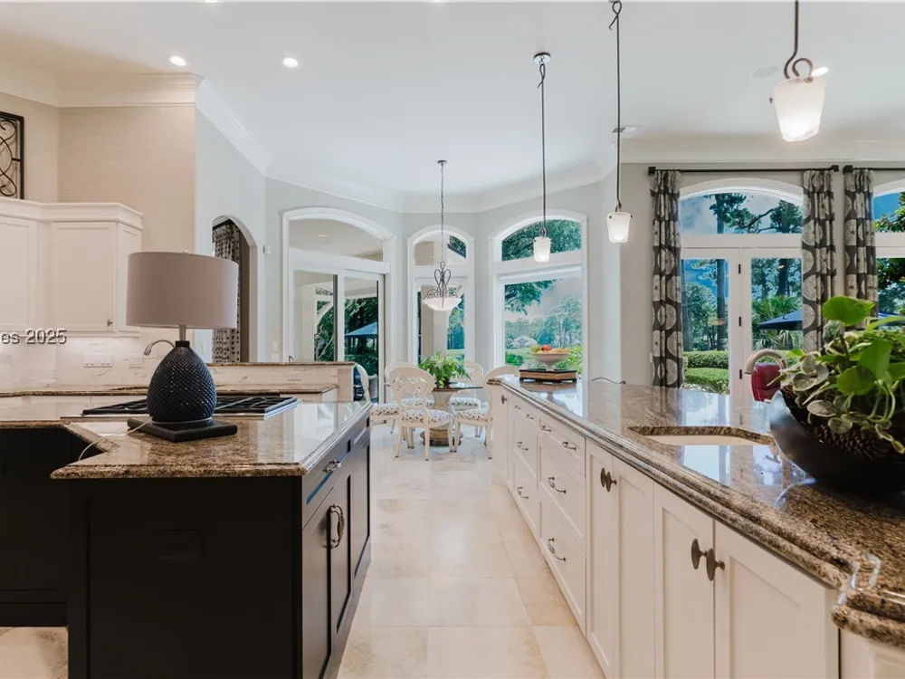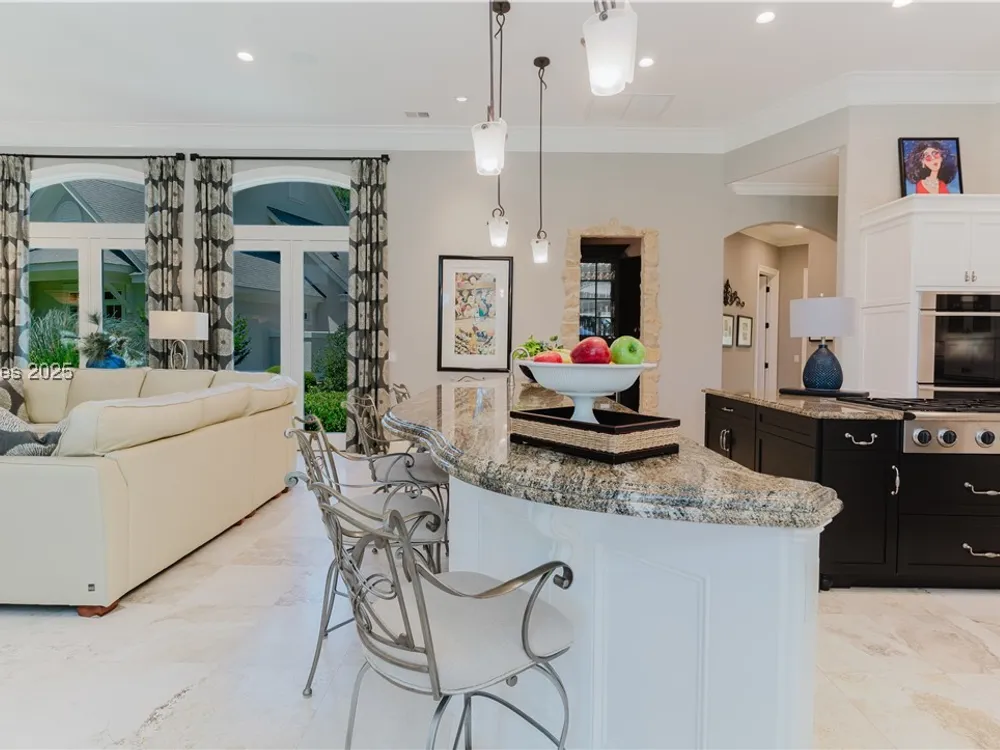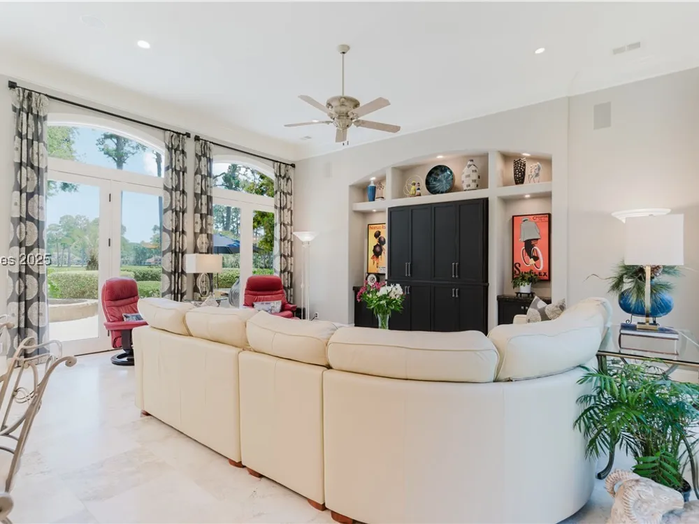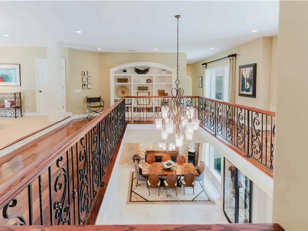 One of the best lots in The Golf Club w/ views of 16th green from front & LONG range 15th green views beyond your luxury stone SPOOL and grassy backyard. Live fencing surrounds this palatial property w/ balcony views. Making meals and memories in your gourmet kitchen or relaxing in your media room loft gives everyone ample space to enjoy. Create storied nights w/friends in your luxurious living areas and later retire in the bonus room above 3 car garage which houses all of your toys! The master suite w/ dedicated office space on primary opens to your outdoor playground with large covered veranda to take advantage of our lowcountry lifestyle.
