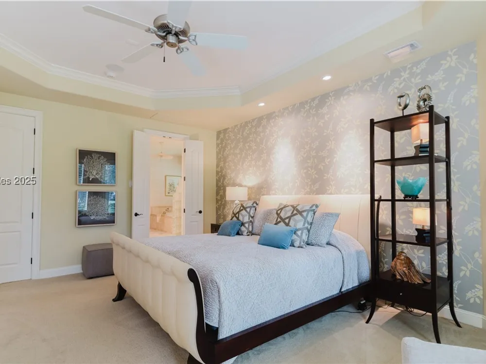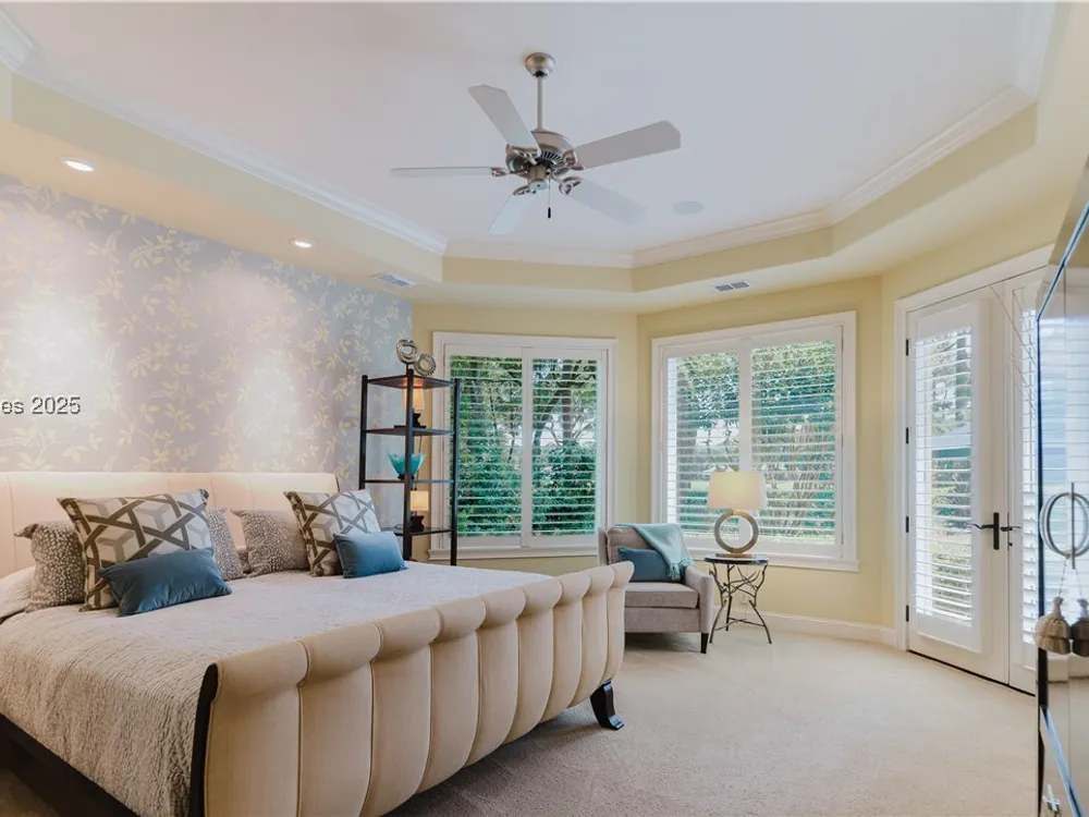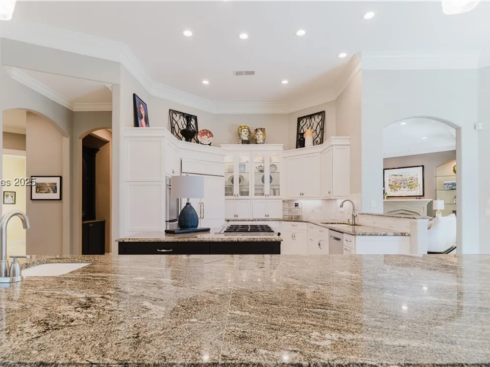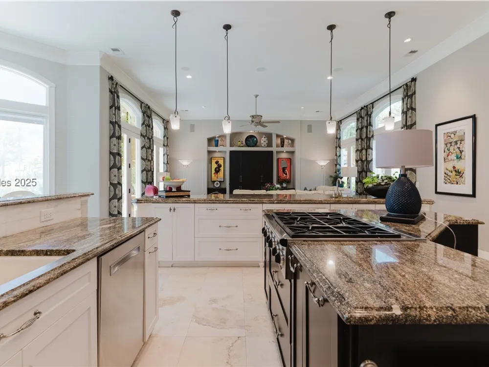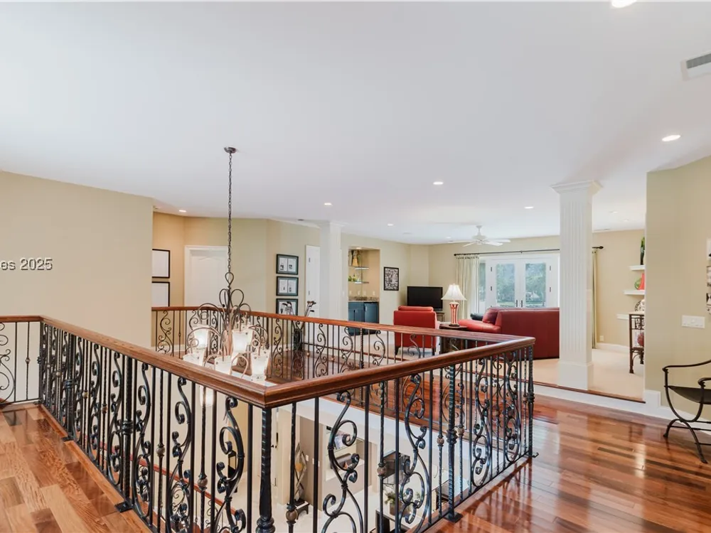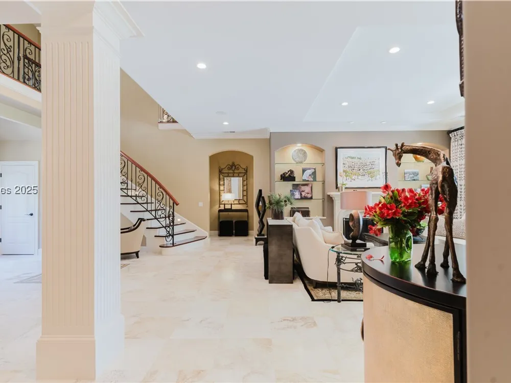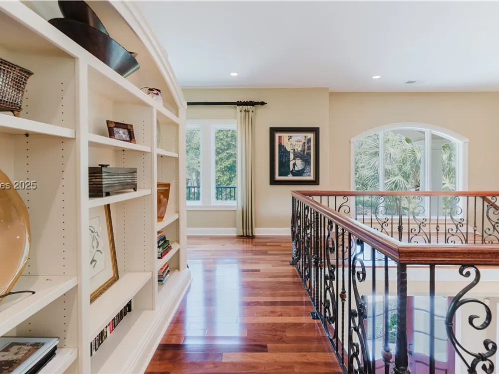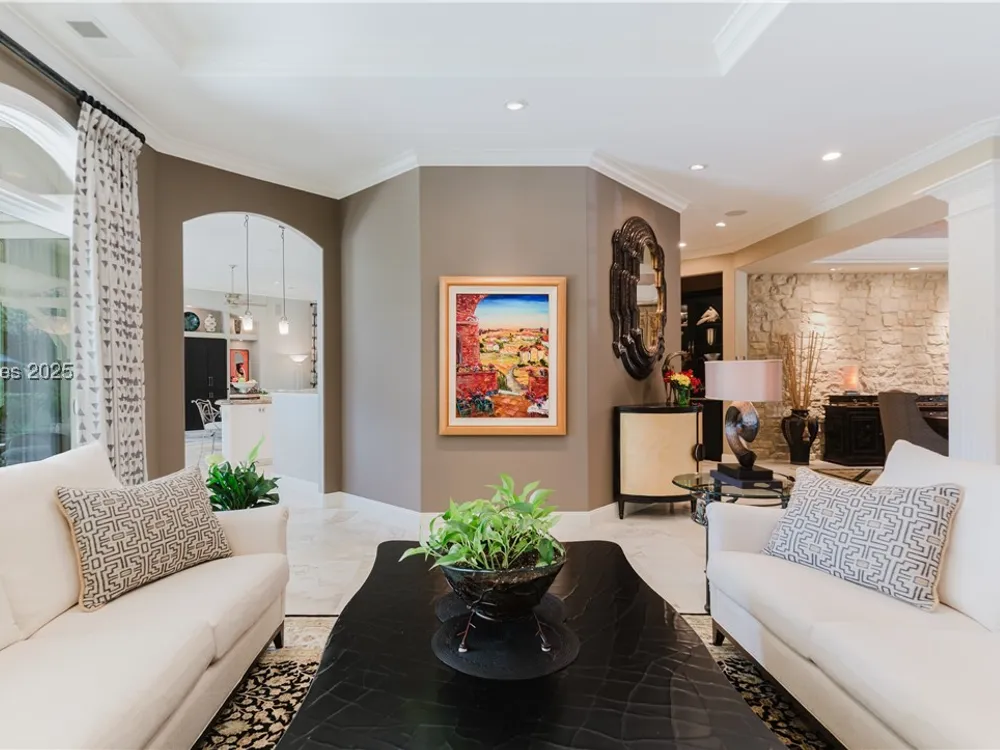 One of the best lots in The Golf Club w/ views of 16th green from front & LONG range 15th green views beyond your luxury stone SPOOL and grassy backyard. Live fencing surrounds this palatial property w/ balcony views. Making meals and memories in your gourmet kitchen or relaxing in your media room loft gives everyone ample space to enjoy. Create storied nights w/friends in your luxurious living areas and later retire in the bonus room above 3 car garage which houses all of your toys! The master suite w/ dedicated office space on primary opens to your outdoor playground with large covered veranda to take advantage of our lowcountry lifestyle.