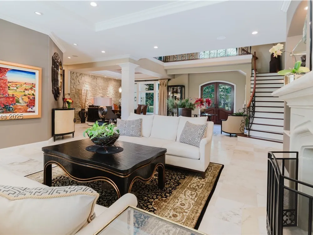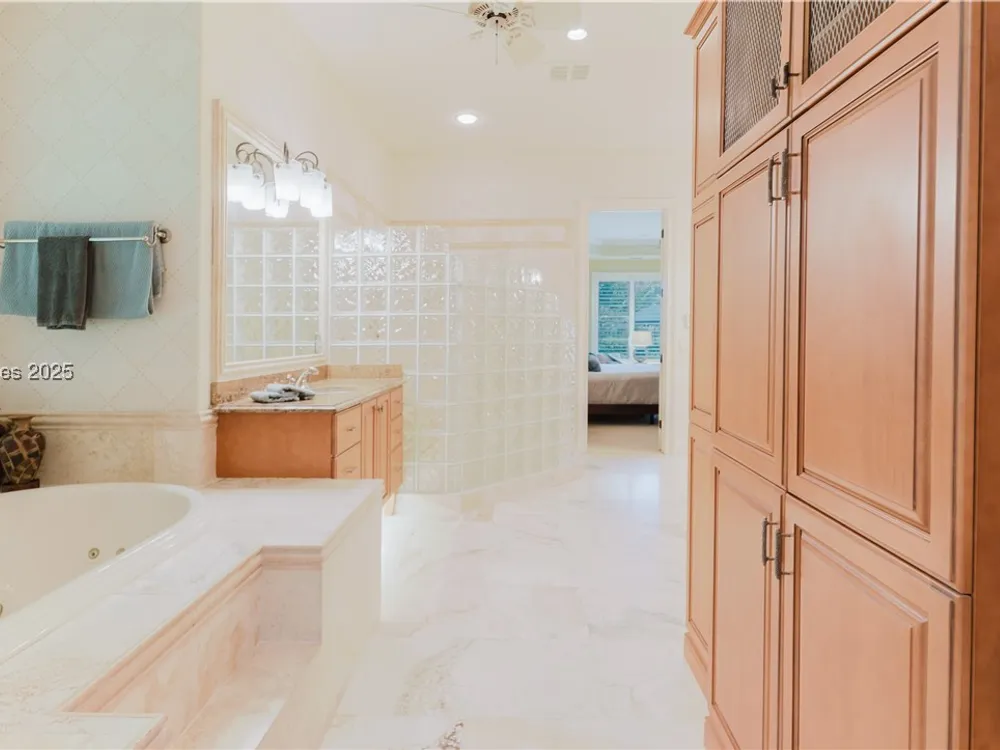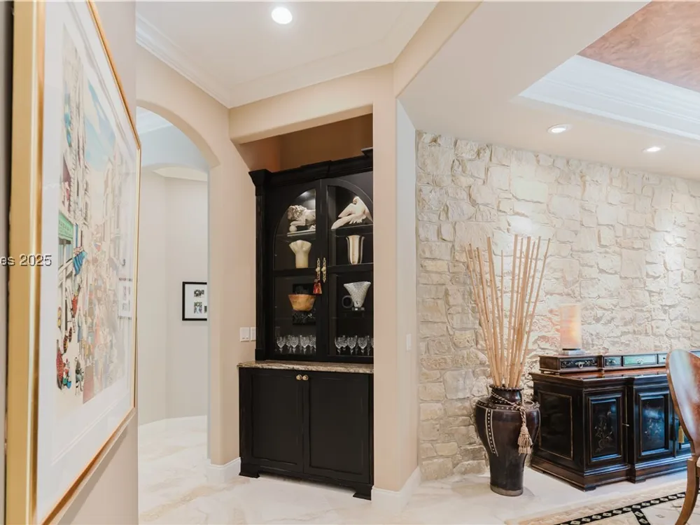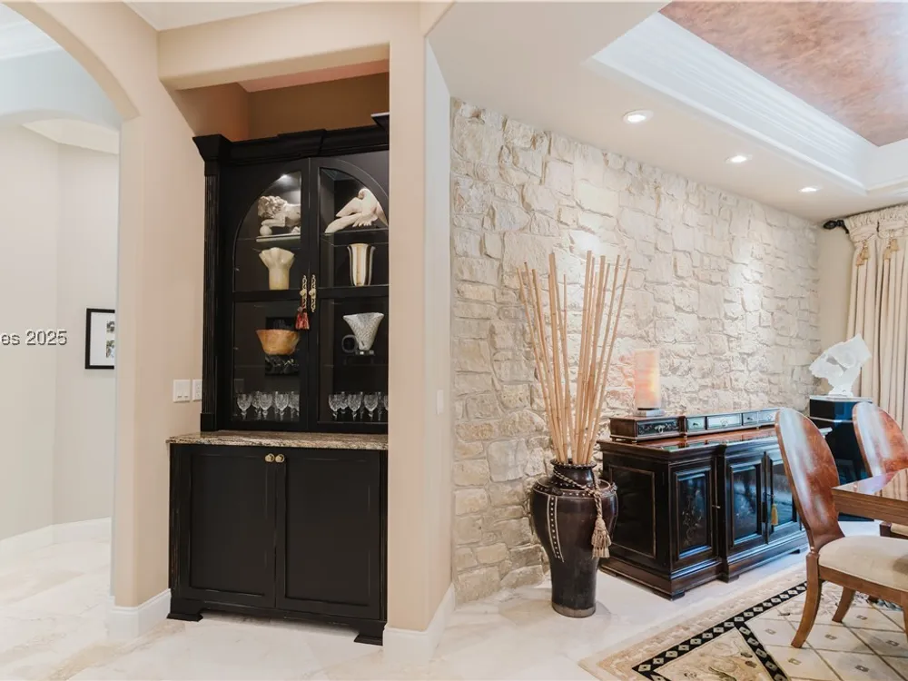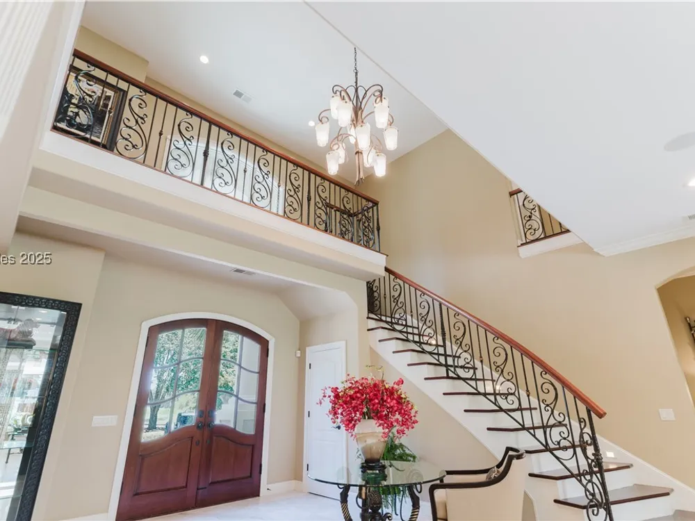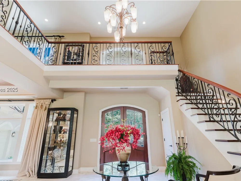 - Attic Access, Wet Bar, Bookcases, Built-in Features, Tray Ceiling(s), Ceiling Fan(s), Cathedral Ceiling(s), Fireplace, High Ceilings, Hot Tub/Spa, Jetted Tub, Main Level Primary, Multiple Primary Bathrooms, Smooth Ceilings, Separate Shower, Smart Thermostat, Vaulted Ceiling(s), Window Treatments, Entrance Foyer, Eat-in Kitchen, In-Law Floorplan