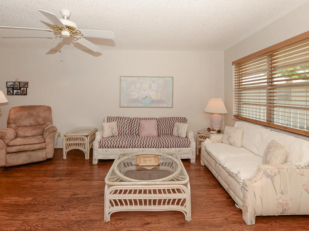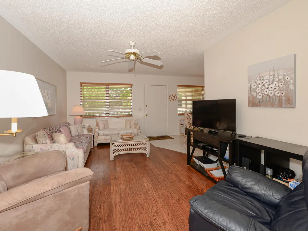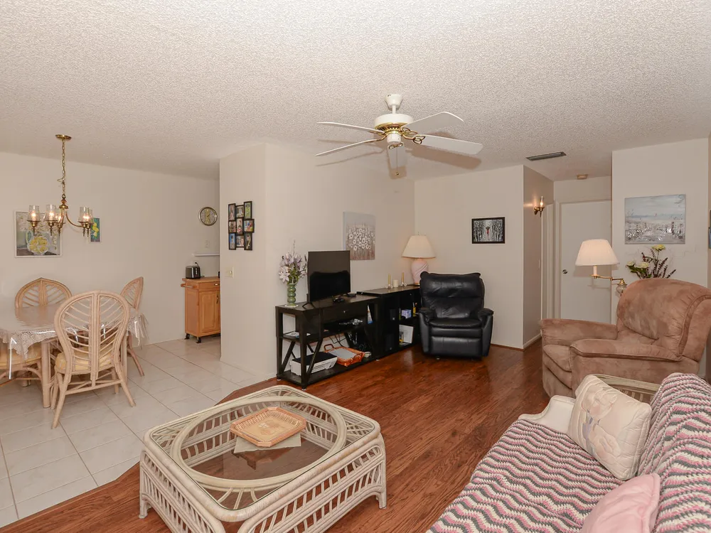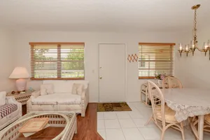 Welcome home to this fully furnished, 1-bedroom, 1.5 bath, turnkey condo with everything included; all you need is your toothbrush. Very clean and well-maintained with newer AC (Dec. 2020), pretty wood-like flooring, and a lovely, private, screened back porch with no neighbors behind you. Corner unit with lots of natural light, solid wood cabinets, and a great location with communal laundry right out your front door. Life is easy with lawn care, cable, internet, water, trash removal, sewer, exterior maintenance, all included. Nestled in the quiet but active 55+ community of Vista Saint Lucie with many activities to enjoy, including billiards, arts & crafts, pool, hot tub, gym, library, golf club, bowling league, tennis, pickleball, shuffleboard, potlucks, bingo, dances, and various classe
