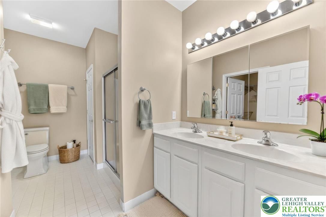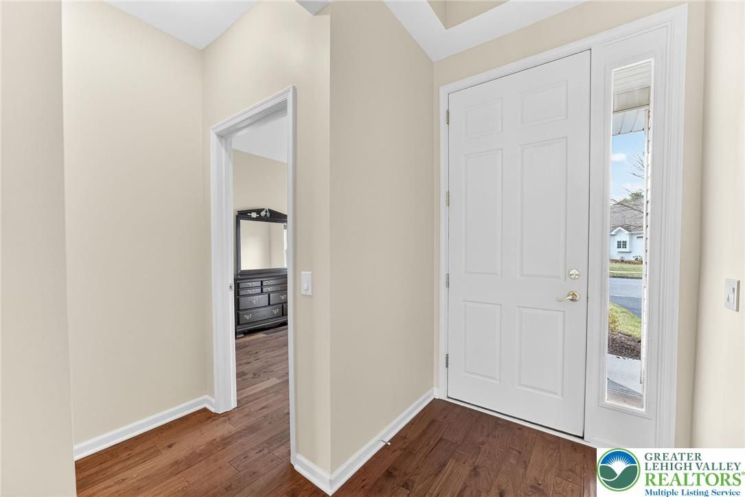 OPEN HOUSE SAT & SUN 3/21 & 3/22 FROM 11:00 am -1:00 pm - Welcome to the desirable 55+ community of Highlands of Glenmoor, where comfort, convenience, and easy single-floor living come together beautifully. This exceptionally maintained 2-bedroom, 2-bath home offers a bright and airy open floor plan, enhanced by updated luxury vinyl plank flooring throughout. The inviting living room features vaulted ceilings and flows seamlessly into the dining area, creating a welcoming space perfect for both everyday living and entertaining. Just beyond, the sunroom is filled with natural light and offers the perfect spot to enjoy your morning coffee, unwind with a good book, or create your own cozy hobby space—all with access to a private patio overlooking peaceful green space. The modern kitchen is thoughtfully designed with stainless steel appliances, including a microwave, dishwasher, and double-door refrigerator, along with ample cabinetry and a pantry for all your storage needs. The generously sized primary suite provides a relaxing retreat, complete with a large bedroom, a 9x7 walk-in closet, and a private bath featuring double sinks, a walk-in shower, and a linen closet. A second bedroom and full bath offer flexibility for guests, a home office, or additional living space. Additional highlights include a separate laundry room with storage, gas heat, central air, public water and sewer, and fresh paint throughout. A 2-car garage and driveway provide plenty of parking. Ideally located with easy access to Routes 33 and 78, and just minutes from Wegmans, Target, and a variety of shops and restaurants. The HOA fee includes access to the community clubhouse and fitness center, adding to the low-maintenance lifestyle. Don’t miss the opportunity to enjoy easy, comfortable living in this sought-after community!
