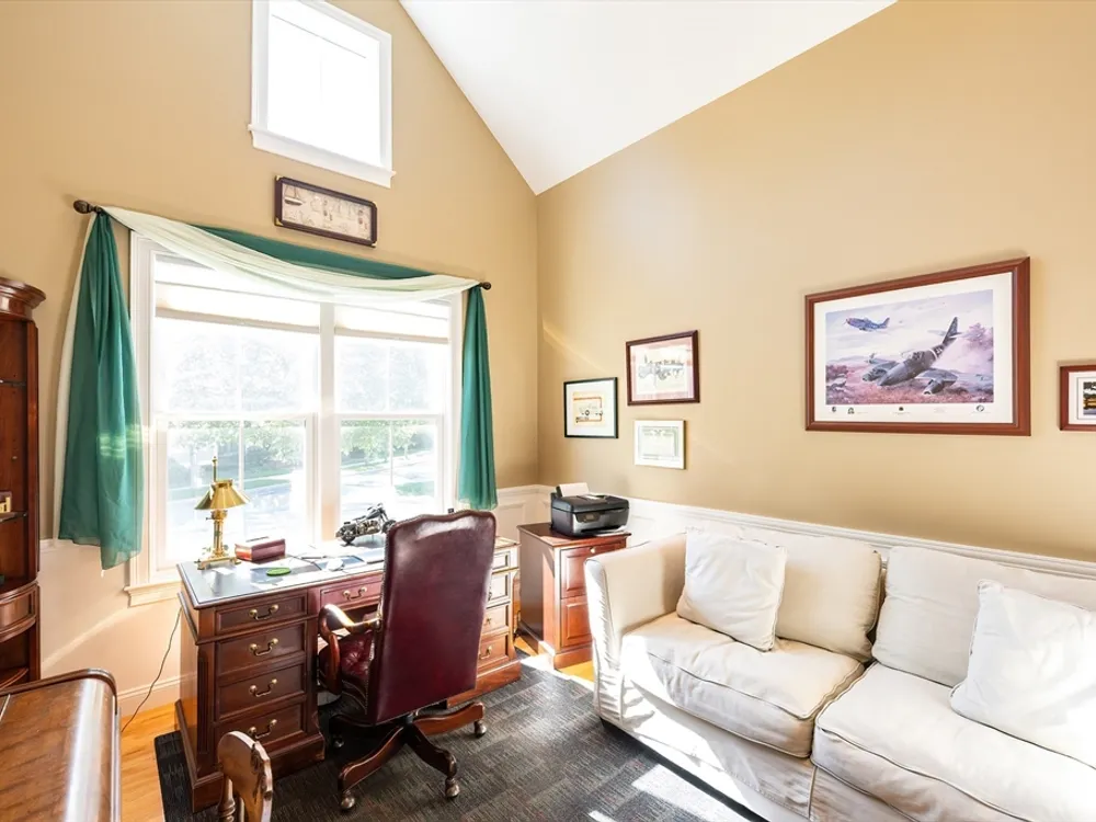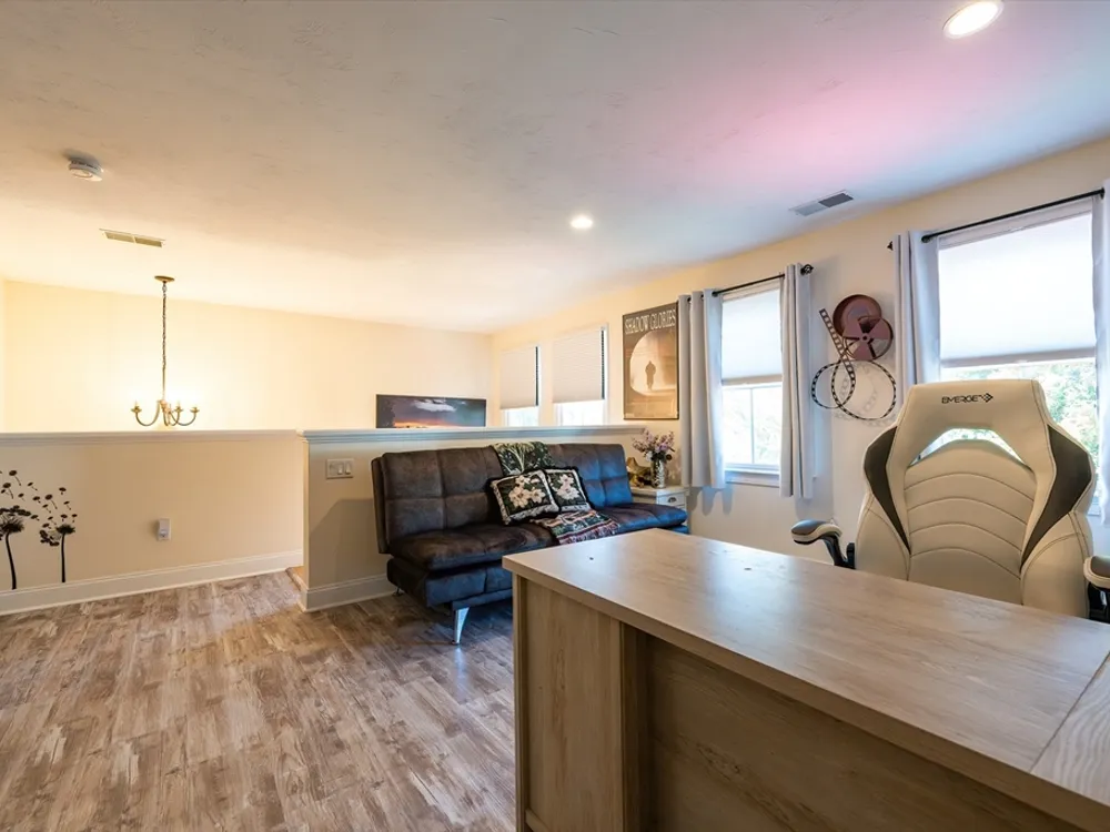 Presenting an "Expanded Bailey" at Red Mill Village. A RARE END HOME with an outstanding floor plan design that checks all the boxes! A very inviting entrance allows restful sunny afternoons on the Farmer’s Porch. Enter into a two story foyer with a beautiful staircase. To the right, behind French doors, is a perfect Den or Home Office overlooking green space. To the left is a beautiful Kitchen featuring seating for 2 at the island bar. Natural gas cooking, granite c-tops, ss appliances and a Dining room to entertain in. The cathedral ceiling Living Room features a gas fireplace & a wall of windows overlooking the private, fenced in Yard and Patio. Two Primary Bedrooms each with an en-suite Bath one on the 1st floor & one on the 2nd floor. Laundry room is on the 1st floor. An oversized Loft that is quiet & private completes the 2,415 sq ft of living space. Tons of storage in lower level & a 2 or 3 car garage! Min to I495. Enjoy maintenance free lifestyle! Pet friendly. Age 50+ is OK
