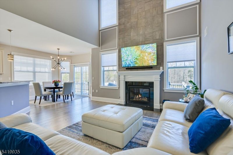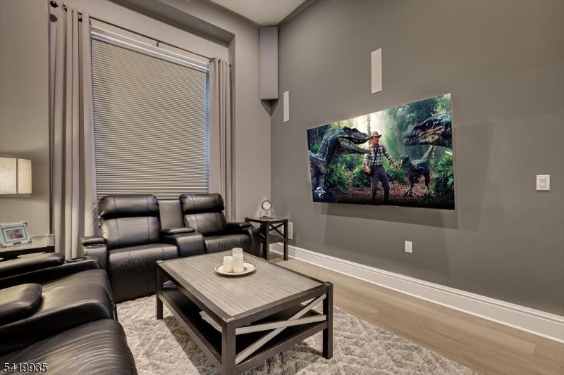 Welcome to this stunning Wellington model in the desirable Gateway at Royce Brook. Better than new with over $100,000 in upgrades (pre-tariffs), this home sits on a premium lot backing to open space for added privacy. Features include a neutral gray/taupe palette, abundant recessed lighting, and hardwood floors on the first level (excluding baths/bedrooms). French doors enclose a custom home theater with surround sound, KEF speakers, subwoofers, and remote blinds. Formal dining room with Craftsman chandelier, sconces, and decorative molding. The kitchen offers 42" cabinets, granite counters, breakfast bar, pendant lighting, GE stainless appliances including LG InstaView refrigerator, and a breakfast nook with access to the deck overlooking the reservoir. Open to the family room with gas fireplace and dramatic tile accent wall. Primary suite with tray ceiling, dual WICs, and en-suite bath with soaking tub, dual vanity, and separate shower. Loft with built-in speakers, Ethernet, ceiling WAP (wireless access point) for enhanced 2.4 & 5GHZ wireless internet signals throughout the entire house and Roku. Guest bedroom with WIC and upgraded bath. First-floor laundry with GE washer/dryer. Oversized 2-car garage with storage and MyQ opener. 25x14 deck with gas hookup and scenic reservoir views.