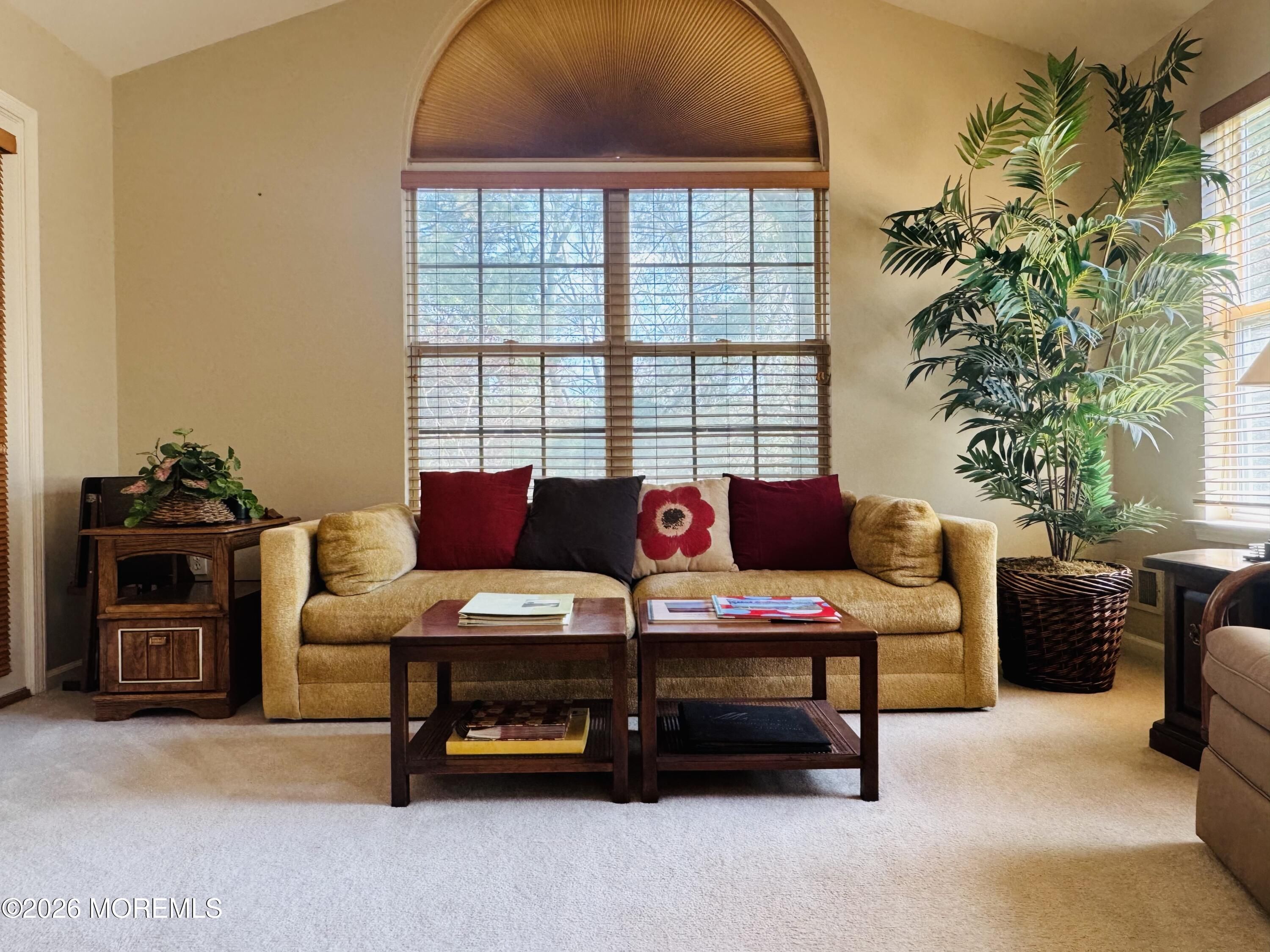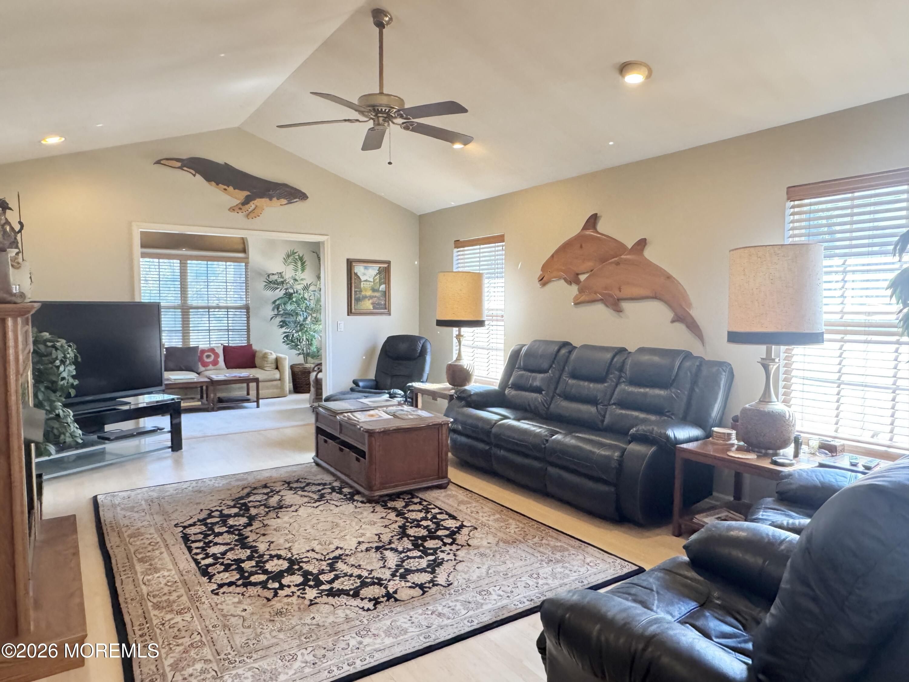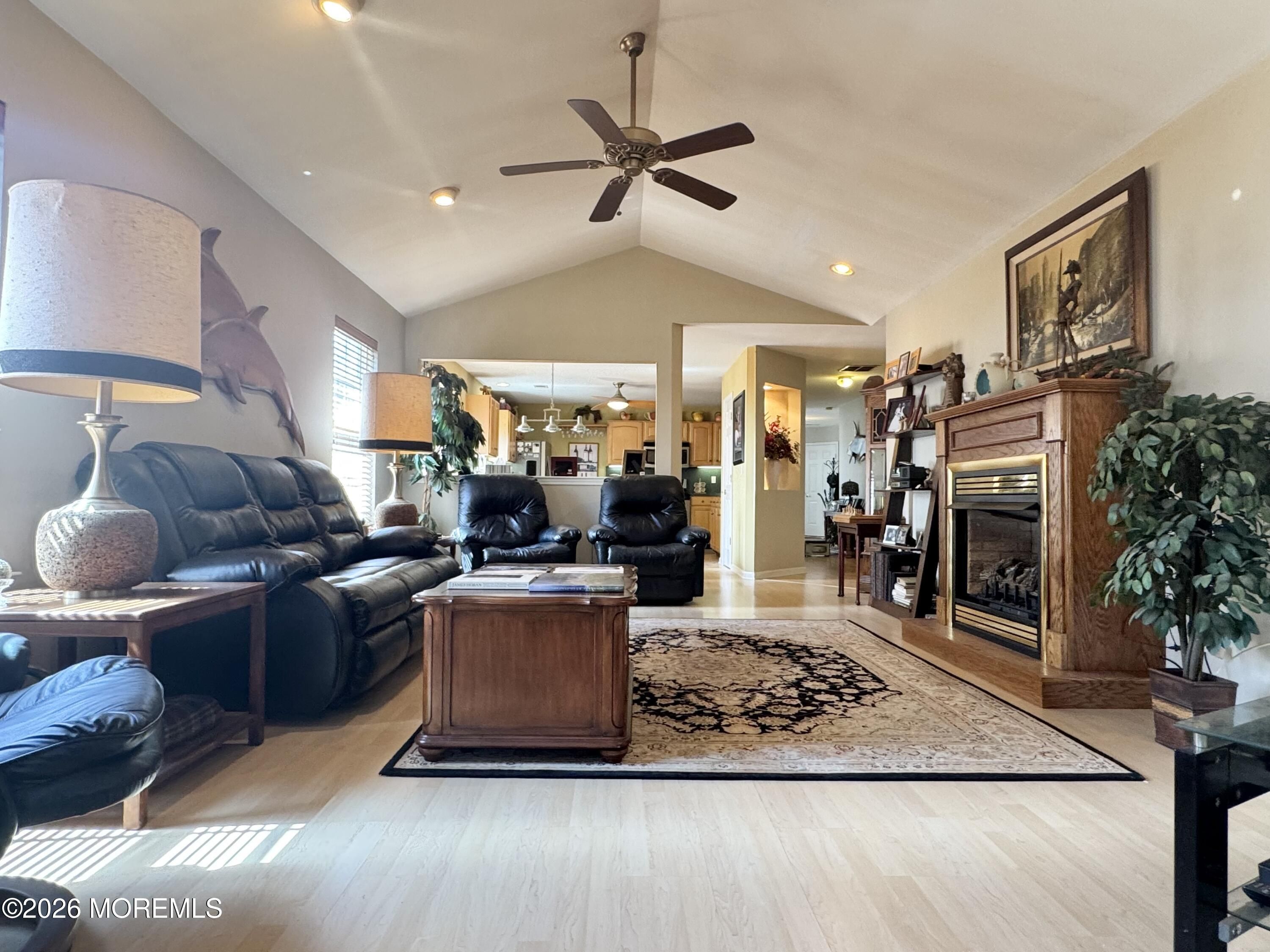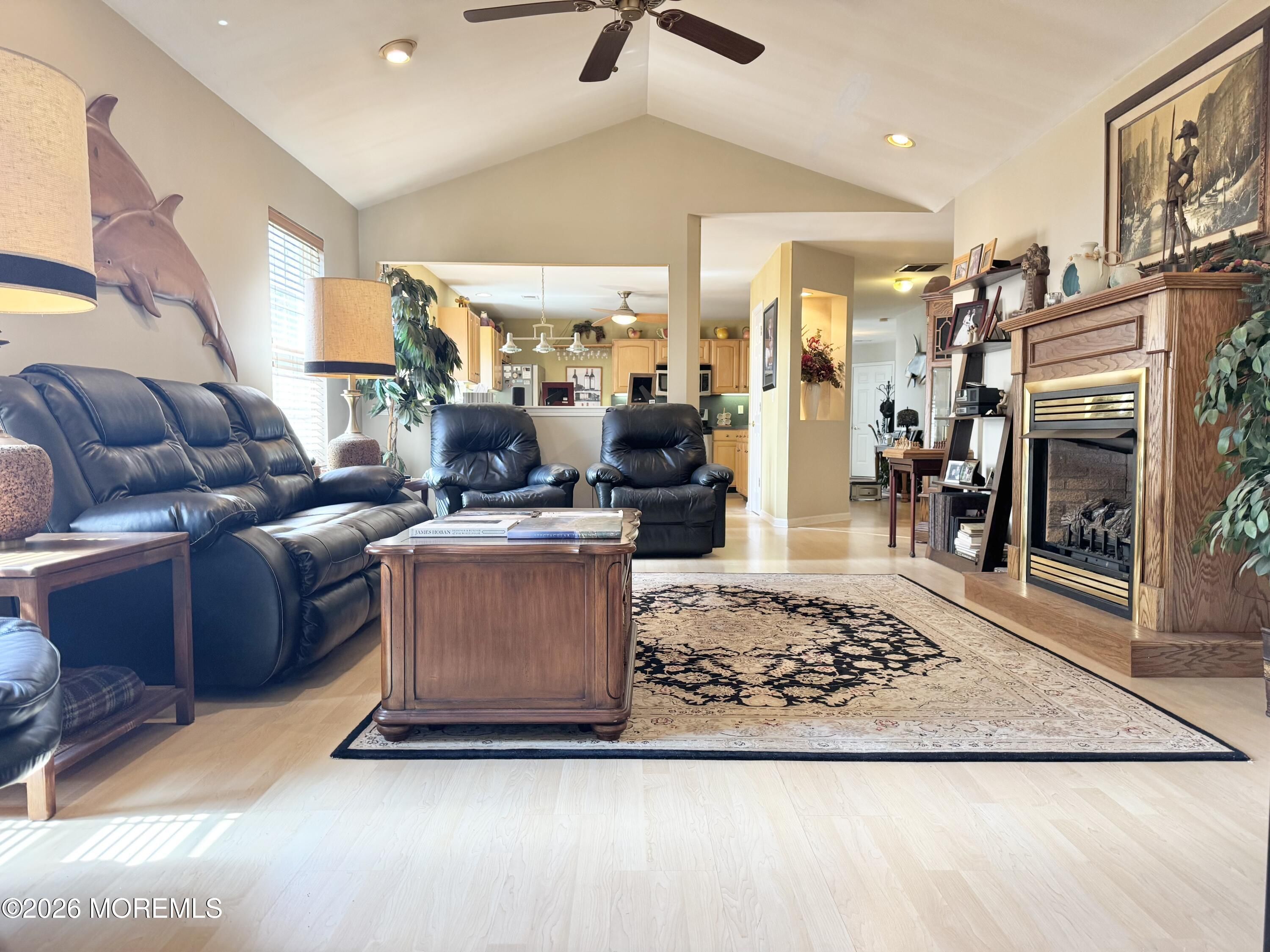 THIS IS A COMING SOON LISTING AND CANNOT BE SHOWN UNTIL 4/10. Welcome to this beautifully expanded Fairways III ranch in the highly sought-after Fairways at Lake Ridge community! Offering approximately 2,400 square feet of living space (over 2,500 sq ft including the stunning Florida room), this spacious home features 3 bedrooms, 2 full bathrooms, and rough plumbing in place for a potential half bath. The thoughtfully designed layout includes a grand, open foyer that leads into an impressive combined living and dining area with soaring cathedral ceilings, as well as an oversized family room perfect for relaxing or entertaining. The gourmet eat-in kitchen boasts a large island and ample space for dining, while a bright and inviting Florida room provides the perfect retreat. The expansive primary suite offers a walk-in closet and a luxurious en-suite bath complete with a jacuzzi tub, double sinks, and a separate shower. An additional den--exclusive to this extended model--offers flexibility as a potential fourth bedroom or home office. Additional highlights include a ventless fireplace, a brand-new roof with long-term durability, a two-car garage with extra storage, and a beautifully private lot backing to serene woods. Located in a gated, amenity-rich community featuring a clubhouse, indoor and outdoor pools, fitness center, sports courts, library, and scenic walking trails, this home is ideally situated near Lakewood, Jackson, and Toms River, as well as close to multiple houses of worship--making it a perfect blend of comfort, convenience, and lifestyle.