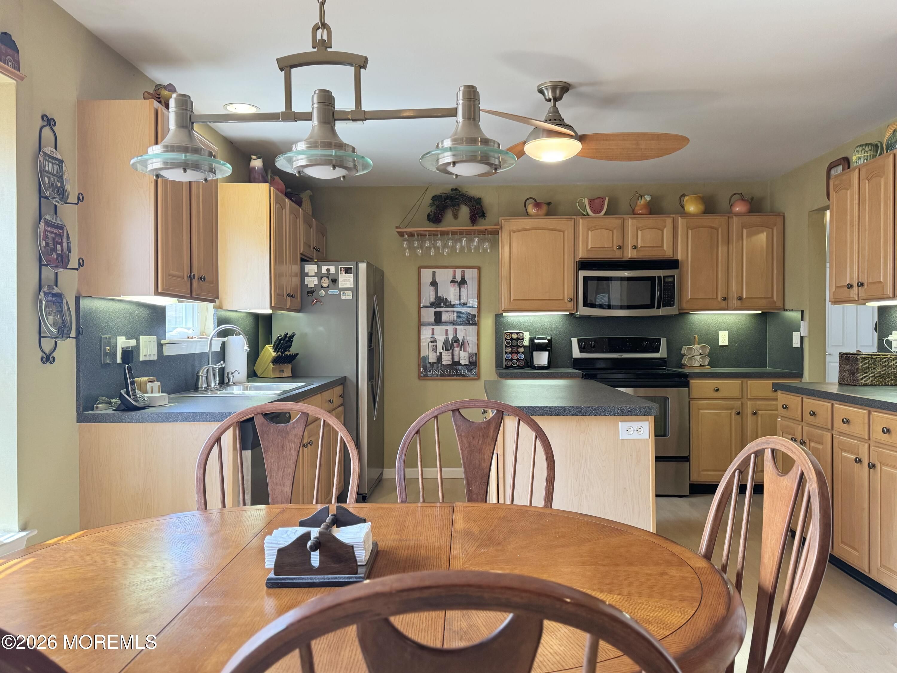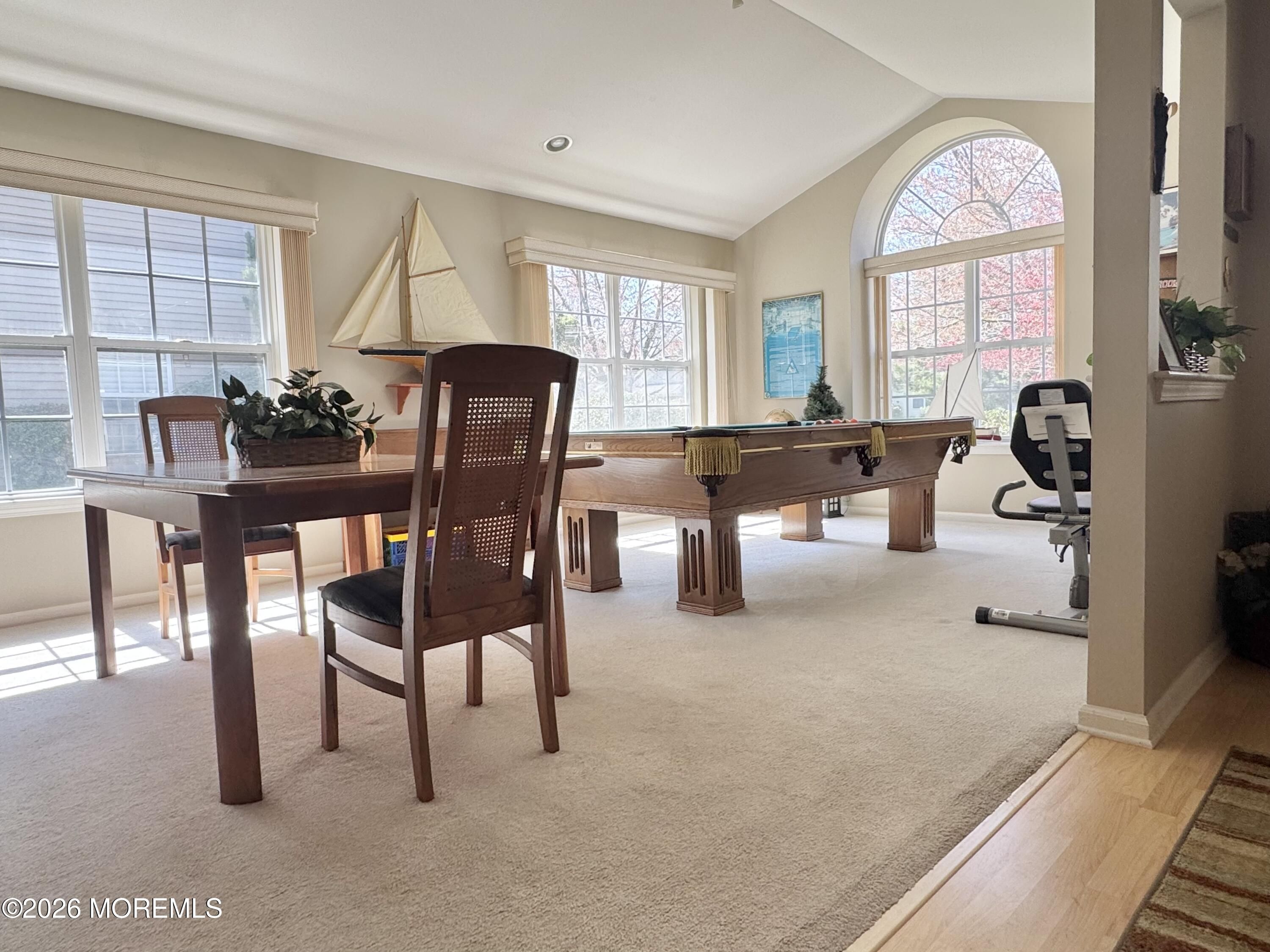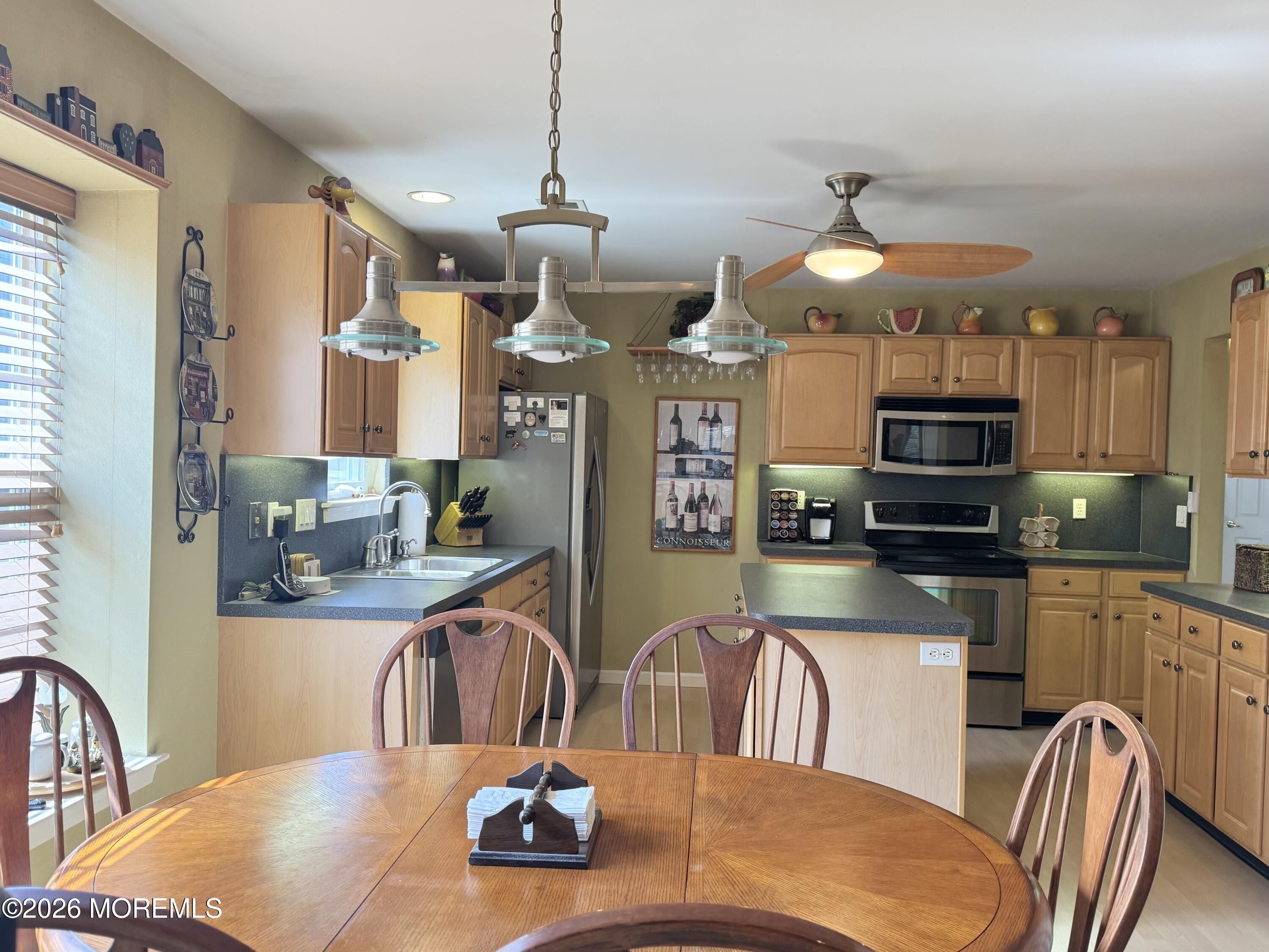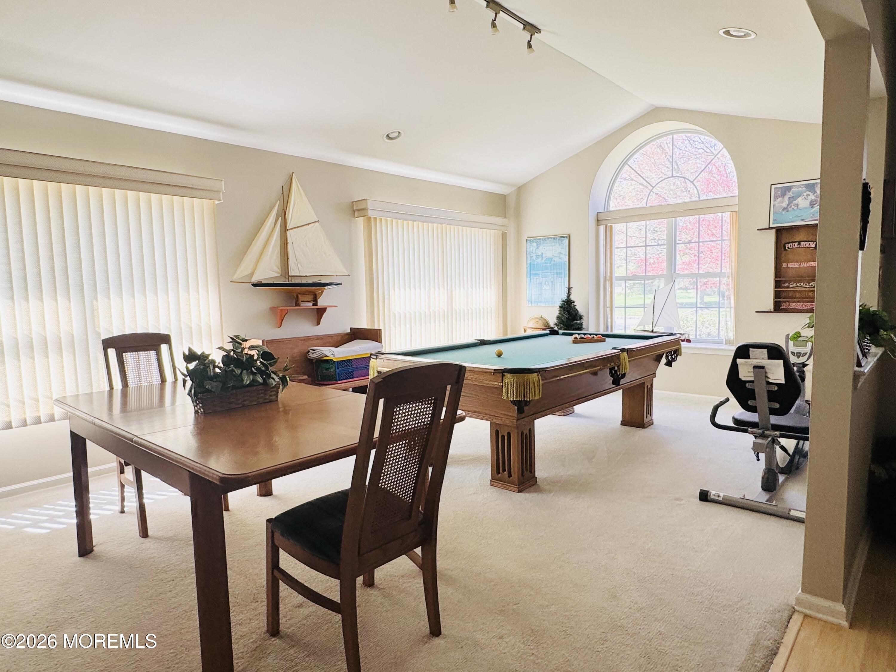 THIS IS A COMING SOON LISTING AND CANNOT BE SHOWN UNTIL 4/10. Welcome to this beautifully expanded Fairways III ranch in the highly sought-after Fairways at Lake Ridge community! Offering approximately 2,400 square feet of living space (over 2,500 sq ft including the stunning Florida room), this spacious home features 3 bedrooms, 2 full bathrooms, and rough plumbing in place for a potential half bath. The thoughtfully designed layout includes a grand, open foyer that leads into an impressive combined living and dining area with soaring cathedral ceilings, as well as an oversized family room perfect for relaxing or entertaining. The gourmet eat-in kitchen boasts a large island and ample space for dining, while a bright and inviting Florida room provides the perfect retreat. The expansive primary suite offers a walk-in closet and a luxurious en-suite bath complete with a jacuzzi tub, double sinks, and a separate shower. An additional den--exclusive to this extended model--offers flexibility as a potential fourth bedroom or home office. Additional highlights include a ventless fireplace, a brand-new roof with long-term durability, a two-car garage with extra storage, and a beautifully private lot backing to serene woods. Located in a gated, amenity-rich community featuring a clubhouse, indoor and outdoor pools, fitness center, sports courts, library, and scenic walking trails, this home is ideally situated near Lakewood, Jackson, and Toms River, as well as close to multiple houses of worship--making it a perfect blend of comfort, convenience, and lifestyle.