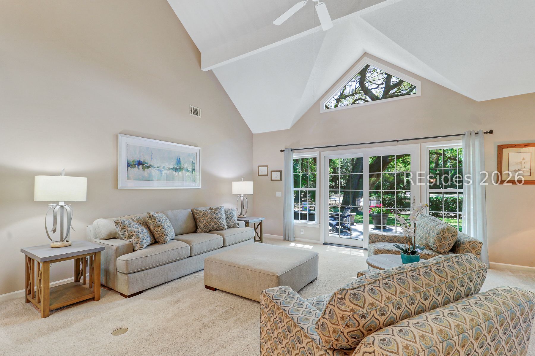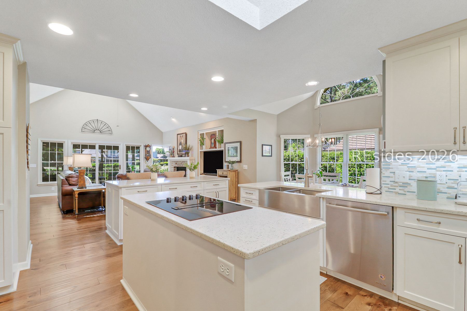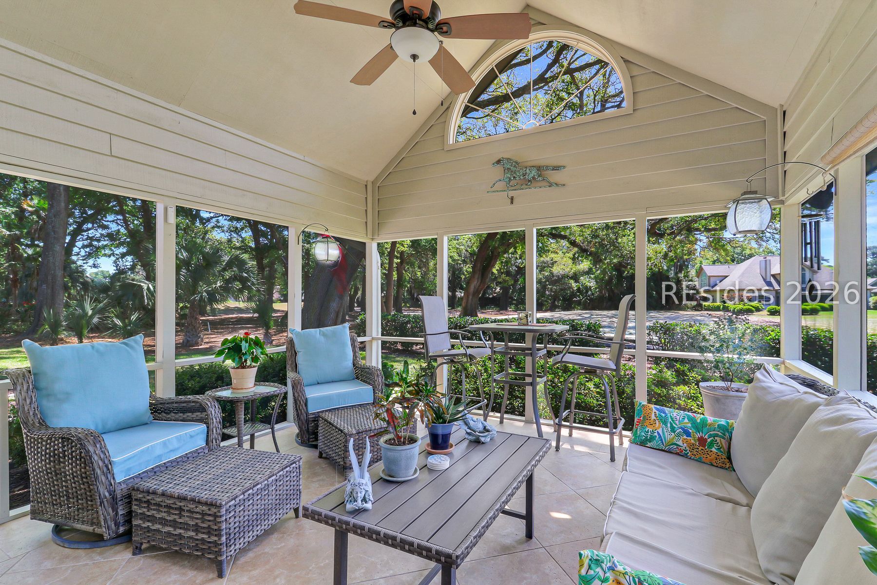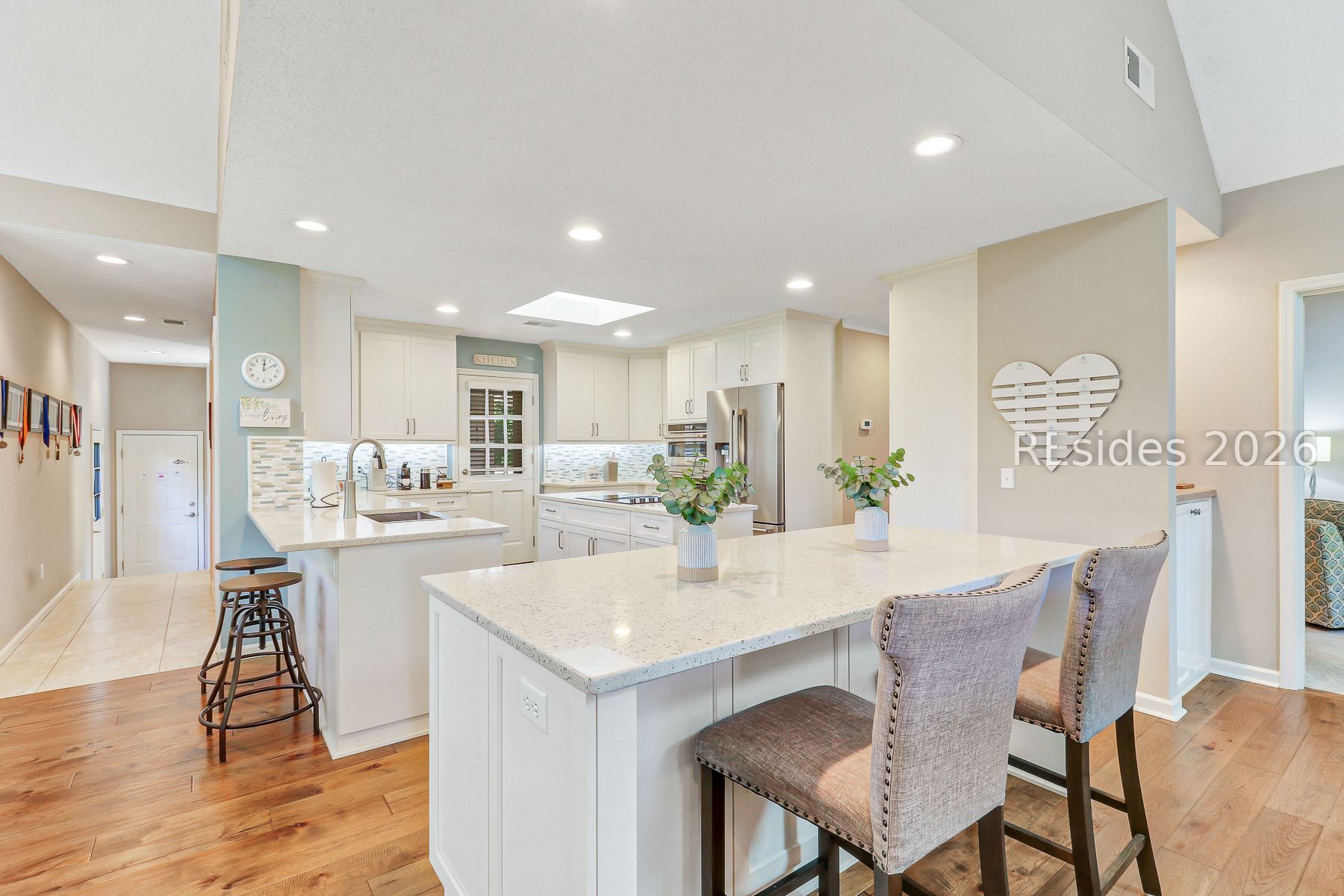 Classic Lowcountry style and inviting curb appeal set the tone for this beautifully renovated 4-bedroom home in Hilton Head Plantation, thoughtfully designed for both comfortable living and effortless entertaining. Inside, you'll find elegant living and dining areas complemented by a light-filled kitchen with a cozy breakfast nook that flows seamlessly into a spacious family room with a cathedral ceiling-creating a warm and functional gathering space. The private primary suite offers a peaceful retreat, complete with a well-appointed bath. Step outside to enjoy the screened porch and paver patio, overlooking the Country Club of Hilton Head golf course and a landscaped backyard framed by majestic oak trees. This serene outdoor setting provides both flexibility and charm, ideal for quiet mornings or hosting guests year-round. Impeccably maintained throughout, the care and attention given to this home are immediately felt the moment you arrive.