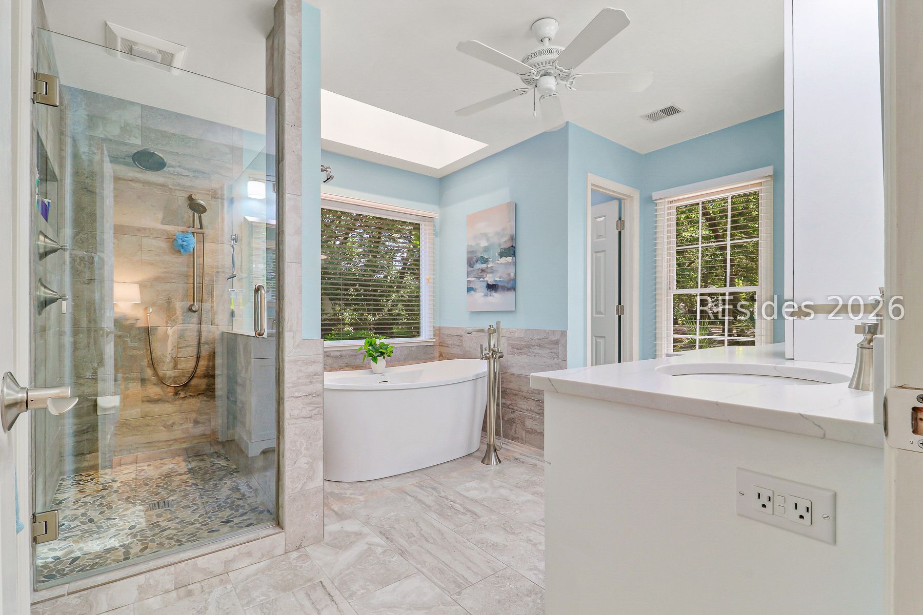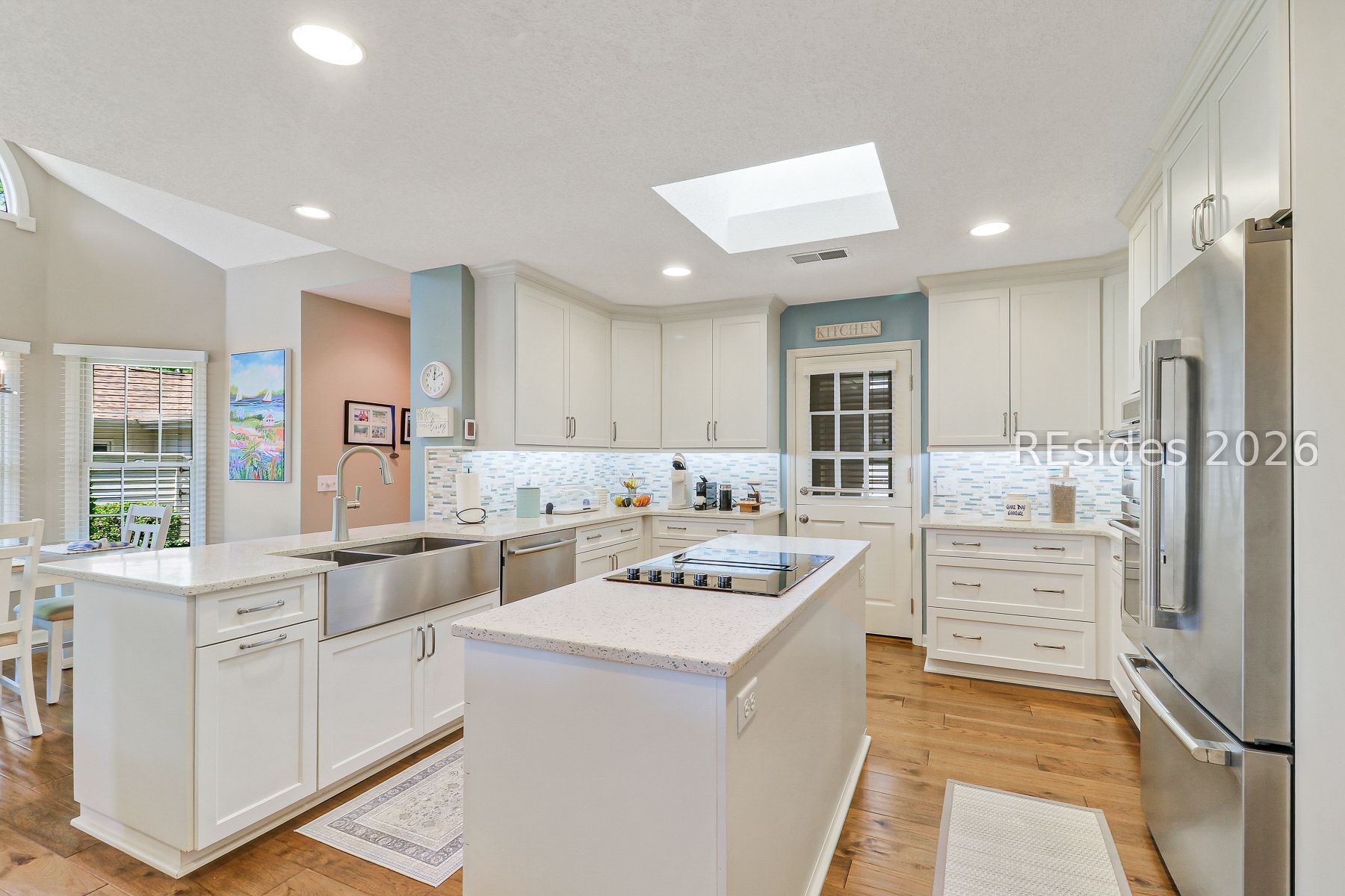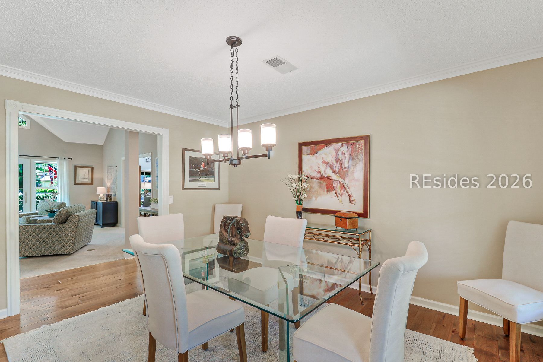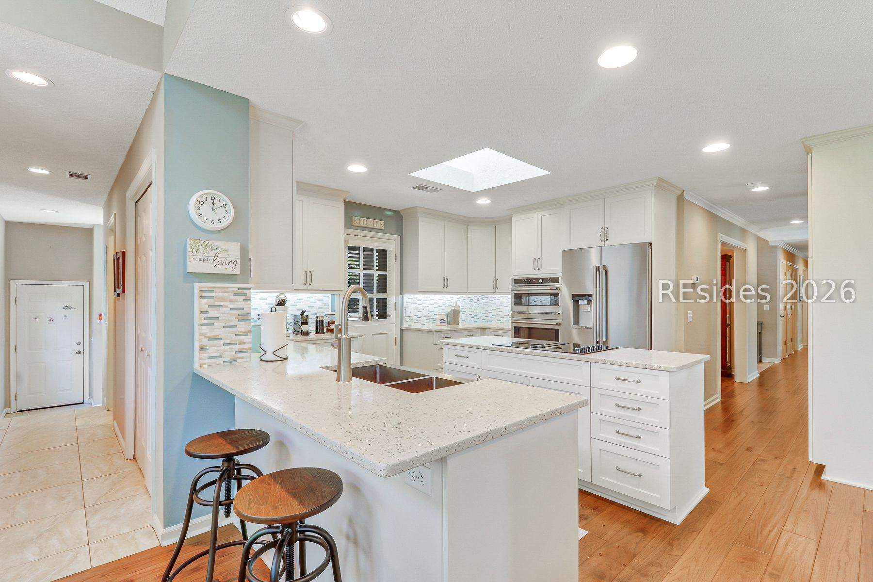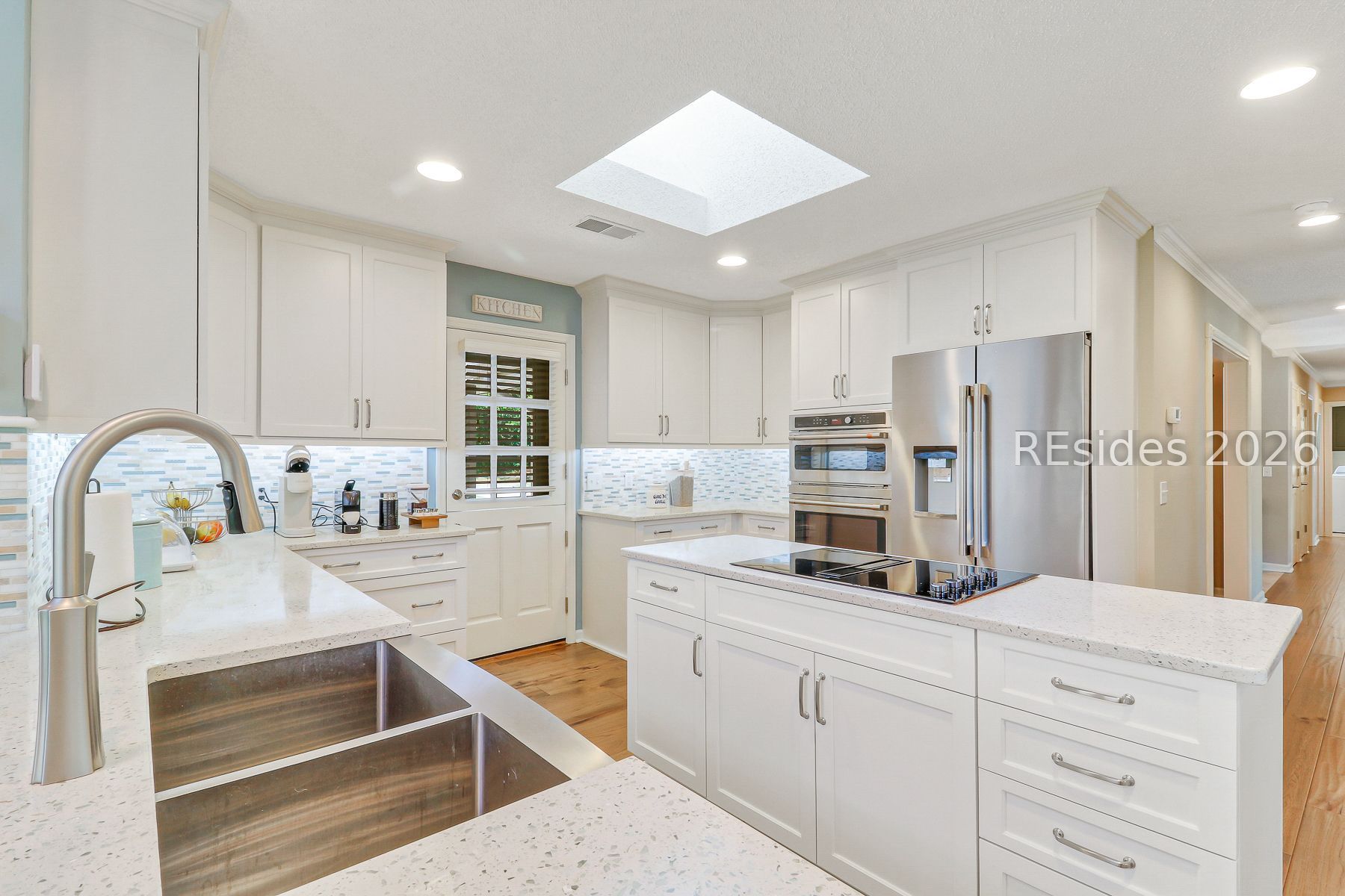 Classic Lowcountry style and inviting curb appeal set the tone for this beautifully renovated 4-bedroom home in Hilton Head Plantation, thoughtfully designed for both comfortable living and effortless entertaining. Inside, you'll find elegant living and dining areas complemented by a light-filled kitchen with a cozy breakfast nook that flows seamlessly into a spacious family room with a cathedral ceiling-creating a warm and functional gathering space. The private primary suite offers a peaceful retreat, complete with a well-appointed bath. Step outside to enjoy the screened porch and paver patio, overlooking the Country Club of Hilton Head golf course and a landscaped backyard framed by majestic oak trees. This serene outdoor setting provides both flexibility and charm, ideal for quiet mornings or hosting guests year-round. Impeccably maintained throughout, the care and attention given to this home are immediately felt the moment you arrive.