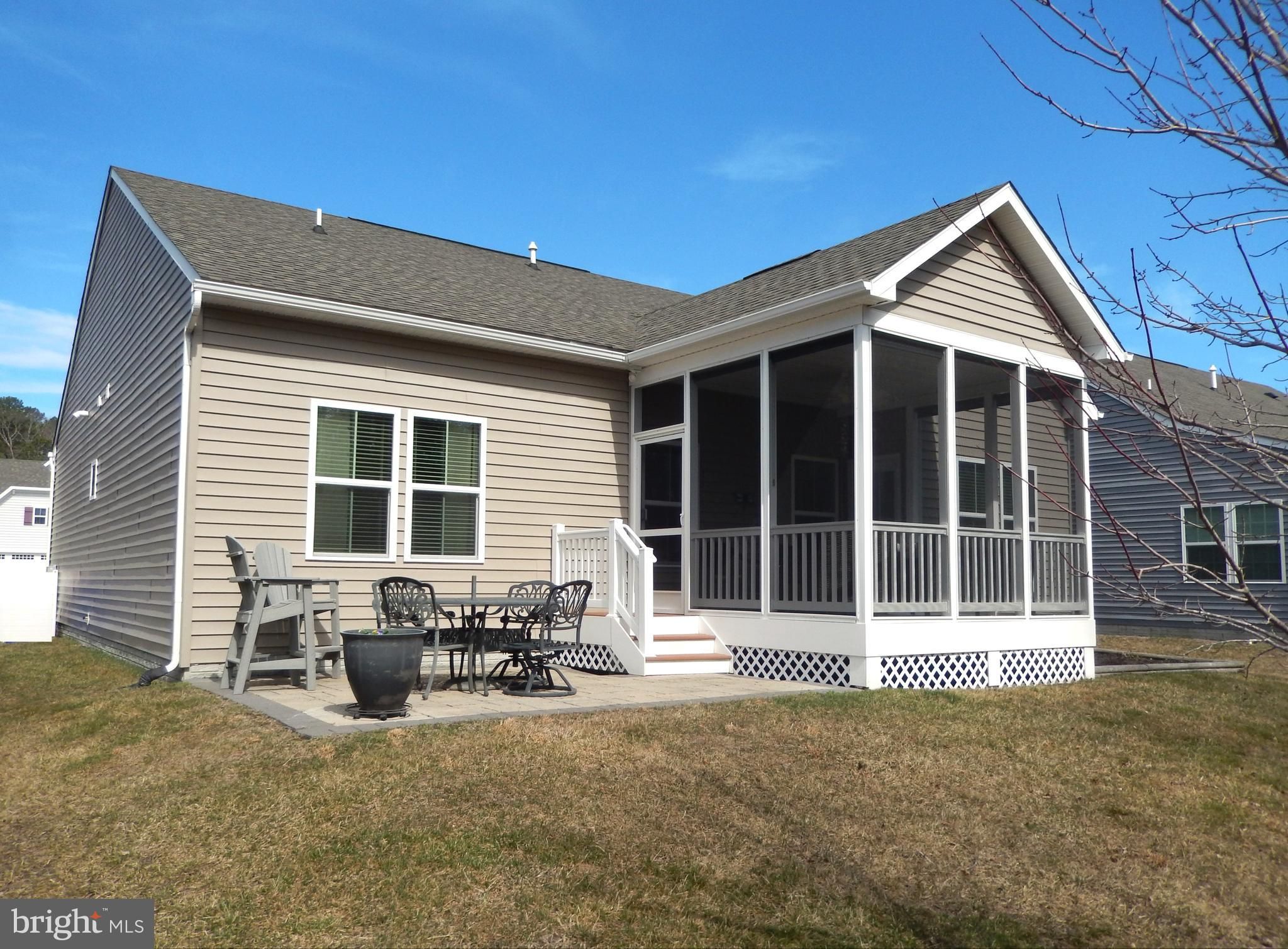 Make it a point to visit this Move‑In Ready Home in the Desirable Silver Woods Community! Welcome to this beautifully maintained Pisa Torre single‑family home, perfectly situated in the highly sought‑after neighborhood. This move‑in ready home offers a spacious and inviting layout designed for comfort, convenience, and coastal living—approx. 4 miles from Bethany Beach and the boardwalk, and a short drive to Fenwick Island, Ocean City, MD, and Rehoboth Beach. Step inside to a large family room and kitchen accented by vaulted ceilings and recessed lighting. The well‑appointed kitchen features an abundance of 42‑inch cabinetry, a center island, smudge-free slate appliances, and a bright separate dining area, making it ideal for gatherings and everyday meals. The en-suite bedroom provides a private retreat with a generous walk‑in closet and a well‑equipped bathroom showcasing double sinks, a ceramic‑tiled shower , and a convenient linen closet. Two additional bedrooms and a full hall bath with tub offer comfort for guests or family. Hunter Douglas blinds throughout the home! Unwind with your morning coffee or end the day relaxing in the 12' x 12' screened‑in porch offering UV solar shades and a walk out to patio overlooking a level, landscaped yard complete with a vegetable garden and irrigation system. A large laundry room with storage closet adds everyday convenience, while the two‑car garage provides excellent overhead shelving for additional storage. Residents of Silver Woods enjoy access to a clubhouse, gym, and outdoor pool, pickle ball and bocce courts ....making it easy to enjoy an active and social lifestyle. Local conveniences—including amazing restaurants, shopping, and boutiques—are just minutes away. Whether you enjoy golfing, kayaking, discovering new dining spots, or simply being near the beach, this location has it all. Perfect as a primary residence or a coastal getaway, this home offers the lifestyle you've been searching for—this is the one! Floor plan available in documents. No short term rentals allowed.