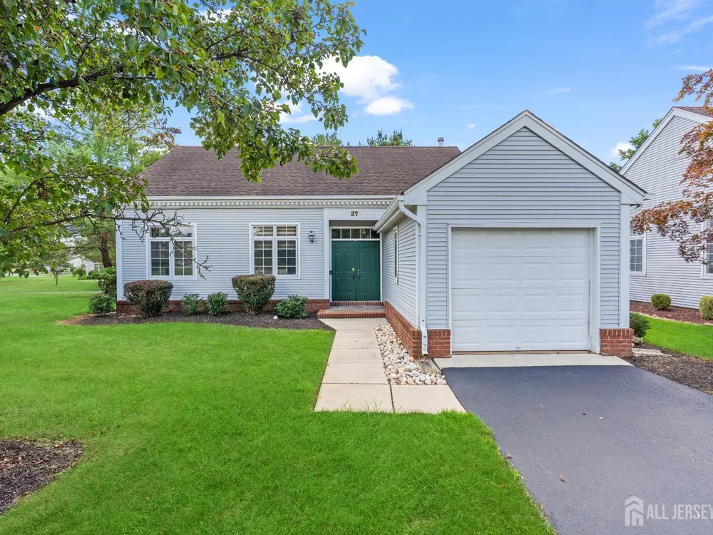 Welcome to Greenbriar at Whittingham! This well-cared-for, mint condition Duxbury model is ideally situated along the community's golf course, overlooking the 3rd hole. So many updates! Inside, the primary suite offers a full bath, an oversized walkin closet, and direct access to the patio through sliding glass doors. The eat-in kitchen has space for a cozy table and chairs beneath bright casement windows, stainless steel appliances and granite countertops. The expansive great room features a cathedral ceiling, a ceiling fan with light, another set of sliders to the patio, and a fireplace! Formal dining room. Second bedroom and full bath provide additional living flexibility for guests or family. The utility room houses the washer, dryer, furnace, and water heater, while the attached one-car garage with automatic opener and storage in the attic. Outside, the property offers a generous side yard with a pathway that leads straight to the golf course. Please note, golf course membership is optional and not included in the HOA fee. Recent improvements include: furnace (2017), central air (2017), water heater (2024), washing machine (2024), interior painted (2023), new kitchen with custom pantry (2023), new flooring (2023). All window treatments are included. With a prime location and thoughtful updates, this home presents a wonderful opportunity to enjoy all that Greenbriar at Whittingham has to offer!