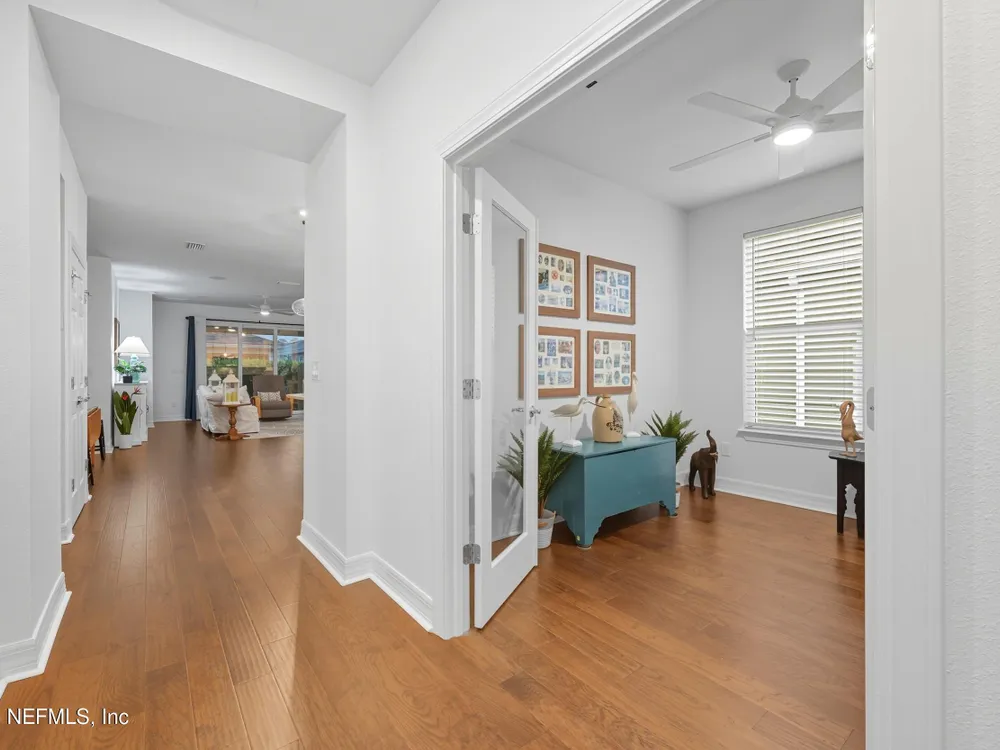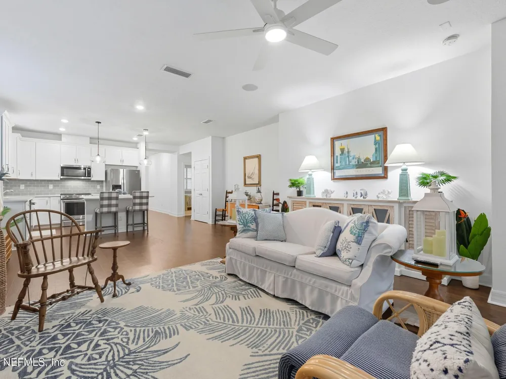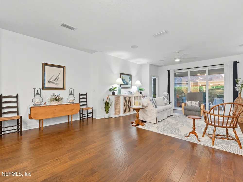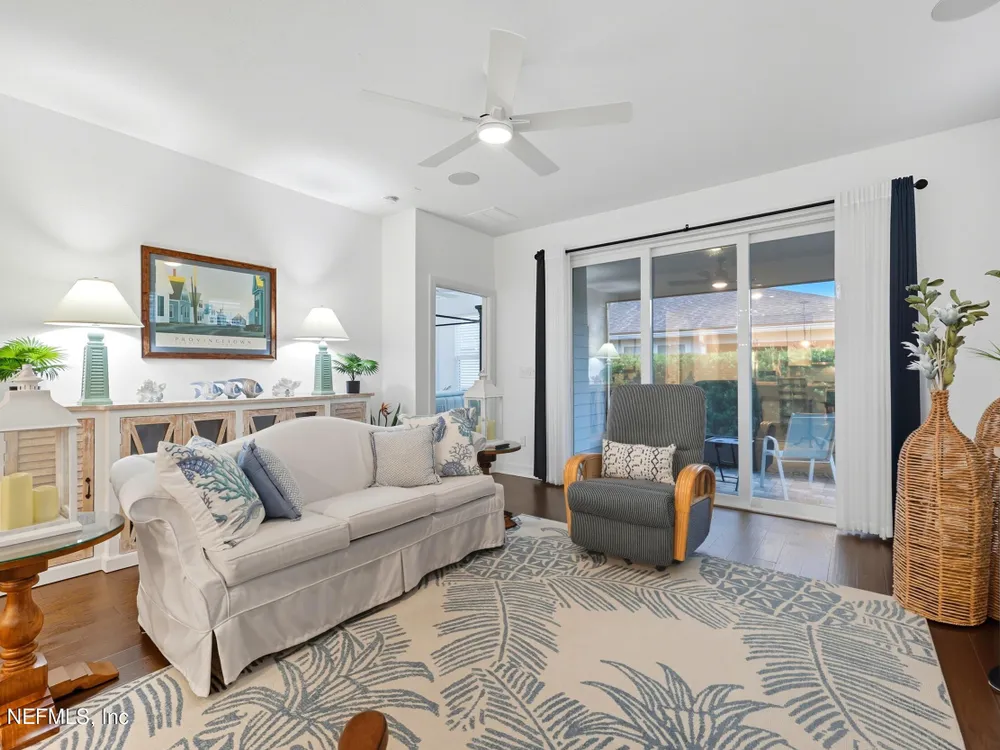 Del Webb Nocatee 55+ Gated Community THE CDD BOND HAS BEEN PAID!! Beautiful 2-bedroom, plus an office/flex room and 2-bath villa featuring an open floor plan with Engineered Hardwood floors throughout, carpet in bedrooms only. The updated kitchen boasts stainless steel appliances, a gas range, gorgeous coastal backsplash and custom blinds. Immaculately maintained by the original owner, this home includes a screened lanai for relaxing outdoors. New owner is only responsible for the low CDD -O&M (Operation and Maintenance) fee of $599/year for CDD. HOA covers all exterior maintenance—lawn care, termite protection, painting, and roof replacement—for worry-free living. HOA Fees for 2026 will not increase from 2025! Redeemable CAFE CREDIT of $80 per month is billed twice a year. Credits are used to pay when dining at the Cafe/Restaurant/Bar for lunch and dinner. Enjoy walking distance to Del Webb's state-of-the-art amenities, including a resort-style pool, fitness center, tennis, pickleball, bocce, wellness classes, and a full-service bar and restaurant with indoor and poolside dining. Best-priced villa in Del Webb Nocatee - Motivated Seller Bring us an Offer!