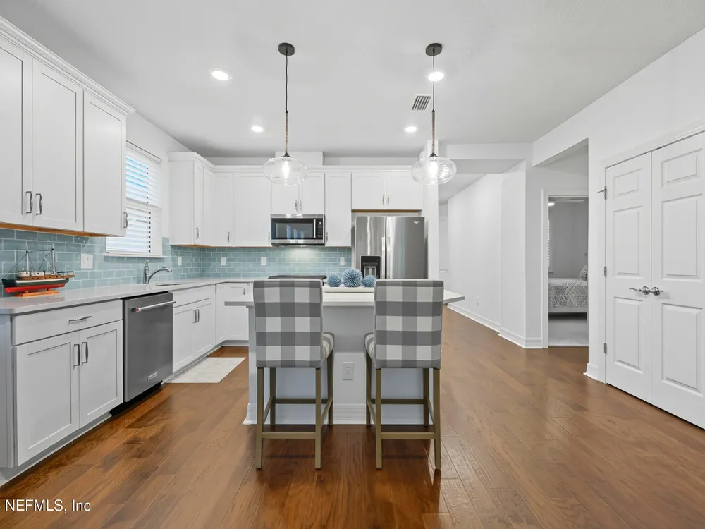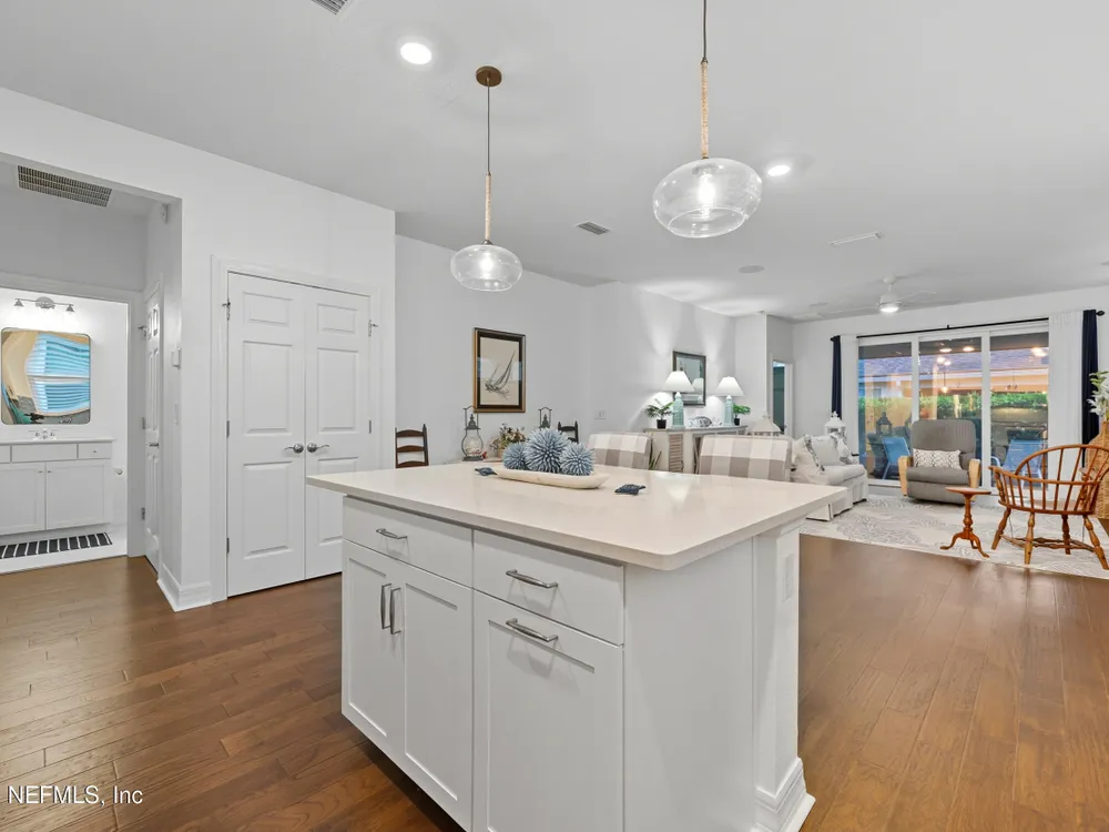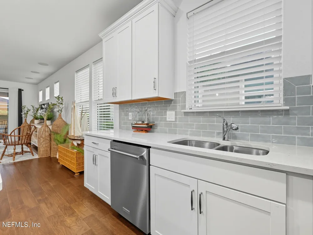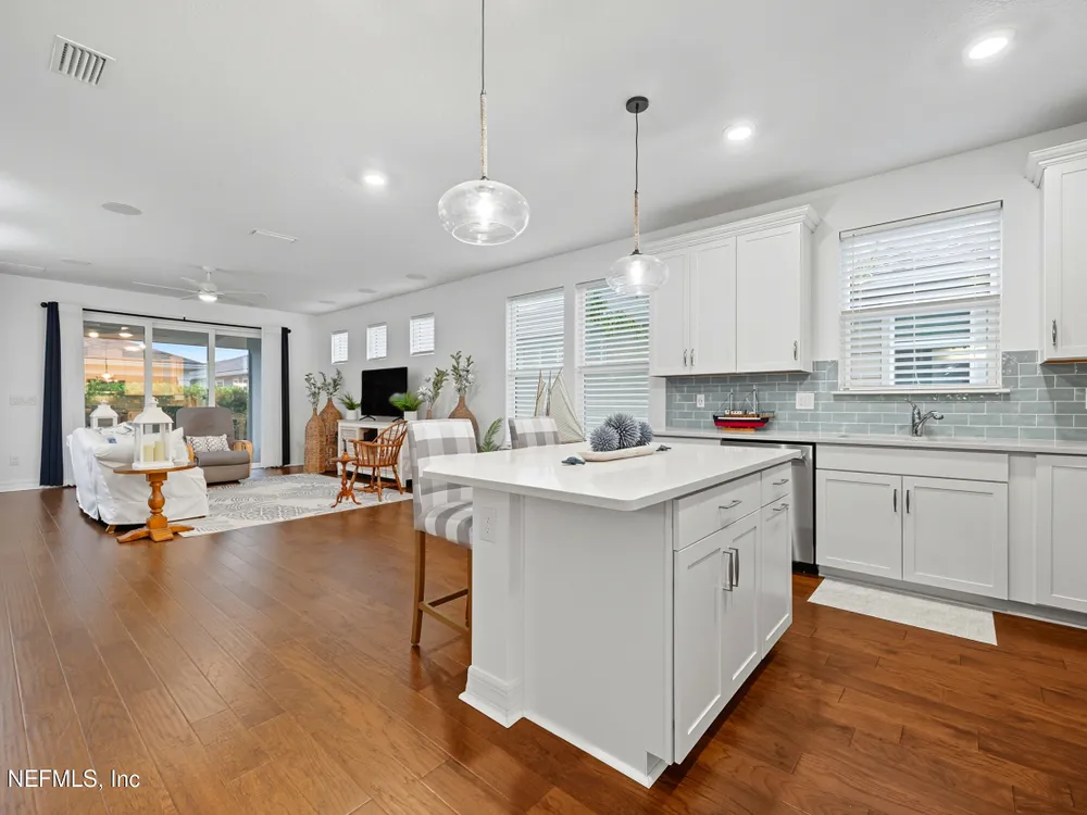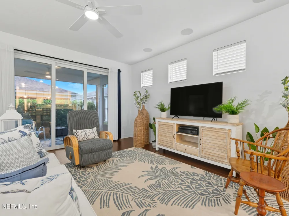 Del Webb Nocatee 55+ Gated Community THE CDD BOND HAS BEEN PAID!! Beautiful 2-bedroom, plus an office/flex room and 2-bath villa featuring an open floor plan with Engineered Hardwood floors throughout, carpet in bedrooms only. The updated kitchen boasts stainless steel appliances, a gas range, gorgeous coastal backsplash and custom blinds. Immaculately maintained by the original owner, this home includes a screened lanai for relaxing outdoors. New owner is only responsible for the low CDD -O&M (Operation and Maintenance) fee of $599/year for CDD. HOA covers all exterior maintenance—lawn care, termite protection, painting, and roof replacement—for worry-free living. HOA Fees for 2026 will not increase from 2025! Redeemable CAFE CREDIT of $80 per month is billed twice a year. Credits are used to pay when dining at the Cafe/Restaurant/Bar for lunch and dinner. Enjoy walking distance to Del Webb's state-of-the-art amenities, including a resort-style pool, fitness center, tennis, pickleball, bocce, wellness classes, and a full-service bar and restaurant with indoor and poolside dining. Best-priced villa in Del Webb Nocatee - Motivated Seller Bring us an Offer!