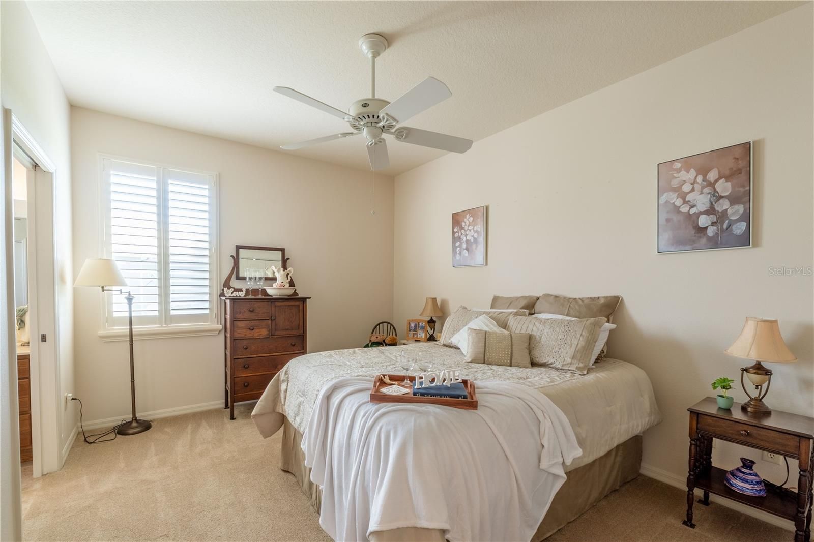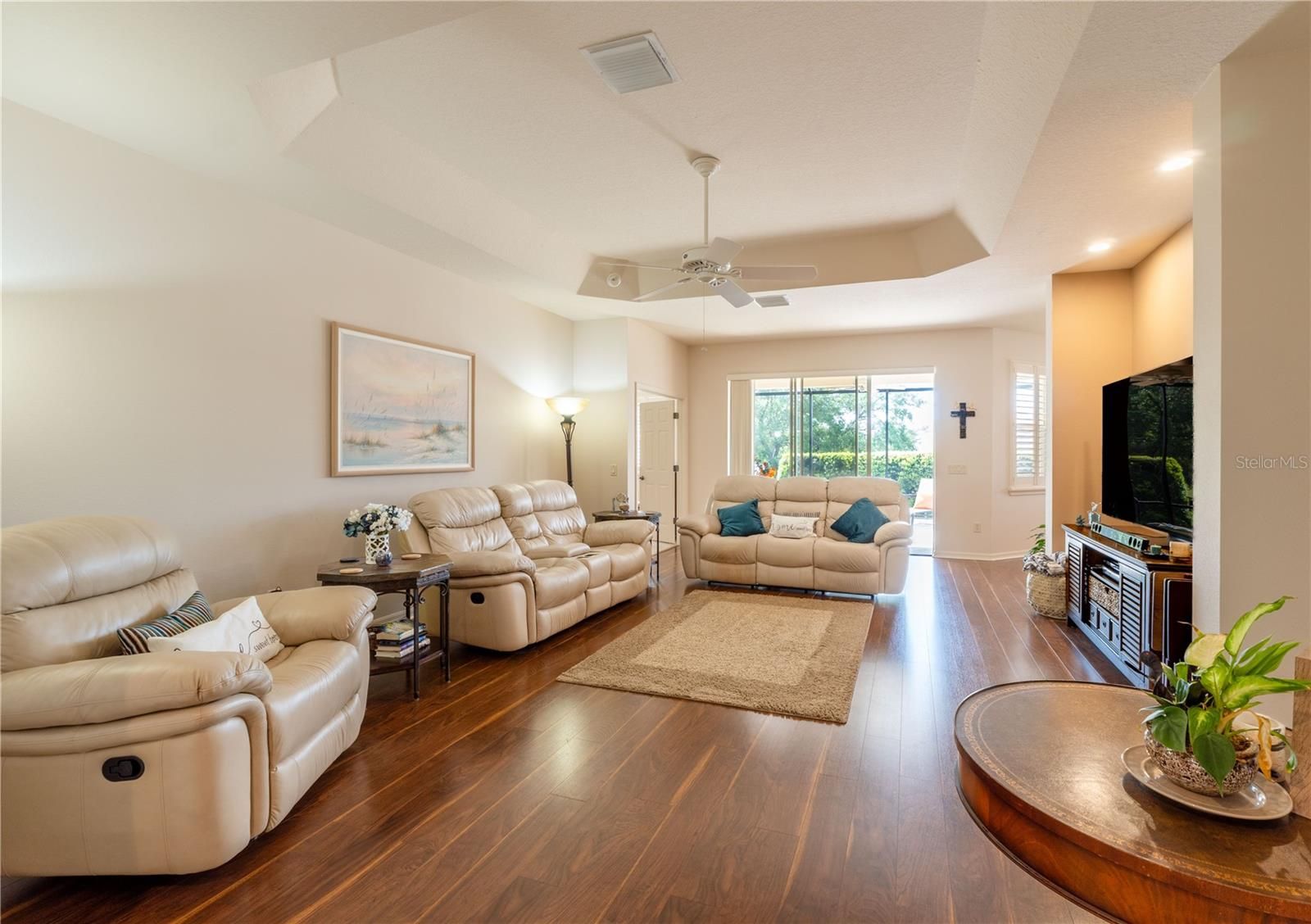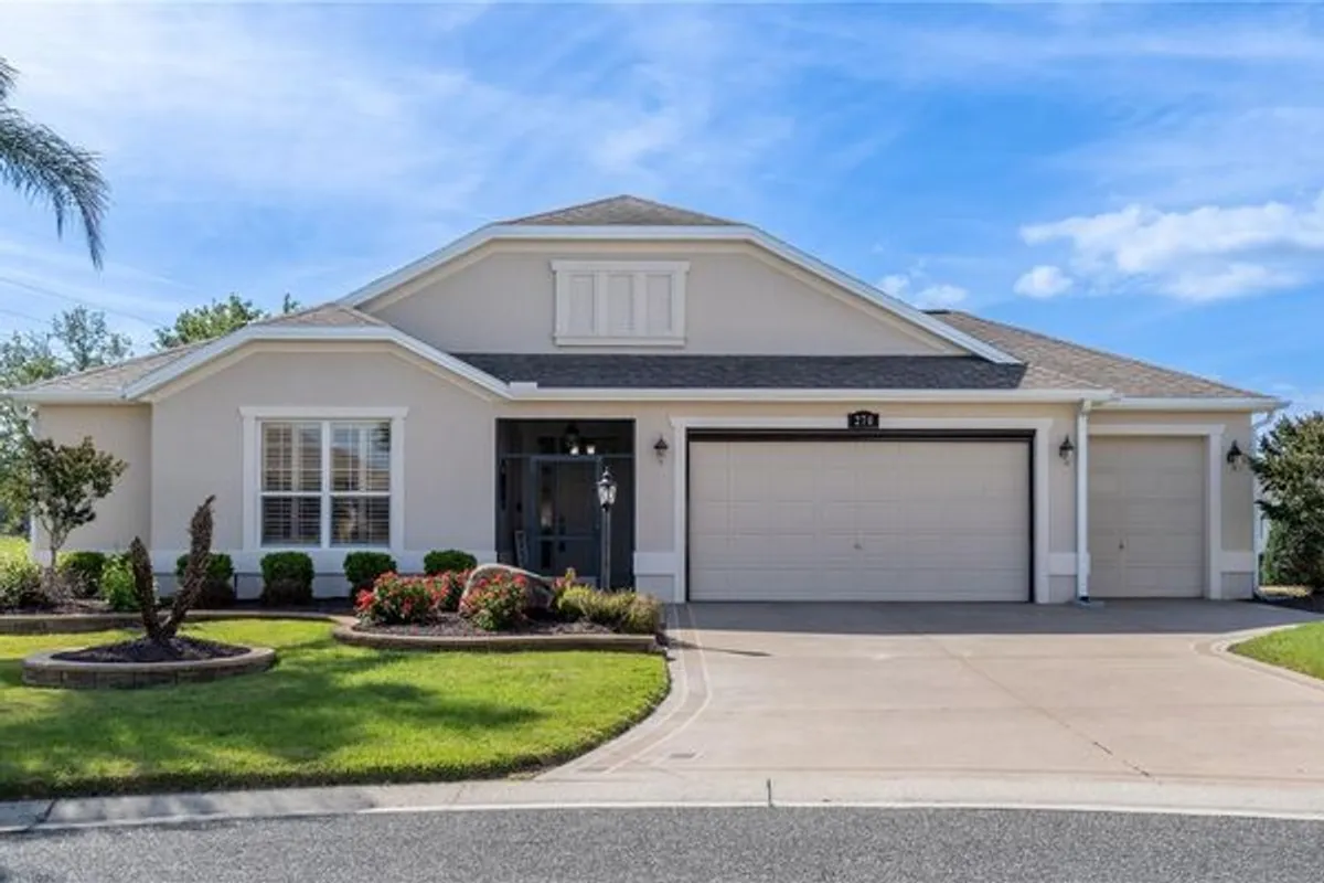 Welcome to 270 Matisse Ave, in a Cul-De-Sac, in the highly sought-after Village of Hadley in The Villages—a beautifully upgraded BRIDGEPORT Designer model offering the perfect blend of comfort, privacy, and location right between Lake Sumter Landing and Brownwood Paddock Square (“the 66’s”), with convenient access to the nearby Odell Recreation Center pool and amenities. Built with durable block and stucco construction, this home features a charming covered front entry and welcoming curb appeal enhanced by professional landscaping and a finished, painted driveway. Inside, you’ll find 9-foot ceilings throughout with elegant tray ceilings in both the spacious living room and primary suite, creating an open, airy feel. The thoughtfully designed split floor plan includes two guest bedrooms connected by a Jack & Jill bathroom with a beautifully remodeled shower, plus a convenient half bath for guests, making it ideal for entertaining or hosting family. One of the bedrooms have a Murphy Bed. The kitchen and living spaces flow seamlessly to a 10x20 screened-in lanai, where you can relax and unwind in your in-ground 4-person spa while enjoying peaceful farm views with no rear neighbors—a rare and highly desirable feature in The Villages. Additional upgrades include plantation shutters throughout, a 7-foot garage door with retractable screen, and a spacious garage with 9-foot ceilings, offering both functionality and comfort. This move-in-ready home combines location, upgrades, and lifestyle—making it a standout opportunity for buyers searching for a designer home in The Villages with privacy, spa, and premium finishes. ROOF 2012 - AC 2023 - HWH 2020