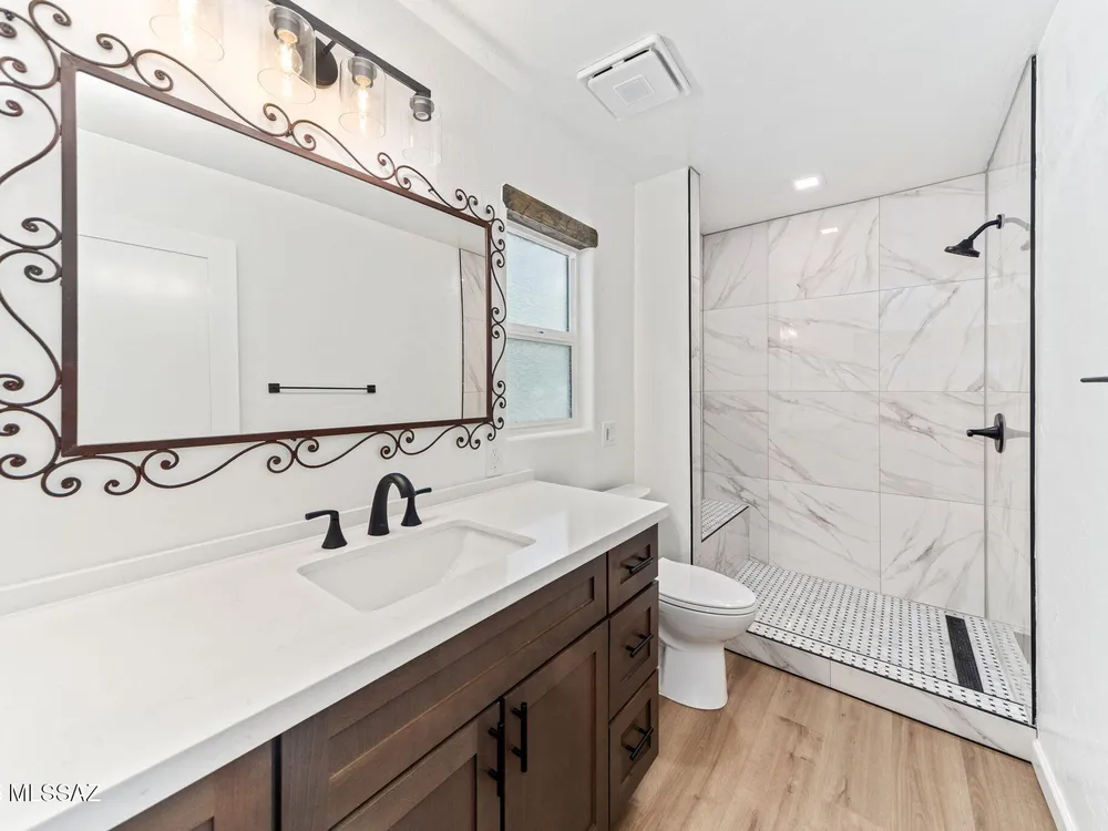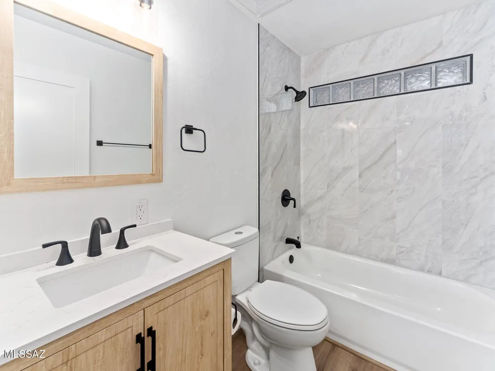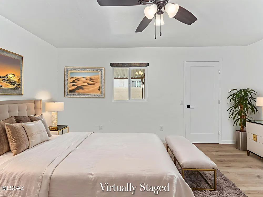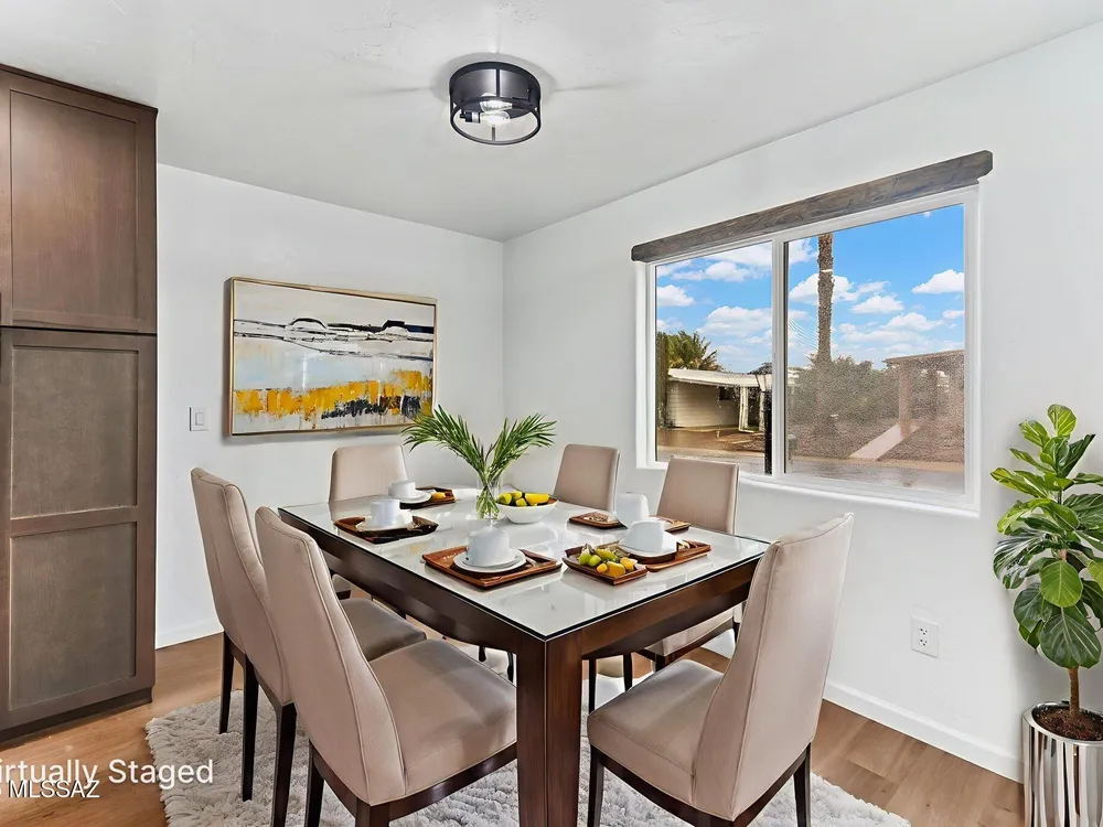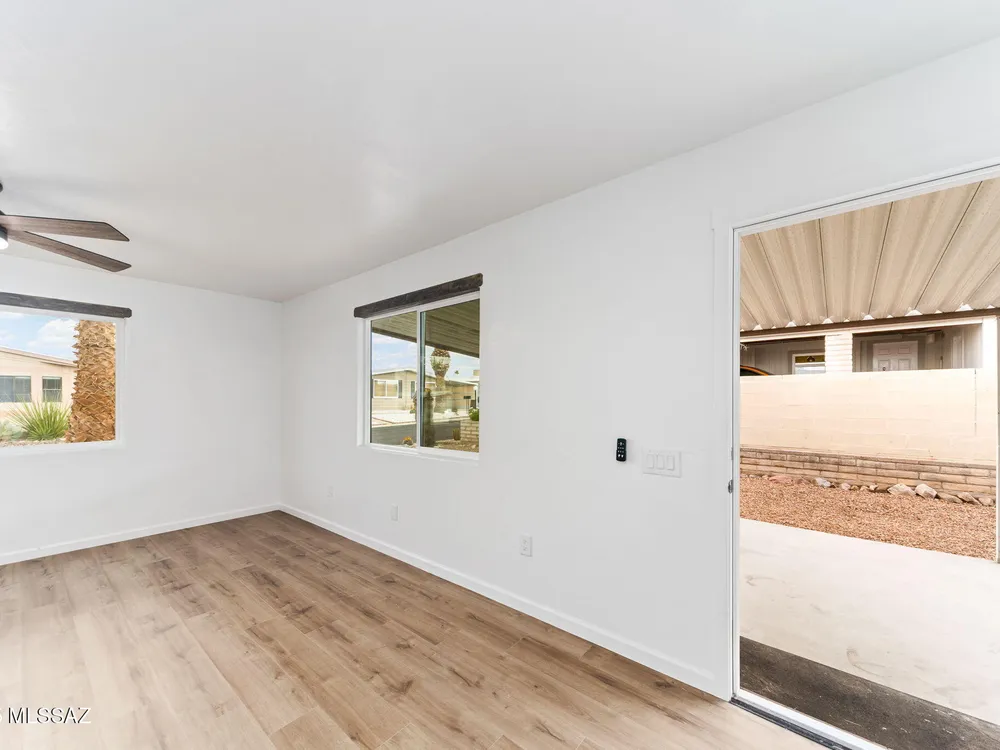 Located in Pueblo Estates, a 55+ community, this updated 2 bedroom, 2 bath home features wide doorways, new vinyl plank flooring throughout, tiled showers, and brand-new cabinets with quartz countertops. In the center of the home is an Arizona room with heating and cooling perfect for year round enjoyment. Additional upgrades include a new AC and heat unit, new windows and doors and new exterior siding. This property does not have Green Valley Recreation (GVR), but it is available if desired. Enjoy access to the community pool and more.