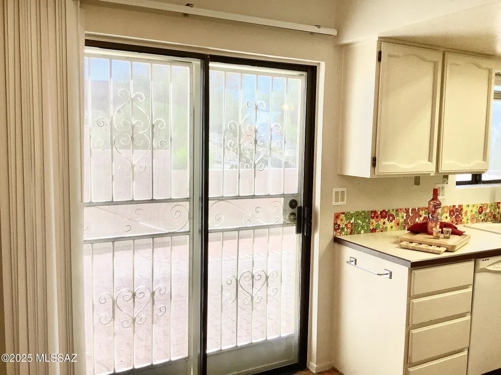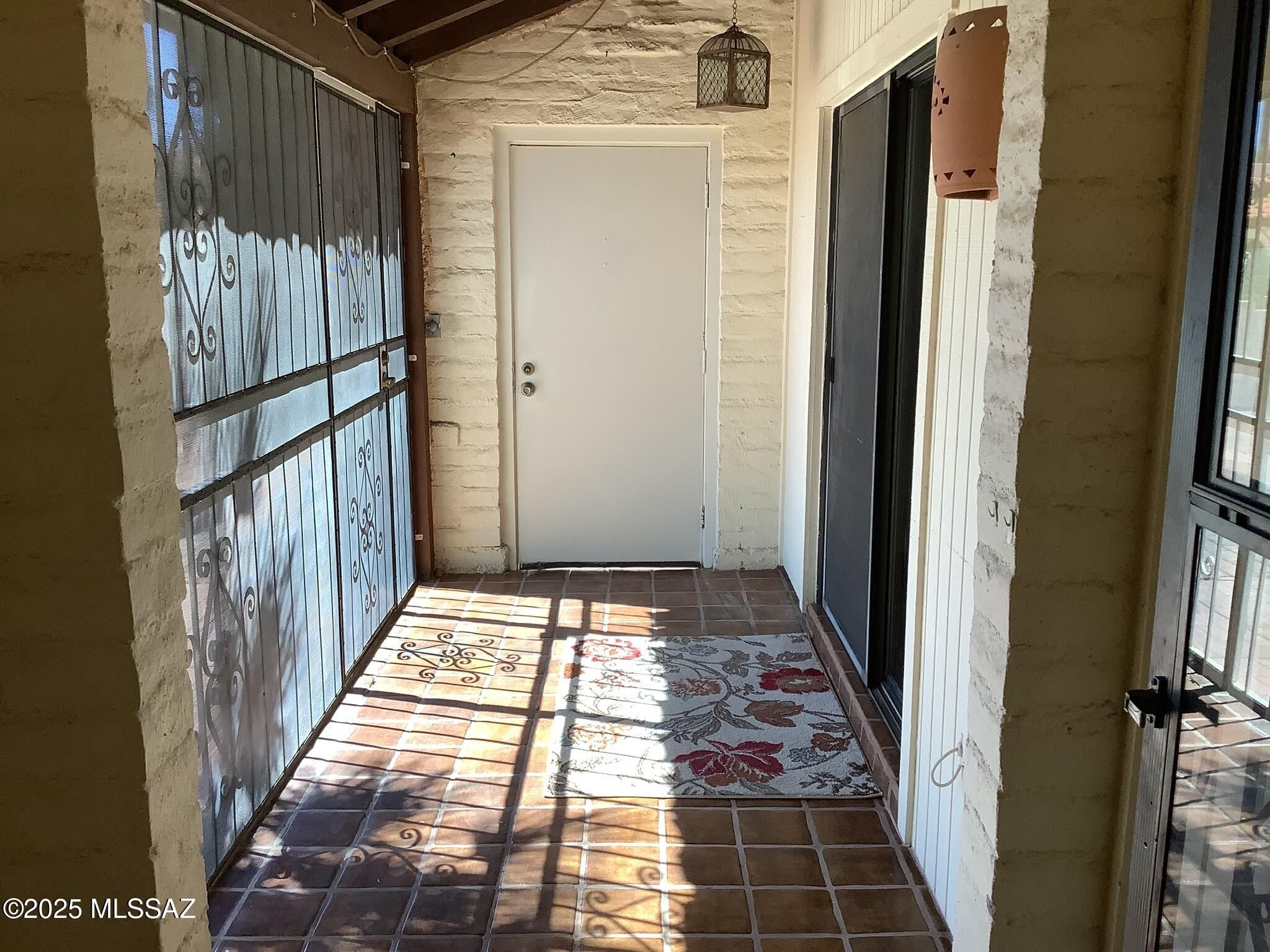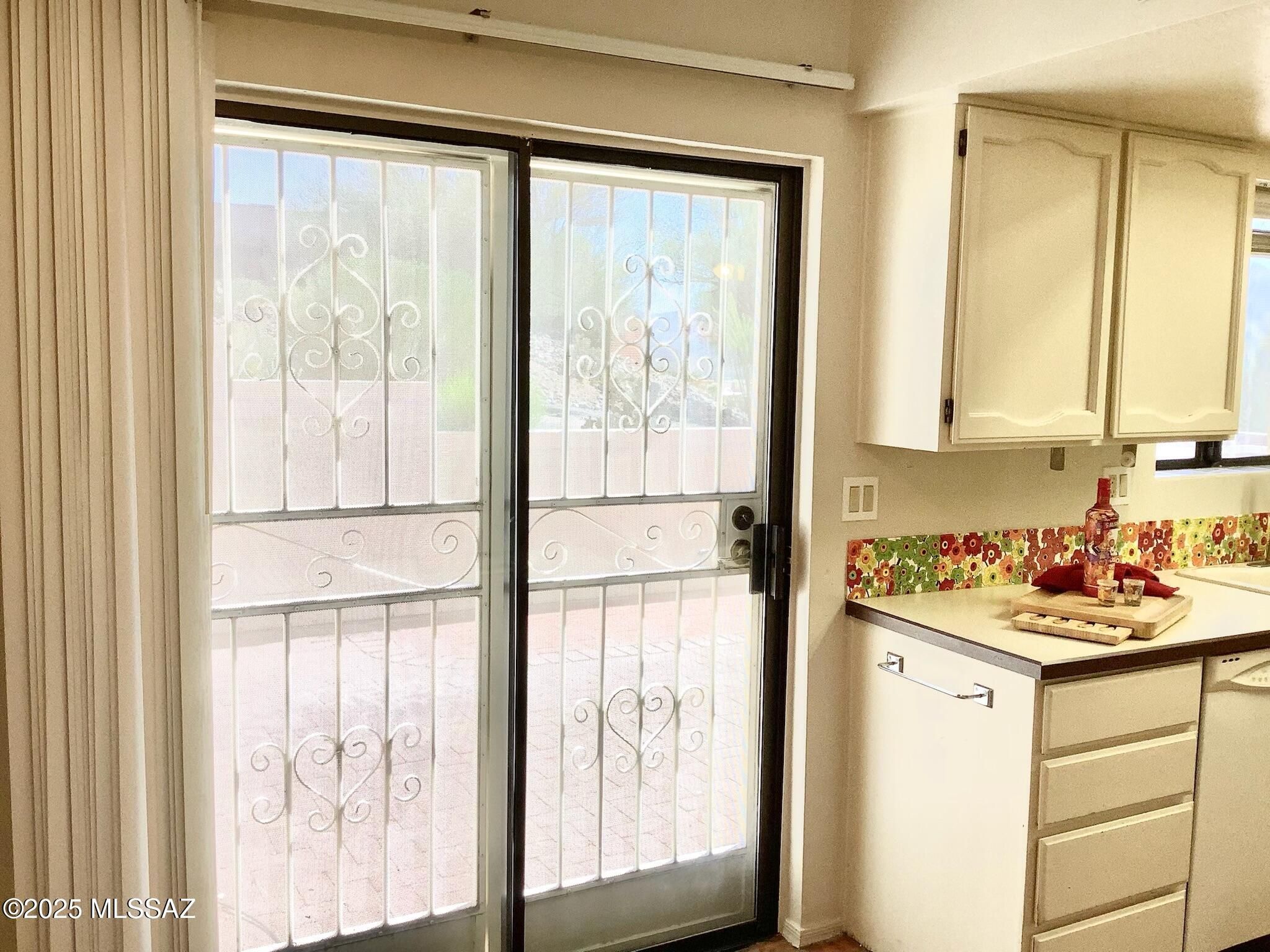 This corner lot, 2 Bedroom, 2 Bath Townhome, offers a warm and inviting living area with a Honeybee fireplace. Freshly painted inside with rod iron security windows and doors outside. The large master has a walk-in closet with a slider to the front screened-in patio. Both bathrooms feature sunlights which give beautiful light all day. Great kitchen with window out to your side yard and a roomy dining area. The large walled patio has stunning views of the Santa Rita Mountains and a garage that is all your own, which is a great addition for a townhome. Come and see this value packed Charmer close to Green Valley Recreation (GVR) Centers and Desert Hills Private Golf Course.
