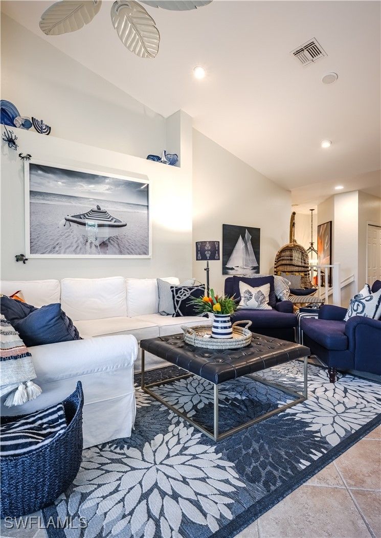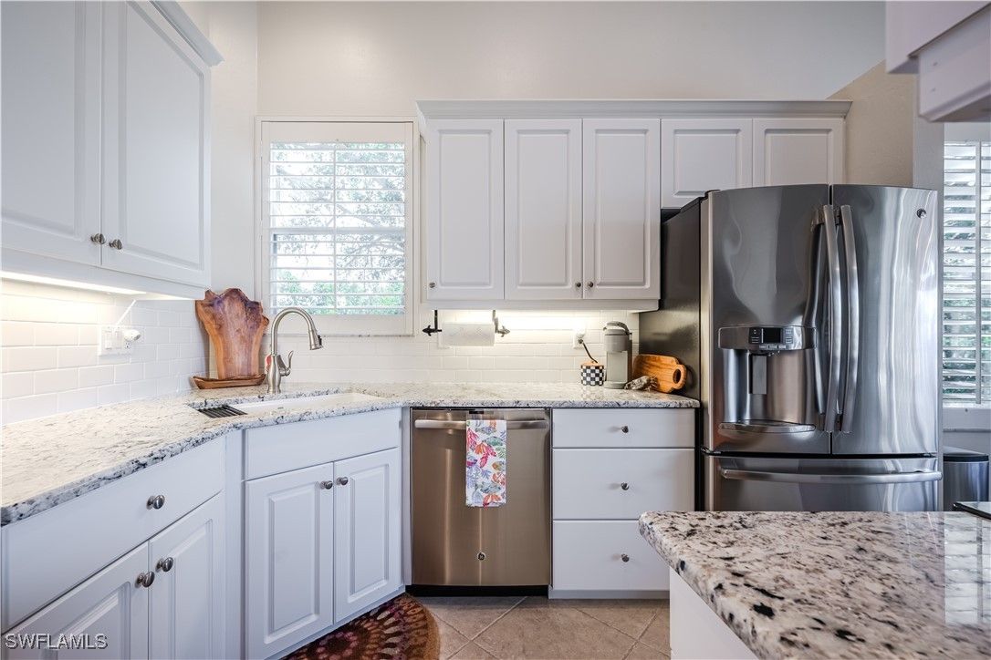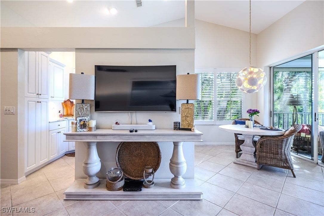 Enjoy breathtaking views over the serene lake and picturesque walking trails from this ideally located unit in Harbor Lakes. Positioned conveniently near the pool and beach trolley pick-up, the home is ingeniously designed to ensure privacy and comfort. Just a short stroll away, you'll find the Marina and Backwater Jack’s restaurant, perfect for dining out. This home features numerous upgrades, including new tops with a stylish tiled kitchen backsplash paired with stainless steel appliances. Updated bathrooms and painted in calming neutral tones throughout, it sets the perfect backdrop to complement the furnishings. With its dream location and move-in-ready condition, this unit requires no additional updates. A spacious garage provides ample storage for bikes, golf clubs, and beach gear, ensuring convenience for an active lifestyle. The large lanai is perfect for outdoor dining and lounging, equipped with electric shutters for added comfort and security. As a resident of the well-maintained Harbor Lakes community in Bonita Bay, you'll have access to a private beach, five golf courses, tennis and pickleball courts, miles of walking trails, parks, and a lifestyle fitness center and spa. This home embodies the perfect blend of location, amenities, and modern living.