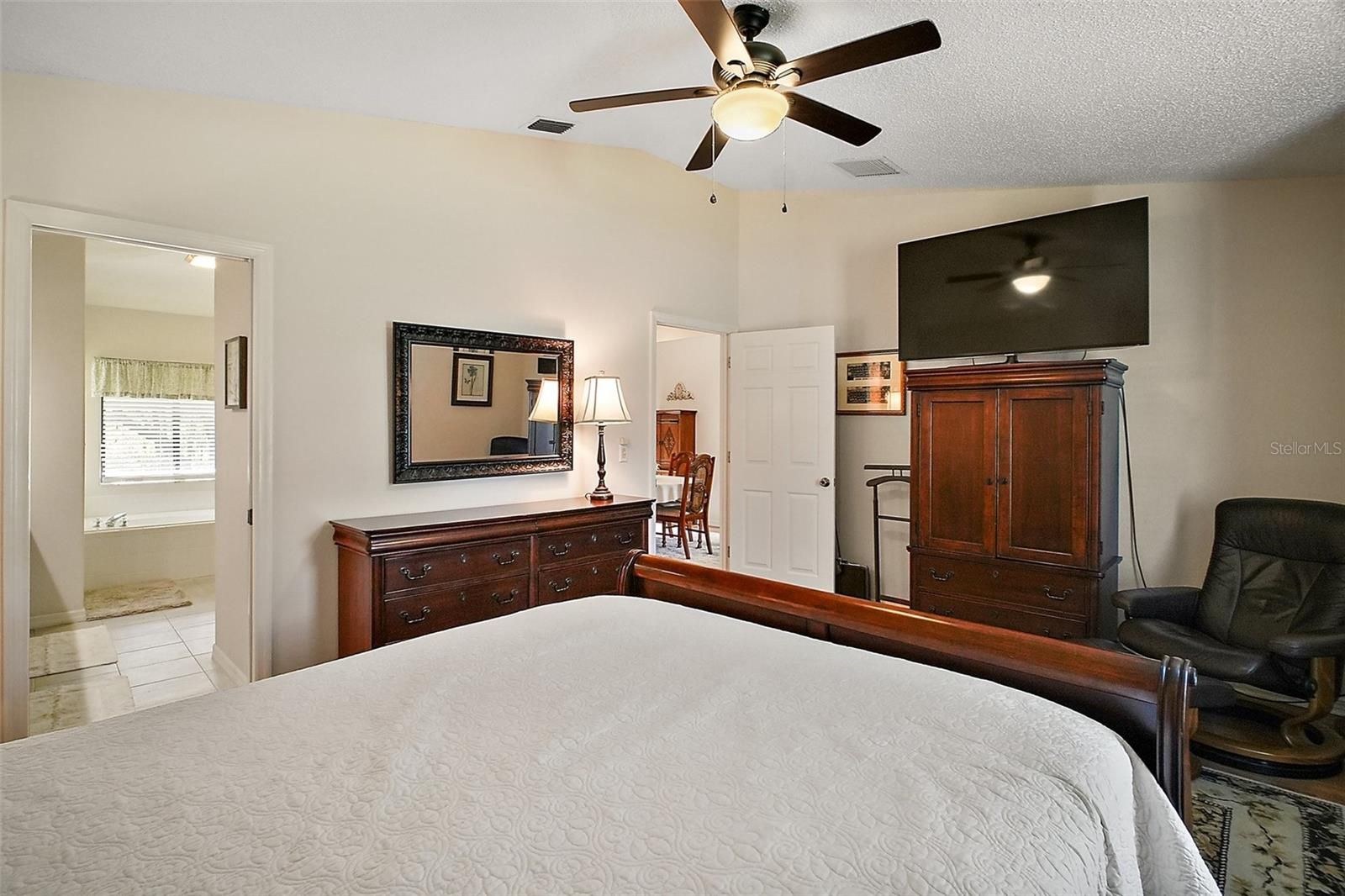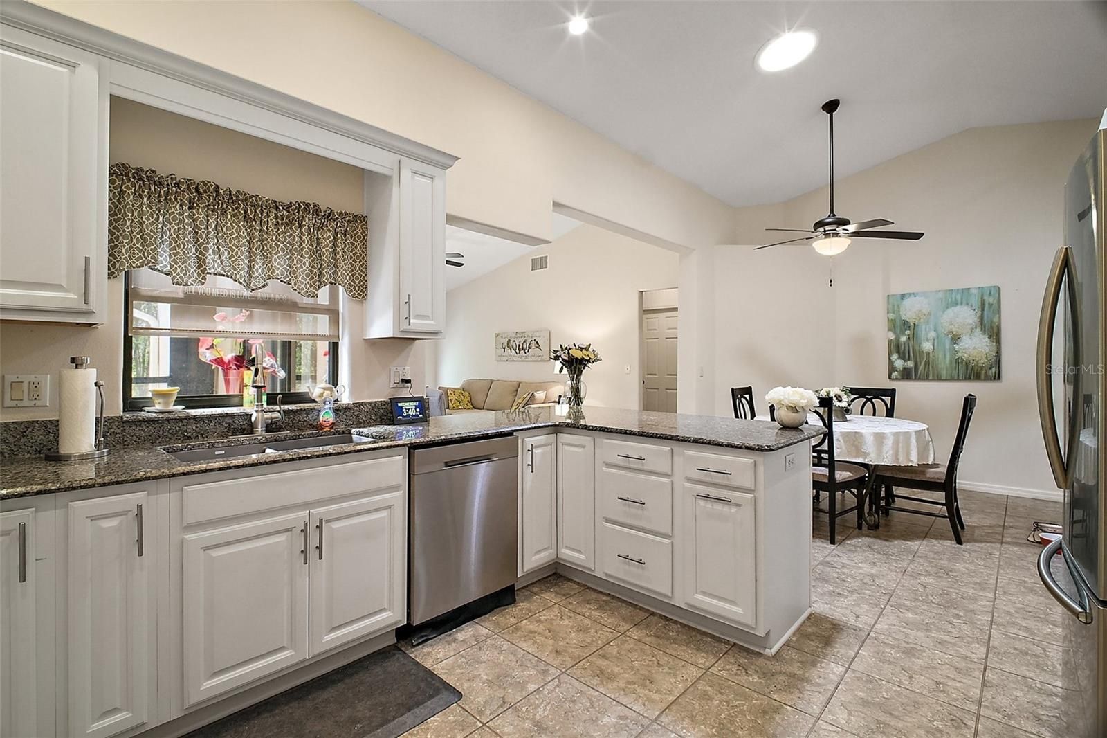 - Ceiling Fan(s), Kitchen/Family Room Combo, Open Floorplan, Solid Surface Counters, Split Bedrooms, Stone Counters, Thermostat, Vaulted Ceiling(s)