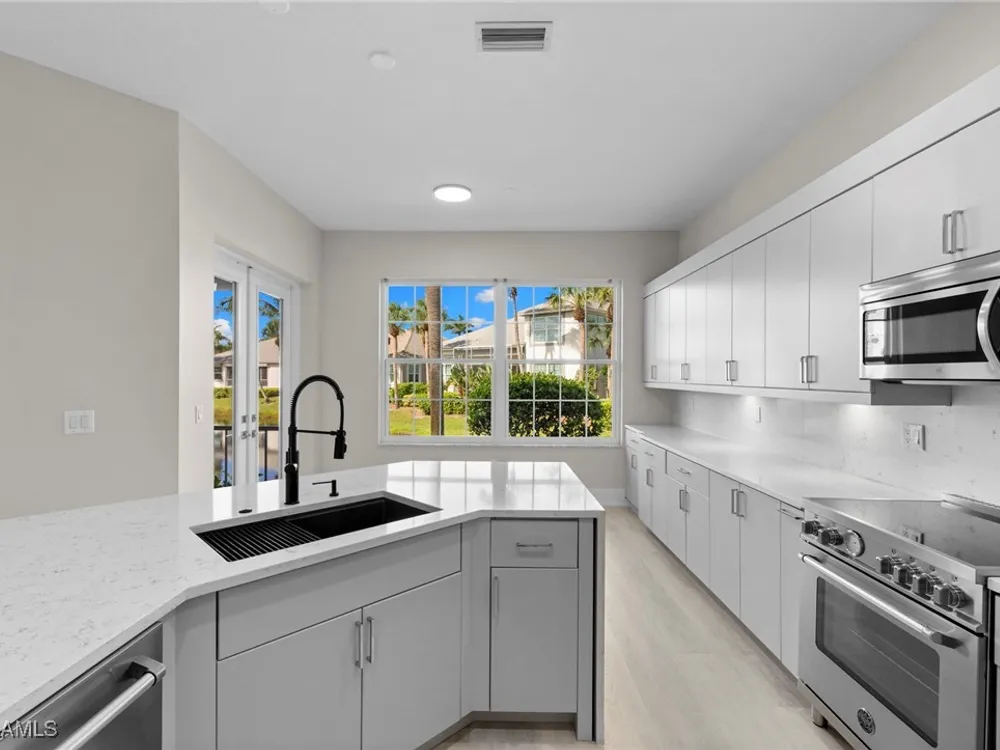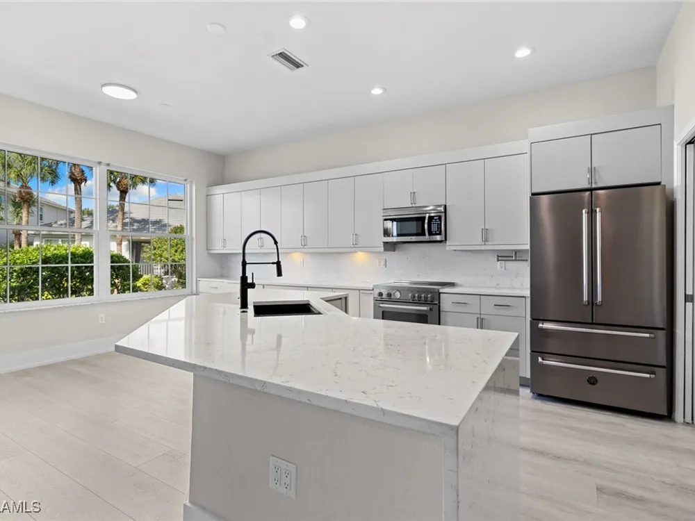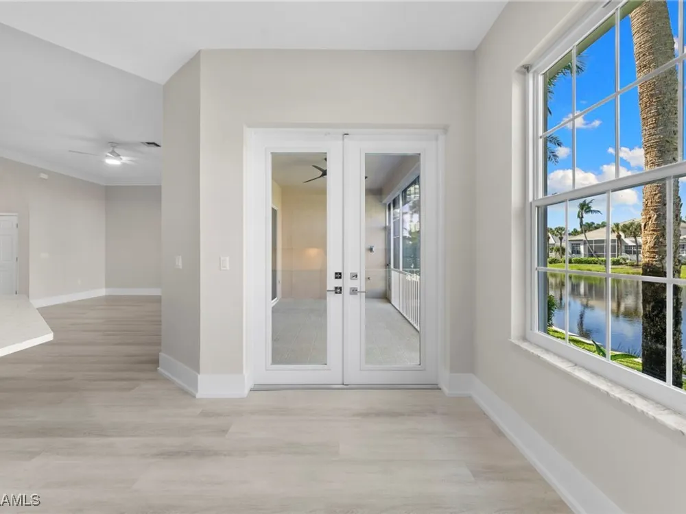 Welcome to this lovely home nestled in Bay Harbor with in the gates of Bonita Bay! The single family home offers updated interiors, sun filled rooms and a premium location! This 2 bedroom +den, 2 bath residence has modern finishes throughout. The spacious kitchen offers updated cabinetry, sleek counter tops, and stainless steel appliances and a cozy eat in breakfast area. Enjoy effortless indoor/outdoor living with sliding glass and french door access to a private screened in lanai that over looks a small lake and lush tropical landscape. Along with the fresh interior updates the mechanical elements are current, including a new air conditioning system, hot water heater, plumbing and a five year old roof. Residents of Bay Harbor community have access to a beautiful pool and community center, just steps away from the front door! Bonita Bay residents enjoy world class amenities including private beach access, optional golf course membership that includes five golf courses, a marina, miles of walking and biking paths as well as membership opportunities at a state of the art fitness and tennis center (pickle ball too!). Conveniently located near fine dining, shopping and the Gulf of America beaches. This home offers the best of South West Florida living.