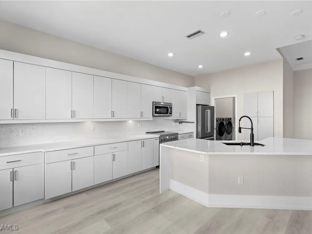 - Dryer, Dishwasher, Electric Cooktop, Disposal, Ice Maker, Microwave, Refrigerator, Washer