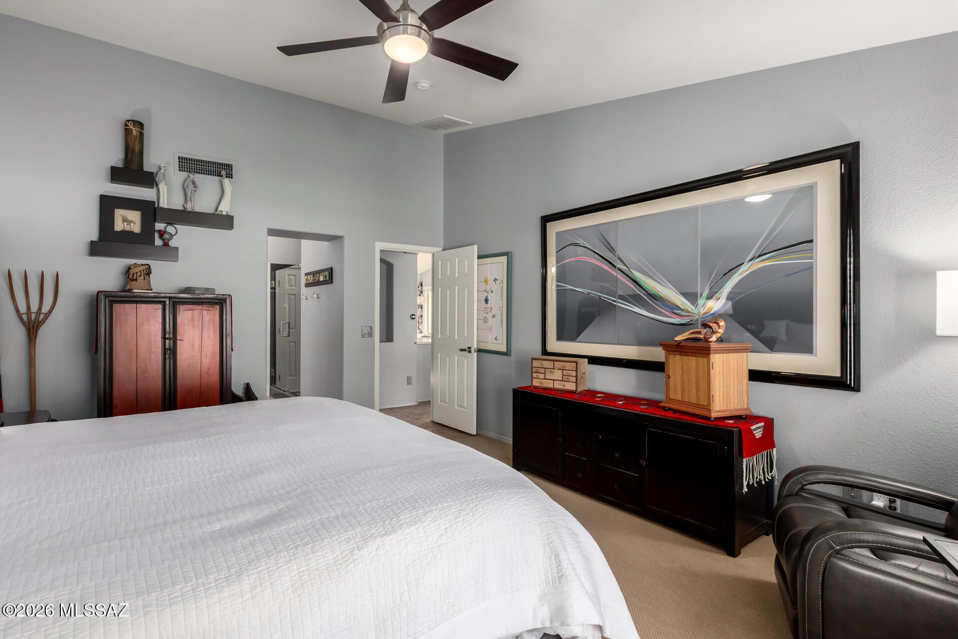 - Ceiling Fan(s), High Ceilings, Split Bedrooms, Walk-In Closet(s)