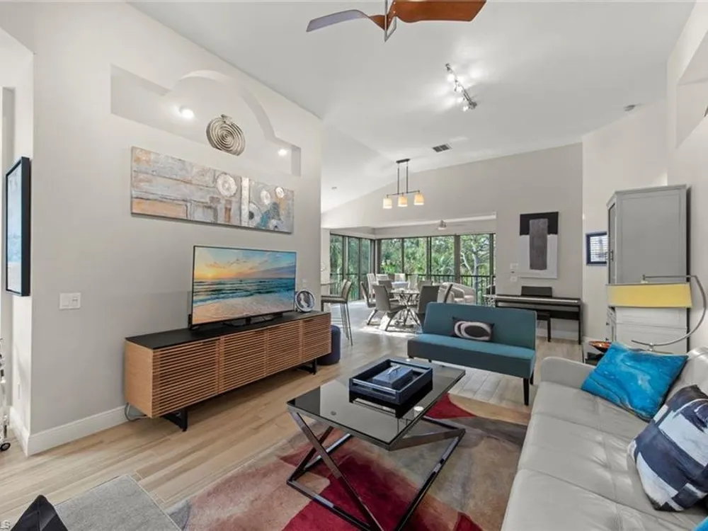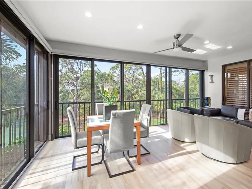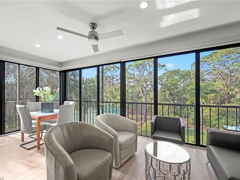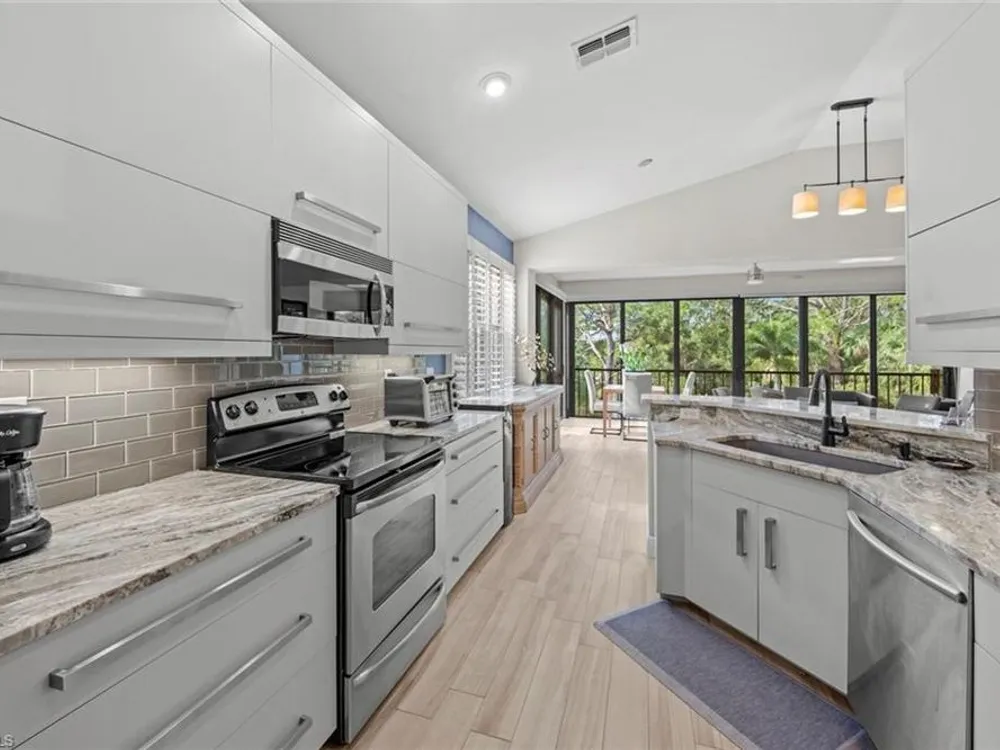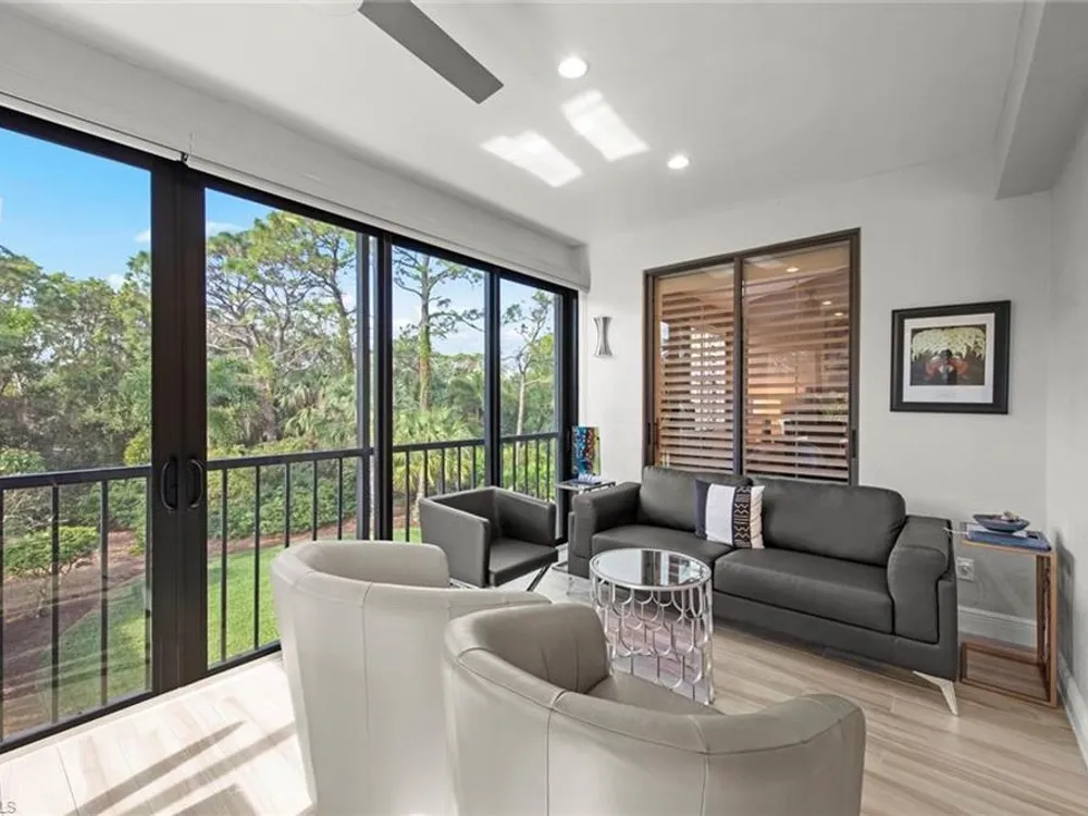 AMAZING VALUE!! This SIMPLY STUNNING second floor home has been thoughtfully redesigned and UPDATED TO THE HIGHEST QUALITY from the modern stainless steel and wire railings to the European kitchen cabinetry, wood plank look porcelain floors, plantation shutters, baths updated with granite counters and vessel sinks, designer lighting and fans and more. The beautiful MODERN EUROPEAN INSPIRED KITCHEN opens to a lovely dining area and living area which seamlessly flow to the large lanai where you will enjoy multiple seating and dining options, all of which is protected with HURRICANE IMPACT SLIDERS allowing for four season enjoyment of the wide landscaped views and spectacular Southwest Florida sunsets. The large master bedroom suite is complete with a walk in closet and luxurious bath. Two guest bedrooms, one with a BONUS connected room perfect for grandchildren sleeping area or a guest den, and a guest bath provide plenty of private space for overnight guests. An additional space currently used as a den can easily be transformed into a formal dining area or game room. Well located JUST STEPS FROM THE COMMUNITY POOL, SPA AND TENNIS COURT in the charming and conveniently located neighborhood of Oakwood, this home is just a short walk or bike ride to club amenities, community activities at Riverwalk Park or the popular Promenade shopping and dining plaza. This building has been repainted and had a new roof in the past few years. Bonita Bay amenities include 3 parks, a private beach park with in season shuttle service, 12-mile network of walking trails, and a resident owned marina and restaurant, resident pickle ball and bocce ball. The Bonita Bay Club is member owned and offers 5 golf courses, 18 tennis courts, restaurants, spa and salon, state-of-the-art fitness center, club pickle ball and croquet and resort style swimming pool with Breezeway cafe and bar and numerous social activities. Truly a one of a kind offering, this property is being sold TURNKEY FURNISHED so you can move right in and start enjoying the renowned Bonita Bay lifestyle!
