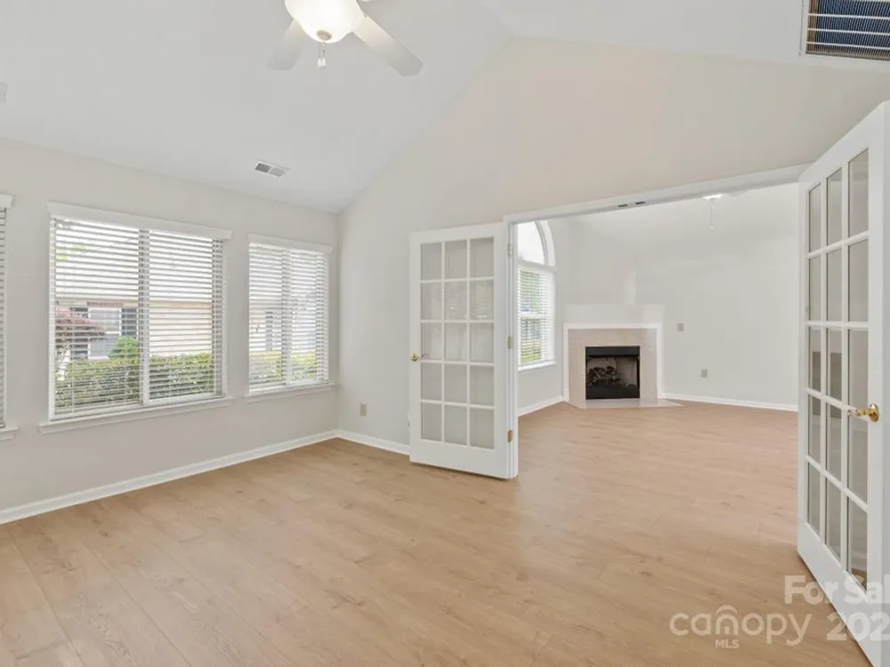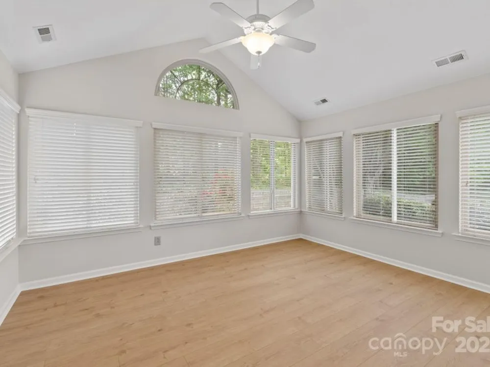 Beautiful move in ready patio home featuring 2 bedrooms, 2 baths, a dedicated office plus a lovely sunroom! This split bedroom ranch floor plan offers easy single level living. Light and bright interior with vaulted ceilings, all new flooring and freshly painted interior. Granite counter tops in kitchen offer plenty of workspace. Front porch patio can be extended with pavers. Great Matthews location close to shopping, restaurants, gyms and hospitals make this highly desirable home a must see. Community offers clubhouse and pool. Exterior maintenance and landscaping included in the HOA. 2021 Roof! A/C 2021! Move in ready!