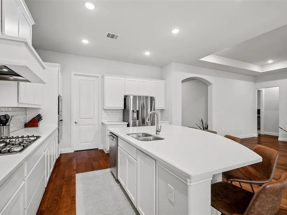 Stunning light & bright one story home in Waterford Point in The Tribute Lakeside Golf & Resort Community. Large open living area with 3 bedrooms all en suite, 3 bathrooms and a half bath. Tons of upgrades and high end finishes, this home is perfect and move in ready! Huge covered patio with nice size yard, already has gas line too! Ready for new owners to enjoy life in The Tribute. Residents of this section of the neighborhood, Waterford Point enjoy their own private clubhouse with social events, pool overlooking Lake Lewisville along with gym. Enjoy 13+ miles of nature trails along Lake Lewisville! Ideally located by Prestwick Stem Academy Elementary School & Strike Middle School w athletic facilities: football field, track, tennis courts, etc. Amenities include multiple resort style community pools, children’s splash park, playgrounds, dog parks, fishing throughout the ponds, neighborhood events & Two Award-Winning Golf Courses w bar & restaurants. Marina started construction in the neighborhood w beach volleyball & waterfront area for events!