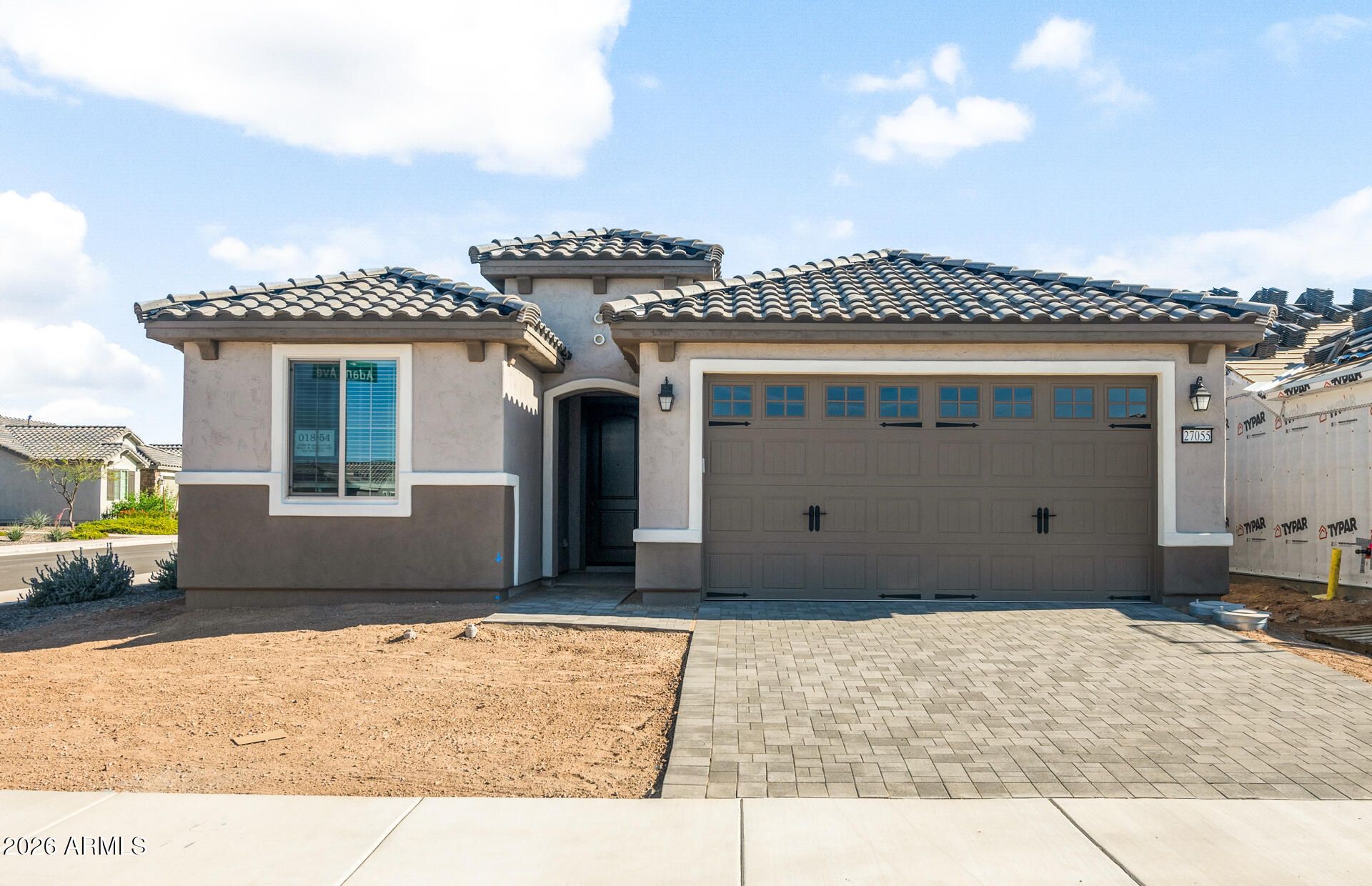 Up to 3% of base price or total purchase price, whichever is less, is available through preferred lender to be used toward closing costs, pre-paids, rate buy downs, &/or price adjustments. Elegant finishes and thoughtful upgrades throughout. This home features driveway pavers and a 4' garage extension, along with premium border pricing backing to a serene common area. Inside, enjoy upgraded 12'' x 24'' tile flooring, natural‑stain maple cabinetry, quartz countertops, and a suite of KitchenAid stainless steel appliances. An enhanced electrical and low‑voltage package adds modern convenience, while the included refrigerator, washer and dryer, and 2'' faux wood blinds make this home truly move‑in ready. Anticipated completion: March 2026.