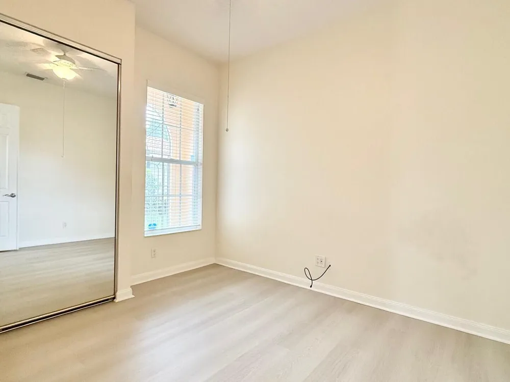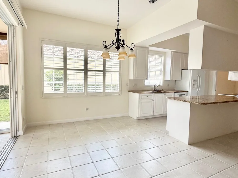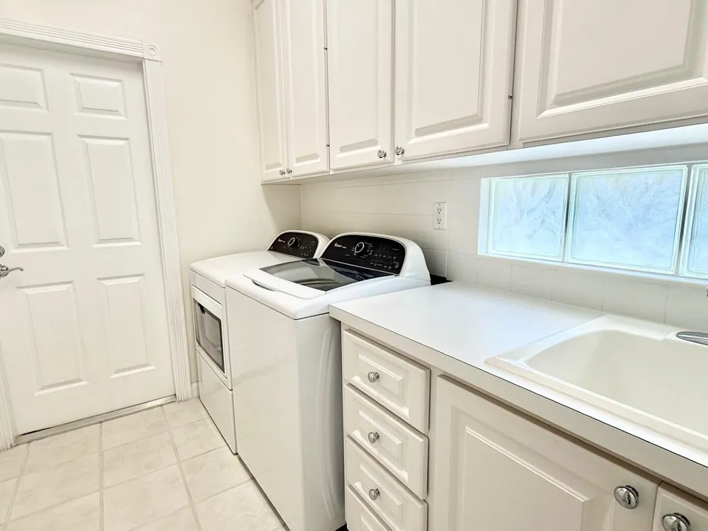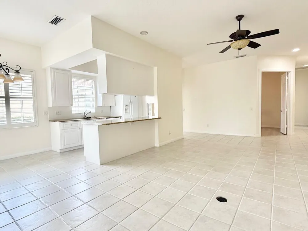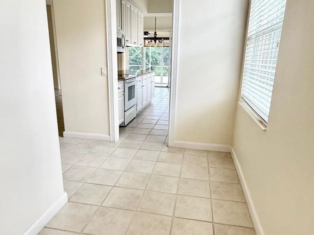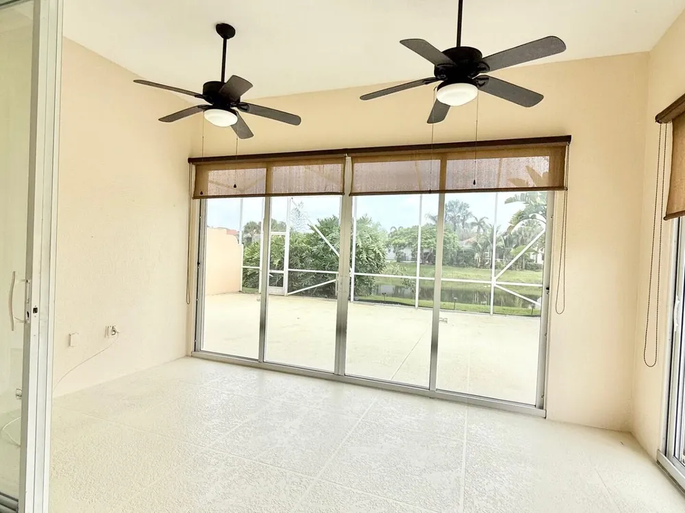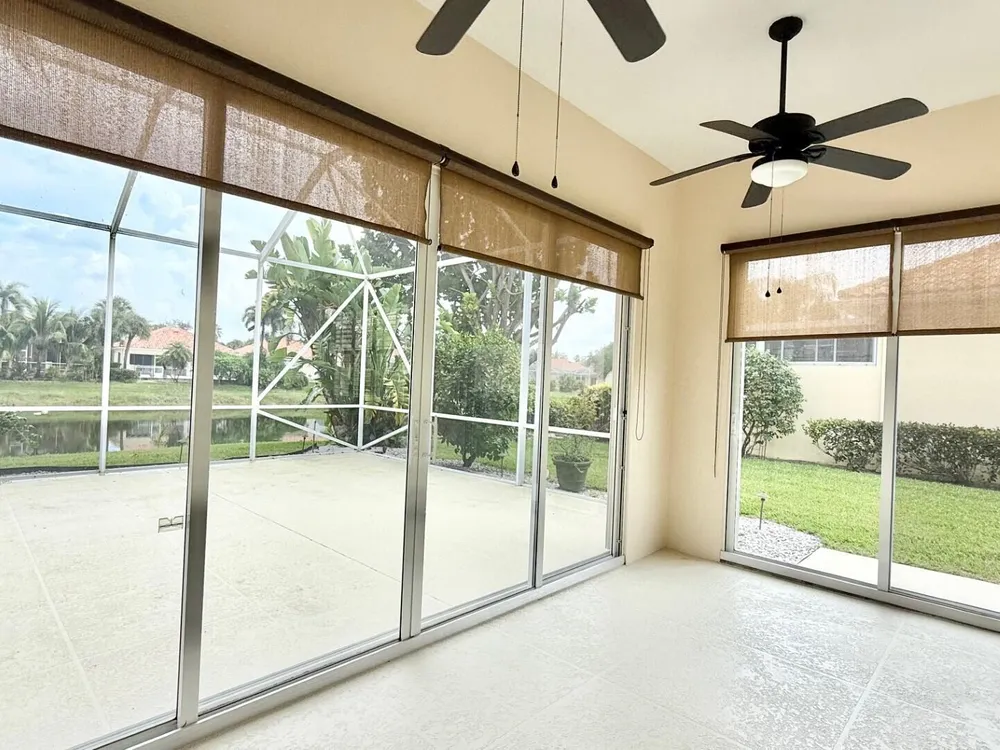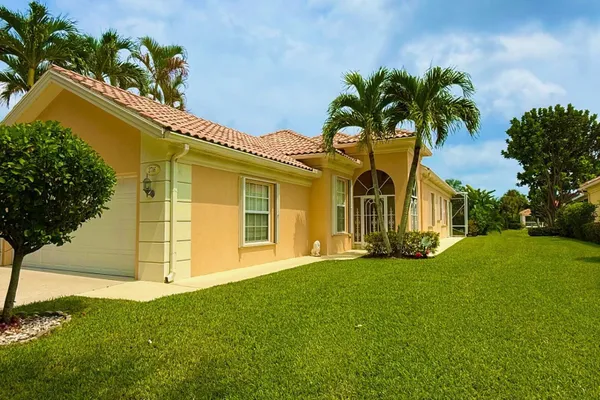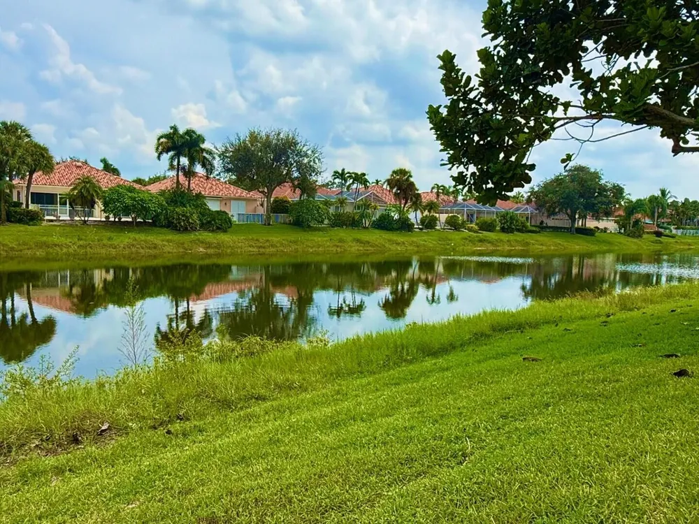 Meticulously maintained 3-bedroom, 2-bath single-family home featuring an open floor plan with 10 ft ceilings and abundant natural light. The spacious glass-enclosed lanai and large screened patio overlook a serene lake, perfect for relaxing or entertaining. Main living areas are tiled, with brand-new luxury vinyl flooring in all bedrooms. The kitchen offers granite countertops and ample storage. Additional highlights include an extra-wide side lot, laundry room with utility tub, accordion storm shutters, central vacuum, and alarm system. Major updates include a new AC (2020) and hot water heater (2021). A move-in ready home with both comfort and peace of mind.