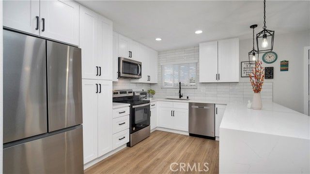 Welcome to 27061 Sun City Blvd a beautifully reimagined retreat designed for comfort, style, and effortless living in the heart of Sun City’s premier 55+ community. Step into a space where every detail has been thoughtfully curated, offering over $50,000 in high-end upgrades and a serene atmosphere. As you enter, the home immediately welcomes you with its bright, open layout and warm modern finishes. The brand-new waterproof oak-tone laminate flooring flows throughout, adding both elegance and practicality. The fully redesigned kitchen stands as the centerpiece of the home, enhanced with expanded soft-closing white shaker cabinetry, premium stainless steel appliances, including a dishwasher, and a gorgeous combination of oversized subway tile and waterfall quartz countertops. It’s the perfect space to cook, entertain, or simply enjoy your morning coffee. The living room offers comfort and style with recessed lighting, a designer board-and-batten accent wall, and a large picture window framing the peaceful association garden, inviting you to slow down and savor the moment. The spacious bedroom feels like a true retreat, complete with a sliding door that opens to your private patio, ideal for relaxing outdoors, gardening, or enjoying the quiet evening breeze. The beautifully updated bathroom features a floor-to-ceiling tiled shower with a built-in niche and an elegant accent wall, creating a spa-like experience every day. The converted carport now a private garage adds convenience, secure parking, and additional storage space with a lockable closet. Living in the Sun City Civic Association means enjoying resort-style amenities designed for active adults: multiple pools, a large clubhouse, fitness activities, social groups, and events that create a sense of community and connection. Plus, you’re just moments from dining, grocery stores, and the community center walkable, convenient, and lifestyle-friendly. Whether you’re seeking a peaceful place to call home, a luxurious downsized lifestyle, or the perfect low-maintenance retreat, this completely renovated condo offers it all. Don’t miss the opportunity to experience it in person homes like this don’t come along often.