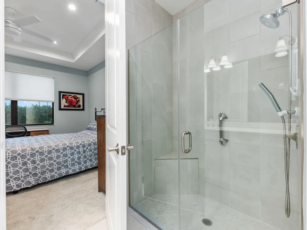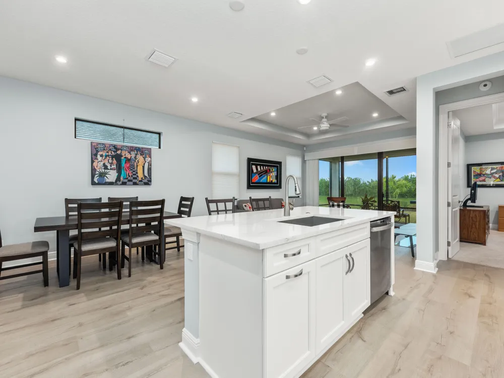 - Kitchen Island, Pantry, Split Bedrooms, High Ceilings, Walk-In Closet(s), Living/Dining Room, Snack Bar, Storm Window(s), Impact Glass, Dual Sinks, Primary Downstairs, Separate Shower