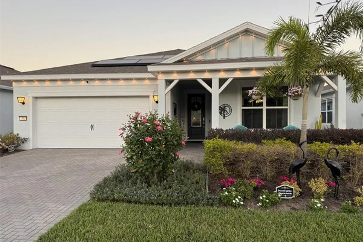 Buyers Agents WelcomeThis upgraded Prosperity floor plan by Del Webb Pulte is a charming craftsman style 2-bedroom, 2-bath home with a front porch offering that tropical paradise vibe. This bright open-concept design connects the kitchen, dining, and gathering areas, creating an inviting space for daily living and entertaining. With ample amounts of windows and glass sliders letting in natural light. Premium ceiling fans throughout. Top-Tier Aristocrat soft-close cabinetry, under cabinet lighting, quartz countertops, upgraded faucets, and a spacious walk-in pantry. Included is a whole house water treatment system. Upgraded ceramic tile throughout the home. Professionally designed custom closet in the Master bedroom. Masterfully blends timeless charm with modern Smart Home Technology with the Central Control System allowing remote monitoring and automation of lighting, security, and smart thermostat. Professional custom lighting inside and out. This home comes with Tesla Solar Panels and Tesla Power Wall with a transferable warranty...giving current owners a $0 electric bill and Whole House Battery Power Backup! The 2 car garage has insulated garage doors, two large overhead storage rack and epoxy flooring. Out back you have an east facing screened-in Lanai with an extended patio and aluminum fencing offering a cozy tropical paradise.Del Webb Sunbridge, a premier 55+ community, residents enjoy an unmatched lineup of amenities including a 27,000 sq ft clubhouse, Tavern & Grille, 24 hour guard-attended entry, two pools, tennis and pickleball courts, dog park, fitness center, walking trails, and a full-time lifestyle director offering a robust calendar of social events and activities.Located near Lake Nona, this property is conveniently located near shopping, dining, parks, and schools. Whether you're looking for a quiet suburban retreat or a vibrant community with plenty of amenities, this home offers the best of both worlds.Don't miss your chance to make this beautiful property your own. Schedule a showing today and experience the luxury and comfort of 2707 River Creek Lane. Welcome home!.