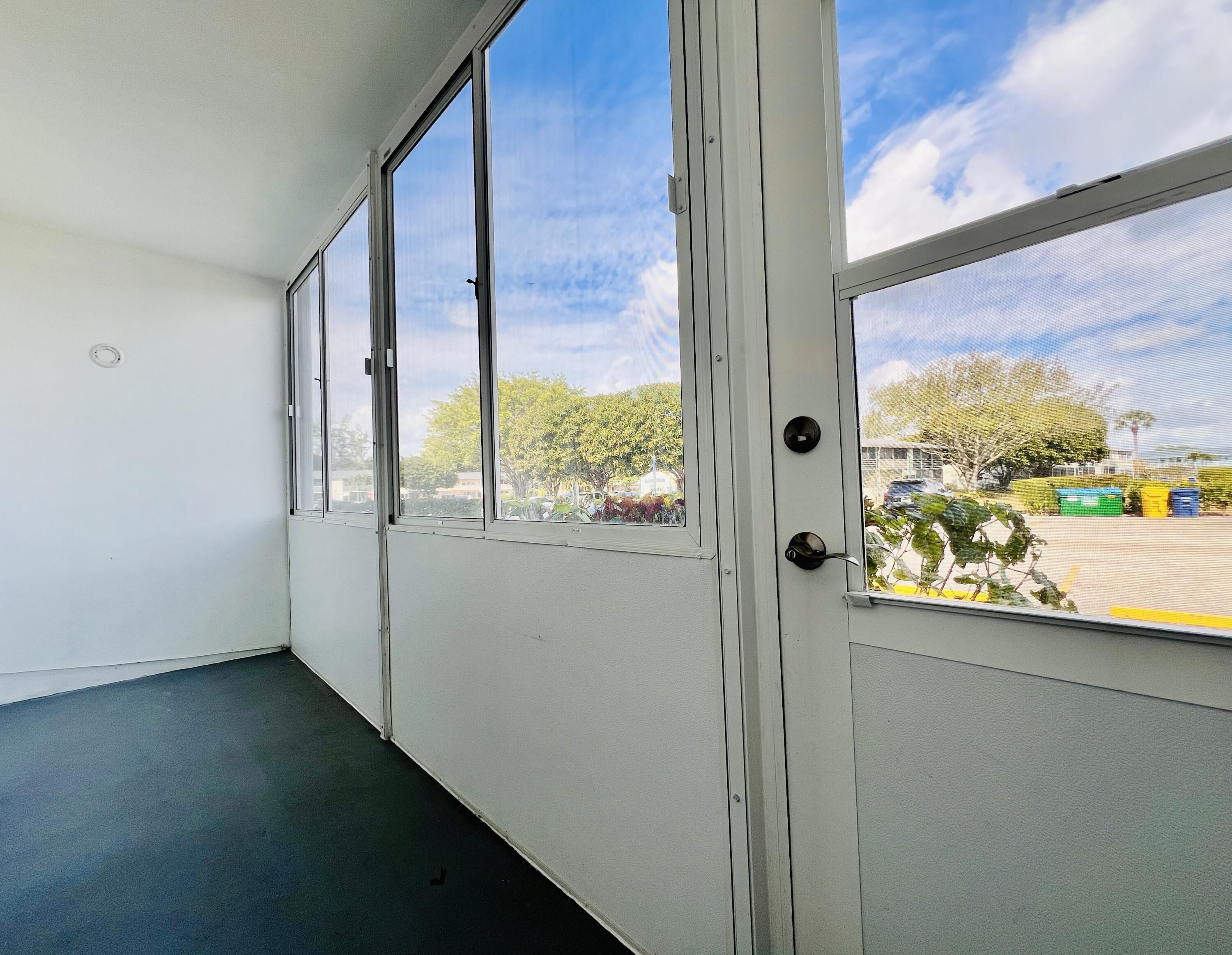 CHARMING IN 55+ CENTURY VILLAGE! Wonderful FIRST FLOOR 1/1 With Valuable Updates. Luxury Laminate Flooring Flows Throughout. Nicely Maintained Kitchen With Crisp White Appliances and Soft Grey Painted Cabinets. Full Hurricane Protection With Impact Windows in Front and Accordion Shutter in the Back. Updated & Enclosed Lanai Offers Extra Space and Door With Direct Access to Parking Spot. Great Location Close to the Popular Camden Pool! Century Village Is A Vibrant 55+ Community Centrally Located In Beautiful Palm Beach County, Florida! Enjoy An Active 55+ Lifestyle With Resort Style Amenities... Century Village is a 55+ Resort Style community with so much to offer - Much To Offer - shows, movies, clubs, pools, security, and transportation service. The Clubhouse features a theater, indoor pool, card room, community/party room, billiard room, shuffleboard, tennis, pickleball, bocce, and two outdoor pools, Numerous heated outdoor pools throughout the community. Separate fitness center with gym and outdoor heated pool & resistance pool. Two guarded gates and 24-hour roving security patrol.