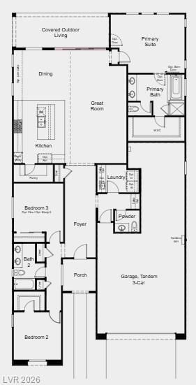 New Construction - Ready Now! Built by America's Most Trusted Homebuilder. Welcome to the Amaryllis at 271 Divo Marino in Portofino! This single-story floor plan offers 1,990 square feet of sweeping, open-concept living with 3 bedrooms, 2 full baths, and a powder room. A charming front porch opens to the foyer, where two secondary bedrooms and a full bath sit just off the entrance. Continue into the heart of the home to find a spacious great room, dining area, and chef-inspired kitchen that flow seamlessly together—perfect for entertaining. The luxurious primary suite is tucked away for privacy and features a spa-like bath with dual vanities and an oversized walk-in closet. Enjoy quiet mornings on your covered outdoor space. Convenience is built in with a tandem 3-car garage, powder room, and laundry area. Additional Highlights include: vaulted ceiling, 12' stacking sliding glass door at great room, and insulated 3 car garage.