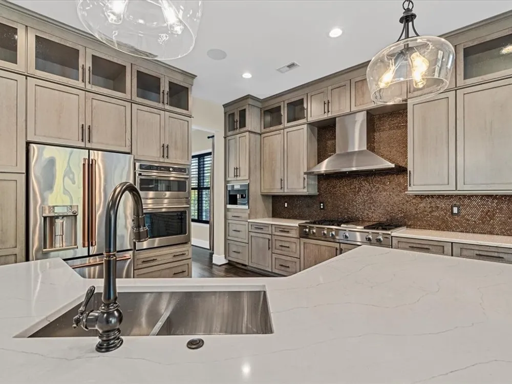 This stunning 3-bedroom, 2-bath residence offers the perfect blend of elegance, comfort, and convenience—all on one thoughtfully designed main level. Showcasing the highest-end finishes throughout, every detail has been curated for luxury living, from the gourmet kitchen and designer lighting to spa-inspired baths and wide-plank flooring, and extra high ceilings. The chef’s kitchen shines with extended cabinetry, a custom coffee bar, and a separate bar area that opens to the sitting room—perfect for entertaining. Step out back to enjoy serene private views from your patio, or stroll out front into a vibrant 55+ community just steps away. Here, neighbors gather at the clubhouse, unwind by the heated pool, or stay active in the fully equipped gym. With low-maintenance design and a lifestyle-rich location, it’s more than a home—it’s a way of life. Huge value! New instant hot water tank!