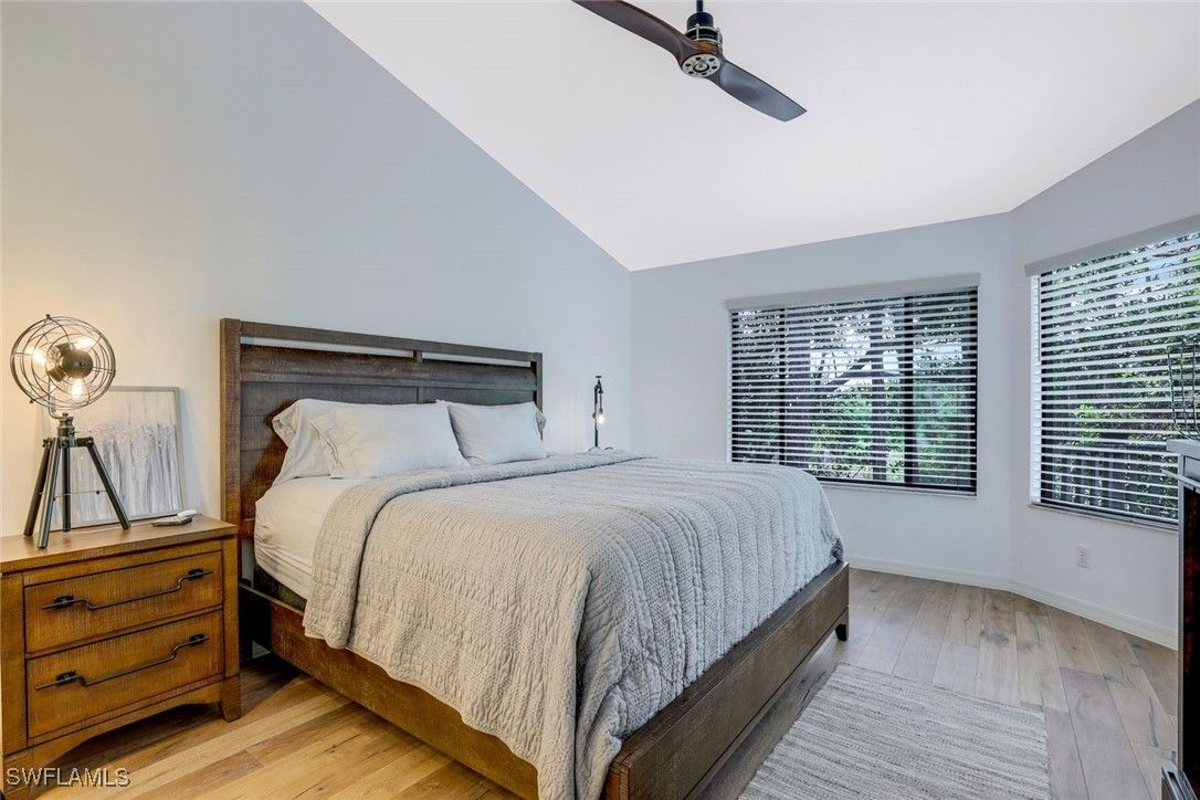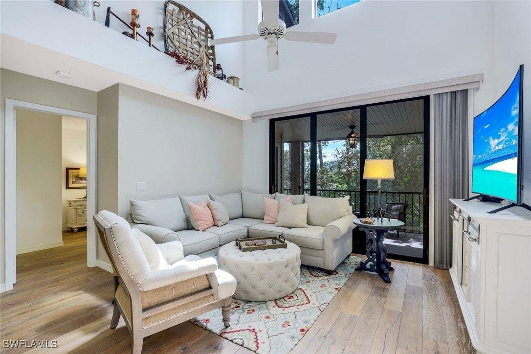 You will love this spacious and rarely available 3-bedroom, 3-bath end-unit villa, featuring the primary suite and a guest bedroom on the main level and a private guest suite upstairs. The home is located in the highly desirable Oakwood Villas of Bonita Bay. Tucked away on a quiet cul-de-sac and surrounded by serene lake and preserve views, this home is truly impressive. Step into the freshly painted, beautifully appointed great room, where the living and dining areas flow seamlessly together. The home features gorgeous hardwood flooring throughout, along with newer appliances, A/C, and numerous additional upgrades. Expansive windows fill the space with natural light, creating a bright and inviting atmosphere. The large screened lanai overlooks the lake and preserve, offering a peaceful setting for relaxing or entertaining. On the main level, the primary suite and second guest bedroom are thoughtfully split for maximum privacy. The upper-level guest suite includes a spacious bath and private balcony, the perfect place to enjoy stunning sunset views. Light-filled and impeccably maintained, this villa is an ideal retreat for enjoying the fabulous Southwest Florida lifestyle. Bonita Bay is a 2,400-acre gated community offering 12 miles of walking and biking paths, four waterfront parks including a private beach park, pickleball, tennis, bocce, and a full-service marina. Club membership is available with additional fees. Perfectly located just minutes from shopping, dining, beaches, and the international airport.
