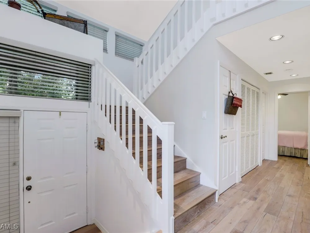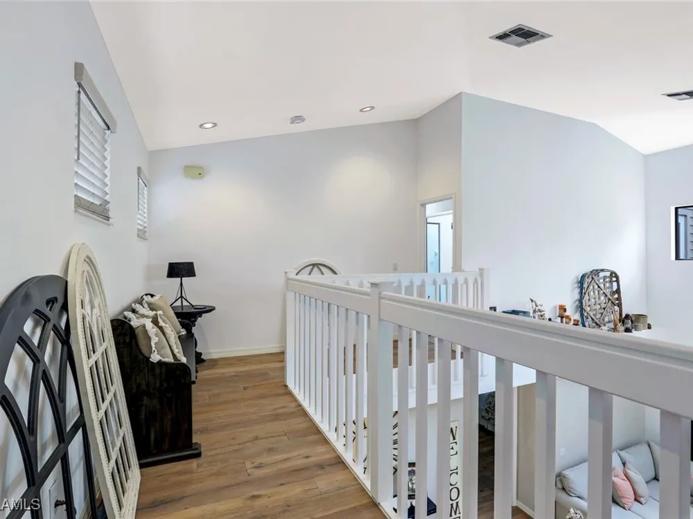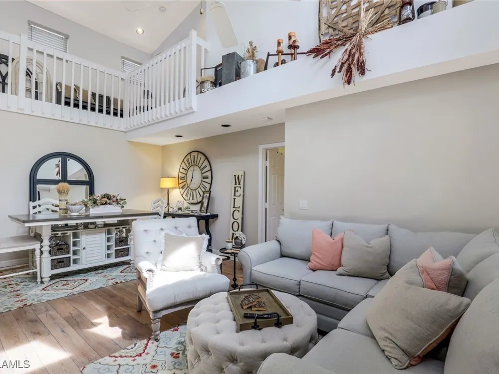 You will LOVE this spacious & RARELY available 3 bedroom/3 bath END UNIT villa with TWO bedrooms on lower level and guest suite on upper level, located in the gorgeous community of Oakwood Villas in Bonita Bay! Surrounded by preserve & lake views, situated on a cul-de-sac this 3BR/3BA home is sure to impress! Step into the freshly painted and beautifully decorated great room where LR, & dining are open to one another. Gorgeous hardwood flooring throughout, newer appliances, AC, and so much more! Huge screened-in lanai overlooking the lake - preserve area. On the first floor the master suite & 2nd guest bedroom are split, allowing for maxium privacy. The second level master suite features a large bath & a private balcony where you can observe the sunset each evening. This home has so many windows! Light and bright -- the perfect spot to spend the fabulous SWFL winter months. Bonita Bay is a 2,400-acre gated community w/12 miles of walking & biking paths, 4 waterfront parks including a beach park, pickleball, tennis, bocce, & a full-service marina. Club membership is available w/addl fees! Perfect location, Minutes to all that SWFL has to offer including the intl. airport!