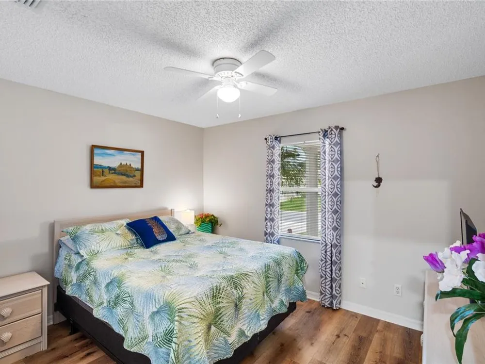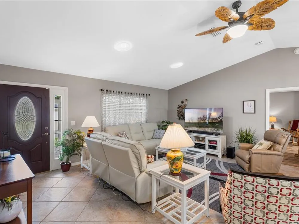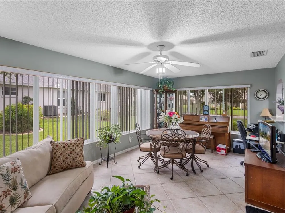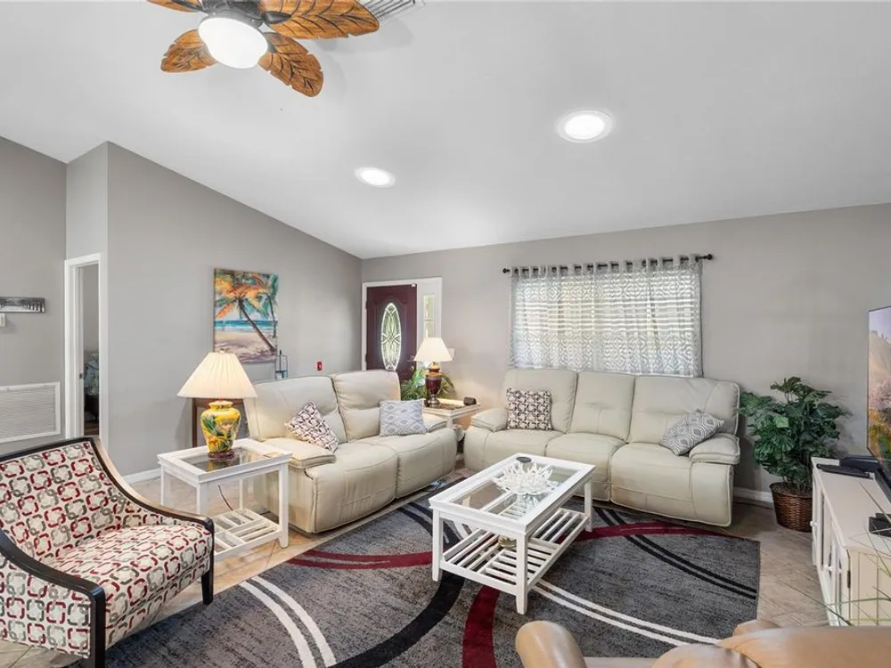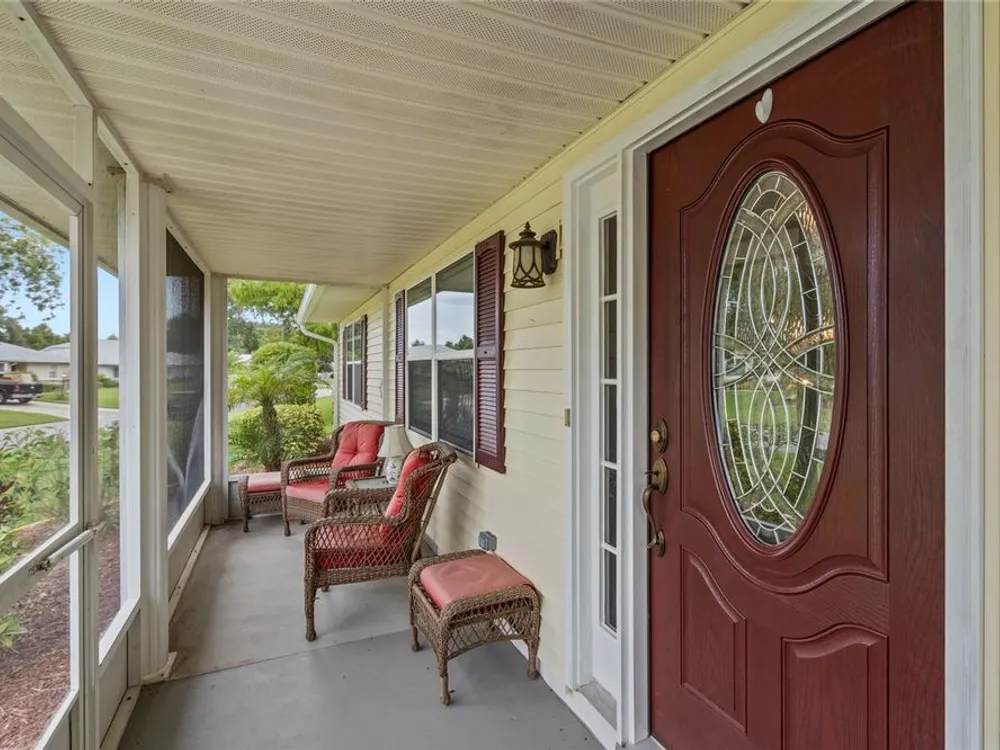 *BIG CORNER LOT* UPDATED KITCHEN*YOU MIGHT BE ABLE TO ASSUME A LOW INTEREST VA LOAN* Enjoy relaxing on your front porch and watching the world go by. Enter the front door and you'll appreciate the nice open floor plan. The living room is a great size and features 2 solar tubes for good light. Pretty, updated kitchen features an island with a gas range, modern hood and seating. Counter tops and backsplash are stone and updated appliances are stainless steel. There is also a pantry. The cute dining room is at one end of the kitchen. As you go through the dining room, you'll come to the Florida room. It is a wonderful, light-filled space with windows on 3 sides to enjoy green space. From the Florida room, you enter the birdcage-screened porch area. What a great space for grilling, reading etc. All floors in the central part of the home are tile. Bedrooms are laminate. No carpet here! On one side of the home you have a bedroom with bath just across the hall. Bath has tub/shower combo and tall commode. On the other side of the home is the primary bedroom suite. You'll love the large walk-in closet. The vanity area and shower/commode area are separate, so it's convenient for 2 to use at a time. Pegboard lines the walls of the over-sized garage. Roof is 4 years old. The panel box and water heater have been replaced. All of this in the wonderful, friendly, 55+, gated community of Highland Lakes. The community is financially sound and has a low monthly fee. There is a beautiful clubhouse with a library, billiard room, craft room, card rooms, fitness room and a large arena with a walking track. Many events, dinners, concerts etc. are held in the arena. You can enjoy indoor swimming, pickleball and tennis, as well as outdoors. Other sports available are horseshoes, shuffleboard, bocce, softball. There is a great craftsman shop and free boat and RV storage. Location is convenient to shopping, banks, groceries and major highways and attractions.