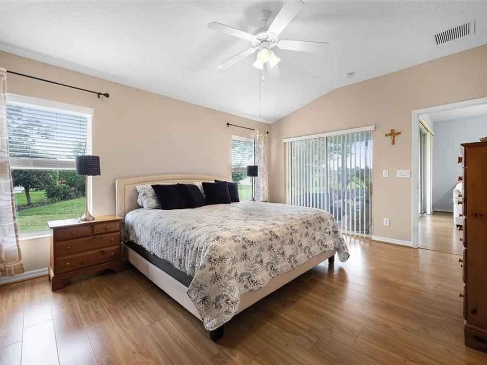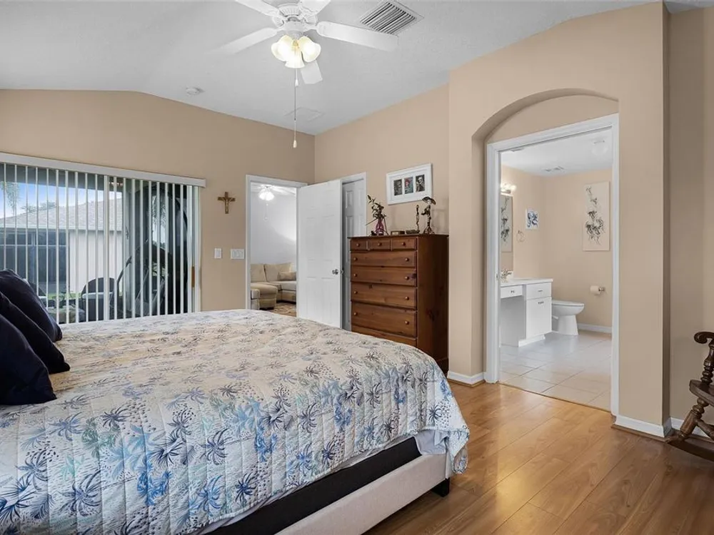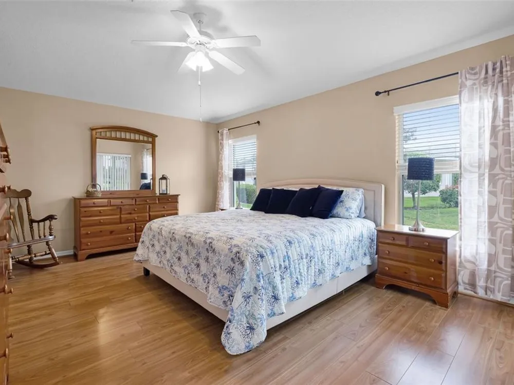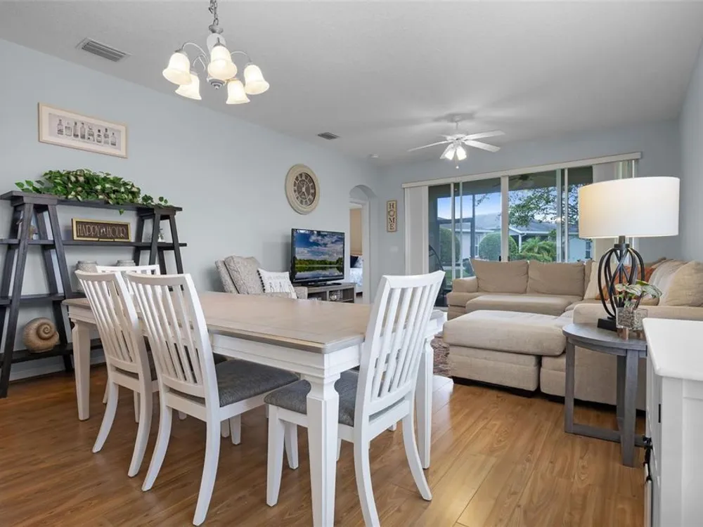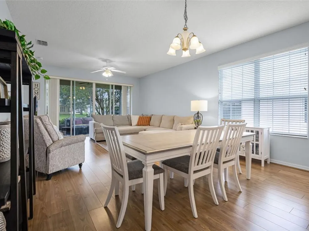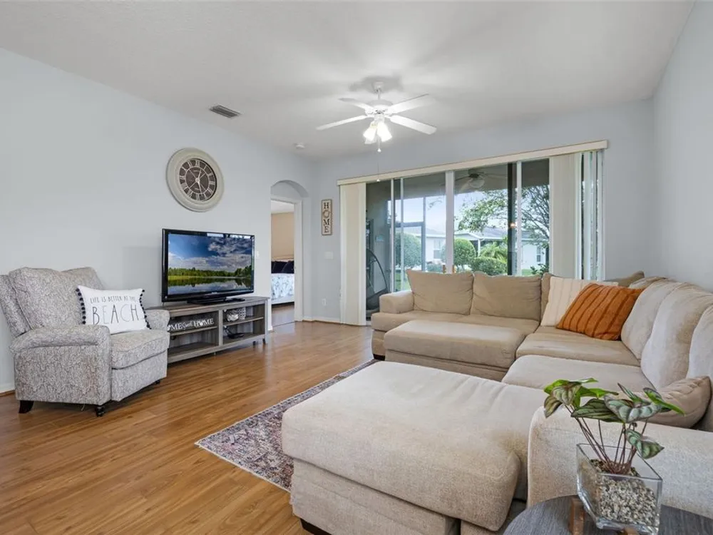 Welcome to the Florida lifestyle you’ve been dreaming of! This immaculate 3-bedroom, 2-bath home offers 1,477 sq. ft. of beautifully designed living space with peaceful pond views in the vibrant 55+ Legacy of Leesburg community. Step inside to a light and airy open floor plan perfect for both relaxing and entertaining. The spacious kitchen is a chef’s delight, featuring brand-new stainless steel appliances (2024), abundant cabinetry, generous counter space, a cozy breakfast nook, and a convenient pass-through to the dining area. The luxurious primary suite is a private retreat, complete with direct access to the screened patio, a large walk-in shower, and a soothing garden tub. Two additional bedrooms and a full bath offer plenty of space for guests or hobbies. Enjoy easy-care laminate flooring throughout the main living areas and bedrooms, and rest easy with a roof replaced in December 2019. Step out to the screened patio to take in the tranquil pond views, perfect for morning coffee or evening relaxation. Legacy of Leesburg offers a resort-style lifestyle with amenities galore, including a beach-entry pool and spa, fitness center, tennis, pickleball, bocce, shuffleboard, nature trails, RV storage, and more. The HOA fee includes gated community, cable TV, internet, and lawn care for truly carefree living. Conveniently located near shopping, dining, medical facilities, and major roadways, this move-in-ready gem is a rare find. Don’t wait, schedule your private tour today and start living the good life!