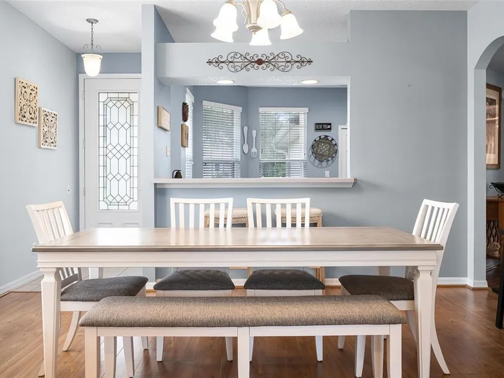 - Cathedral Ceiling(s), Ceiling Fan(s), Eat-in Kitchen, Kitchen/Family Room Combo, Open Floorplan, Split Bedrooms, Thermostat, Walk-In Closet(s), Window Treatments