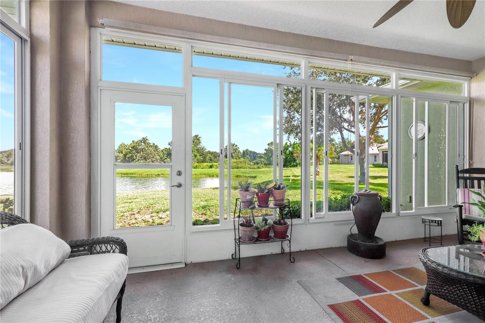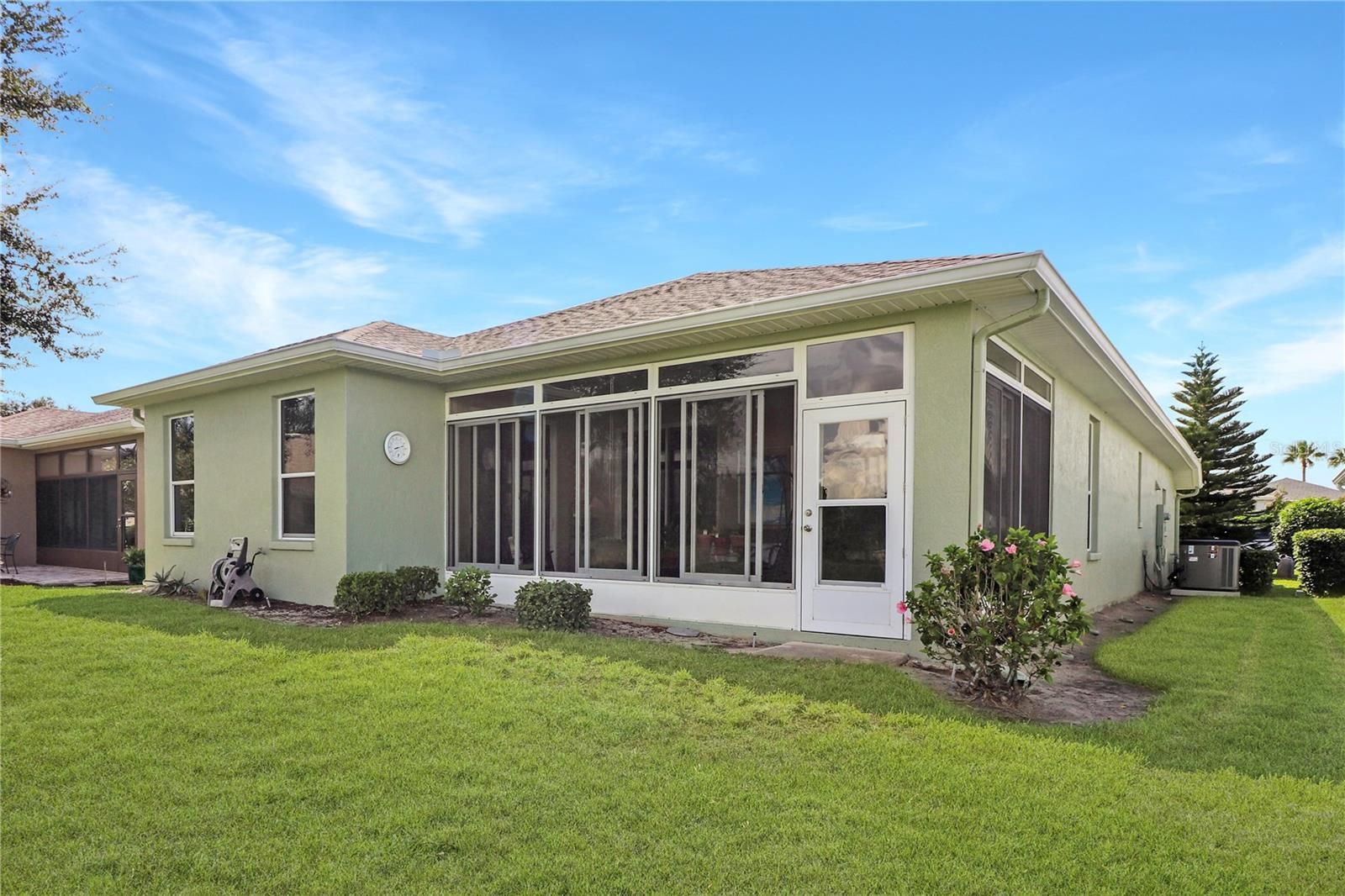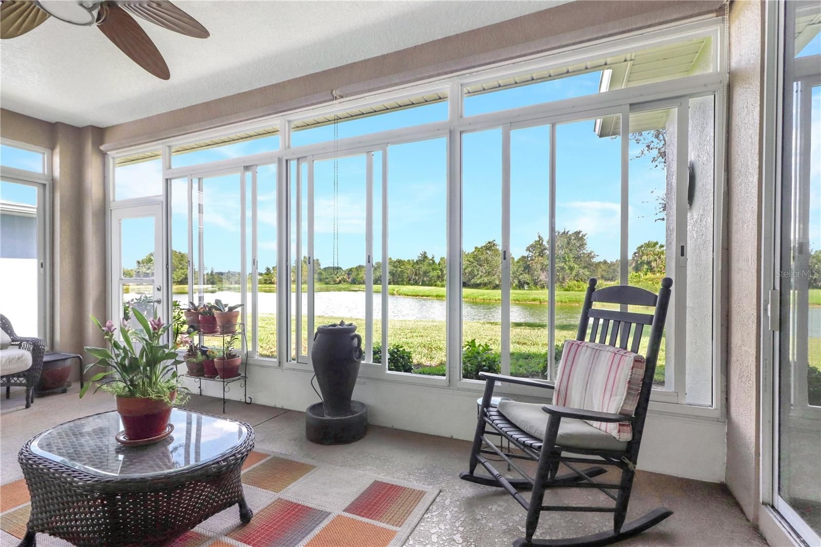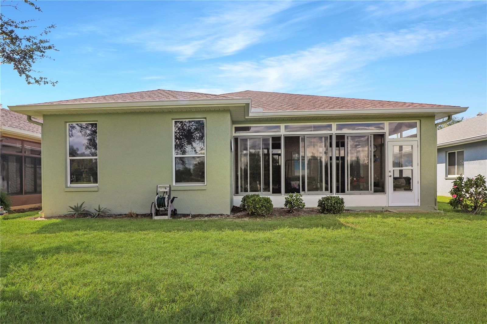Perfectly Positioned for Serenity: Water Views Framed by Trees, Sunrises & Moonrises in Legacy of Leesburg. Discover this captivating Tantallon model, ideally set on a rare water-view lot in the sought-after Legacy of Leesburg community. Thoughtfully designed and beautifully appointed, this 3-bedroom, 2-bath home offers the perfect blend of comfort and style. Step inside to an open great room with volume ceilings and a designated dining space, ideal for gatherings. Architectural details such as arched doorways, built-in niches, and plant shelves add charm throughout. The designer kitchen shines with raised-panel cabinetry, tasteful glass door accents, a convenient entertainment bar, and a cheerful breakfast nook. Adjacent, the laundry room features built-ins, a utility sink, and a bright window for added functionality. The owner’s suite provides a private retreat with sliding doors to the lanai, two oversized closets, and a spa-like bath boasting dual vanities with Corian counters, an enlarged tiled shower, and a pocket-door water closet. Guests enjoy their own wing with a comfortable bedroom and full bath for privacy. Additional highlights include abundant closet space, double-paned windows, upgraded tile, added attic insulation, new carpet in the bedrooms (2025), new HVAC system and water heater (2024), fresh exterior paint (2023) and roof was replaced (2019). Outdoors, the resort-style screened lanai—enhanced with acrylic sliders—offers serene, picture-perfect water views. Living in Legacy of Leesburg means embracing a “nature-themed” lifestyle, with miles of walking trails and nearly half the community’s acreage devoted to conservation. Residents also enjoy a full array of resort-style amenities, low HOA fees covering yard mowing, cable TV, internet, and secure RV/boat storage. This home offers the perfect balance of beauty, comfort, and active living—ready to be enjoyed today.