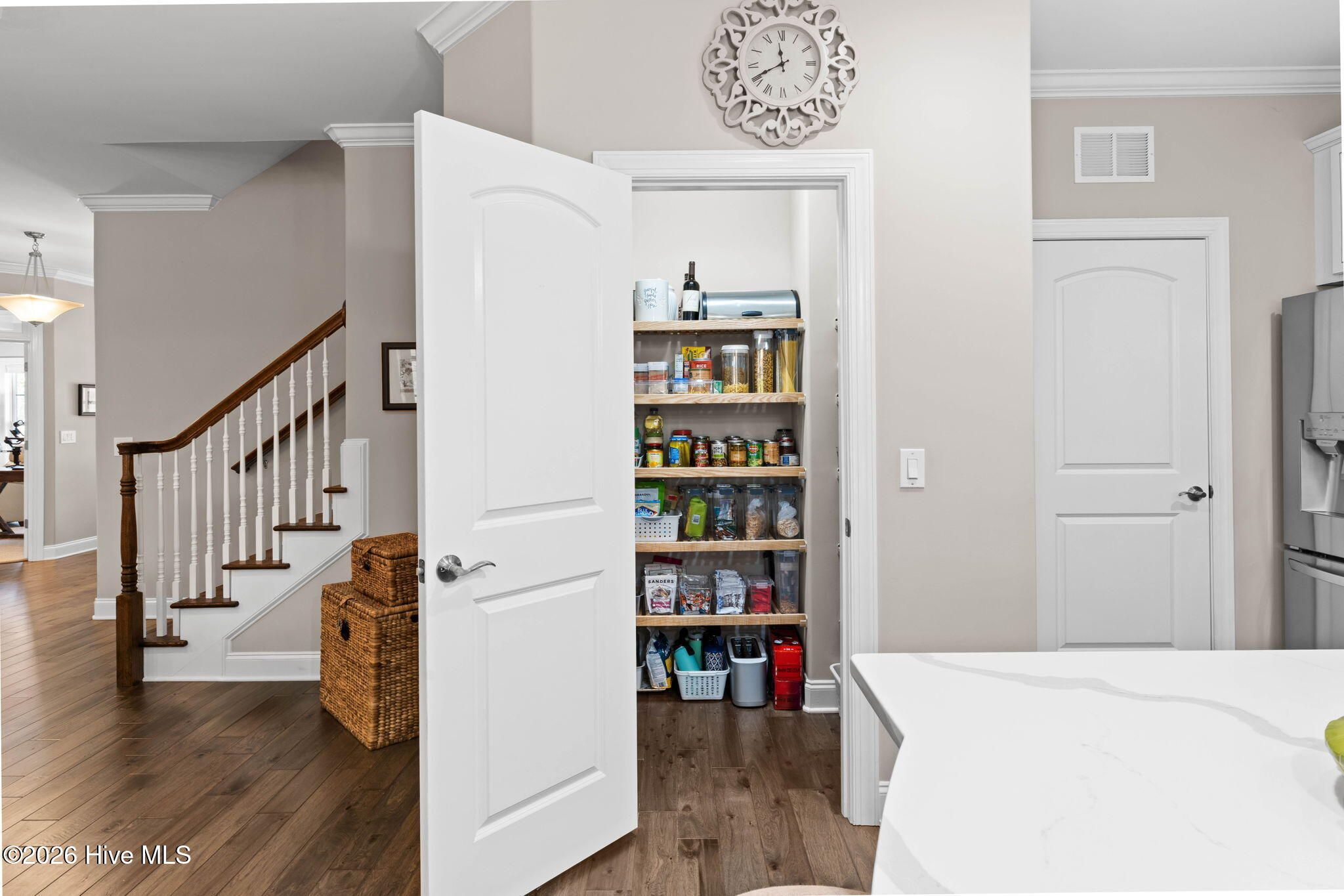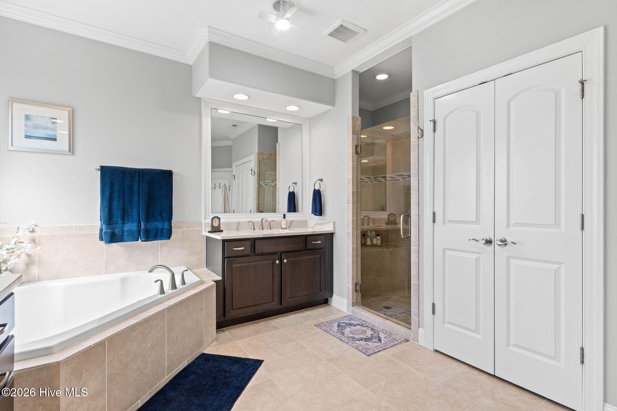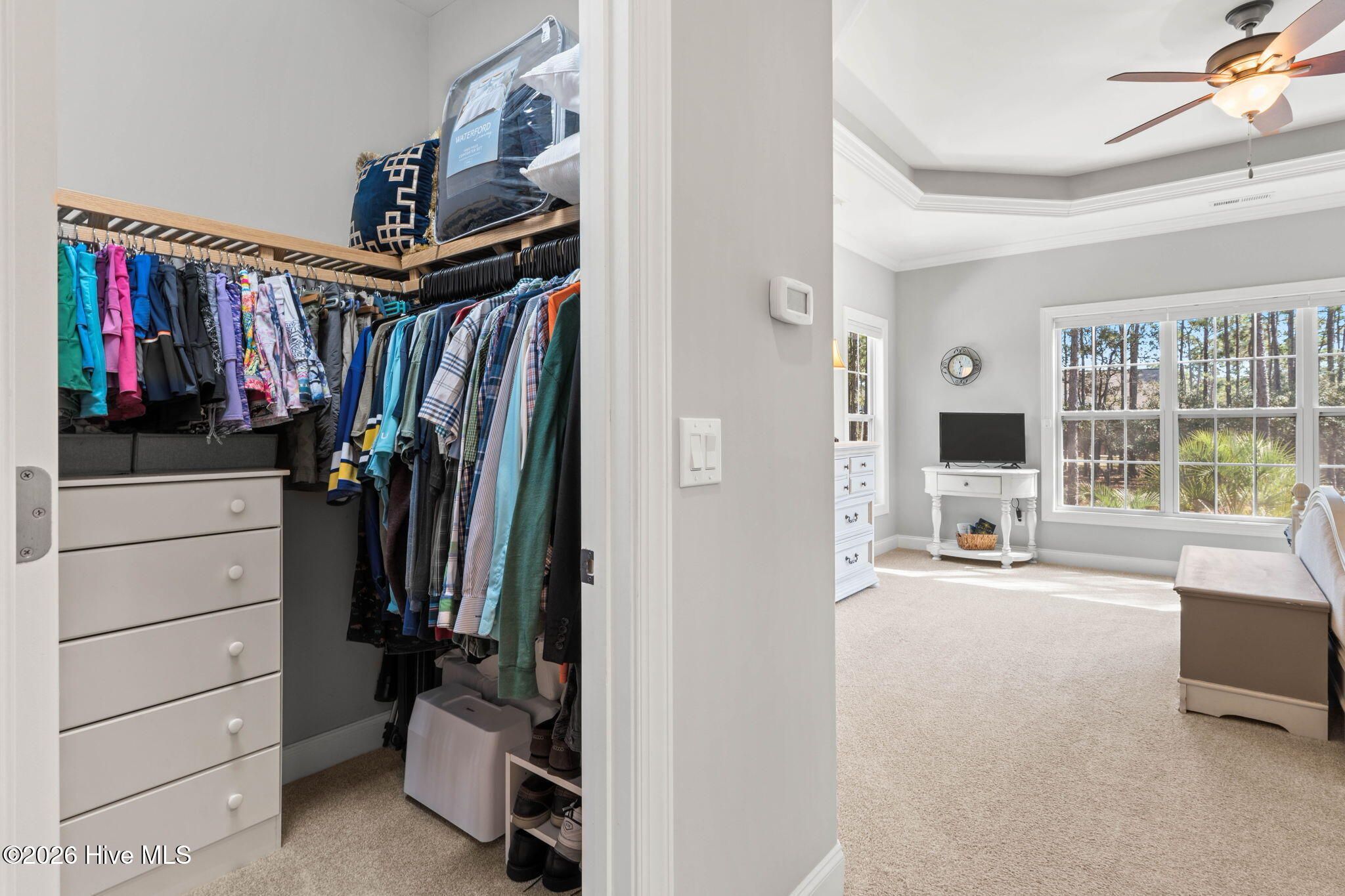 - Master Downstairs, Walk-in Closet(s), Tray Ceiling(s), High Ceilings, Mud Room, Ceiling Fan(s), Pantry, Walk-in Shower