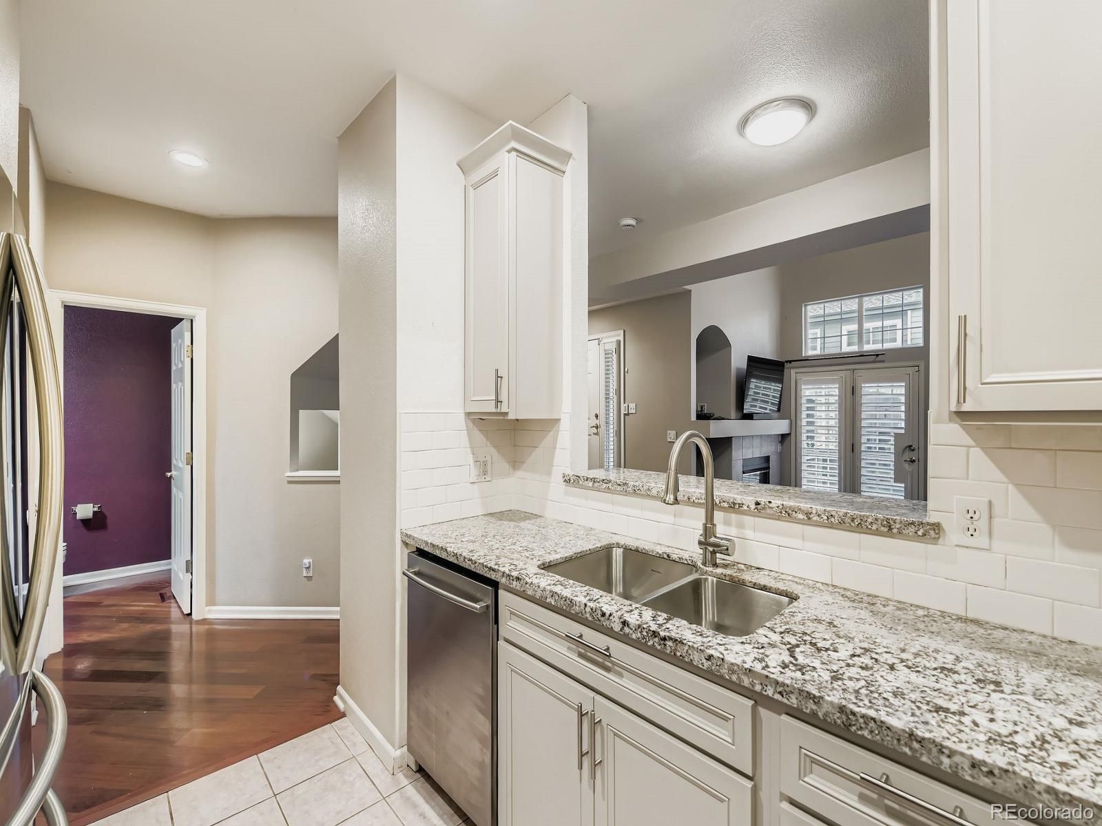 Enjoy living at The Greens at Riverwalk! Discover the beautiful upgrades of this well-maintained 3 bedroom, 4 bathroom home nestled near the Littleton Golf & Tennis Club. Upon entering the covered stone-wrapped porch, you're greeted with gorgeous hardwood floors and vaulted ceilings. The tastefully upgraded kitchen features granite countertops, stainless appliances and custom cabinetry. The living room opens to the deck, providing an indoor/outdoor experience and includes a gas fireplace, wide plank plantation shutters, and vaulted ceilings. There is a large pantry and convenient powder bathroom also on the main level. As you make your way upstairs you will find additional living space offered in the spacious loft, as well as the primary suite, en-suite, second bedroom and second full bathroom. In the primary you will find two custom walk-in closets with built-in shelving, motion activated lighting, and the spacious en-suite features floor to ceiling tile, a walk-in shower, granite counters, and dual sinks. As you head downstairs there is a built-in nook, great for an office! The third bedroom could also be perfect for a home gym or flex room. Also on the lower level is the 4th bathroom, laundry room with a utility sink, and tons of storage! Newer Furnace & A/C, Newer Roof and Exterior Paint, and a Central Vacuum System! Short distance to the clubhouse, community pool, hot tub, fitness center, and sauna. Within walking distance to the Platte River Trail, Littleton Golf Club and Downtown Littleton which offers shopping, dining, and entertainment. Bonus! Seller is including all wall-mounted TV's, a commercial grade elliptical, and all garage storage!