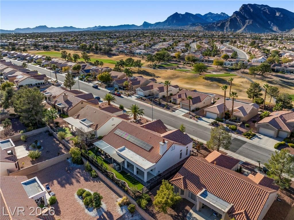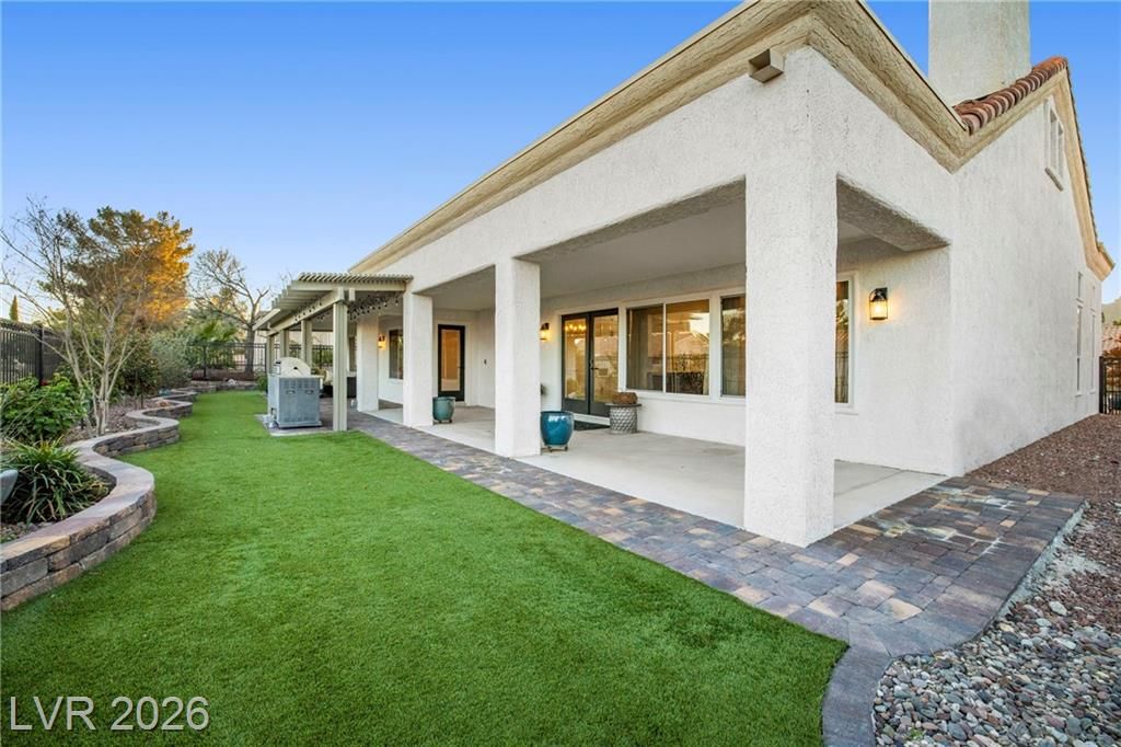 This beautifully renovated Santa Paula model in desirable Sun City Summerlin offers style, comfort, and efficiency. Stunning laminate flooring flows throughout, paired with upgraded cabinetry, quartz countertops, fixtures, and lighting. The spacious primary retreat features a walk-in closet, dual sinks, and a separate soaking tub and shower, plus upgraded guest and primary baths. The kitchen boasts quartz counters, a GE Monogram range, stainless dishwasher, under-cabinet microwave, breakfast bar, and eat-in nook. Enjoy a low-maintenance backyard with brick pavers, synthetic turf, mature landscaping, natural gas BBQ, tube steel fencing, and an Alumawood covered patio. Additional highlights include paid solar, whole-house fan, water softener with RO system, plantation shutters, epoxy garage floor, golf cart parking, and upgraded exterior lighting. Sun City Summerlin offers golf, pools, fitness centers, clubs, and proximity to Downtown Summerlin, dining, shopping, and entertainment.