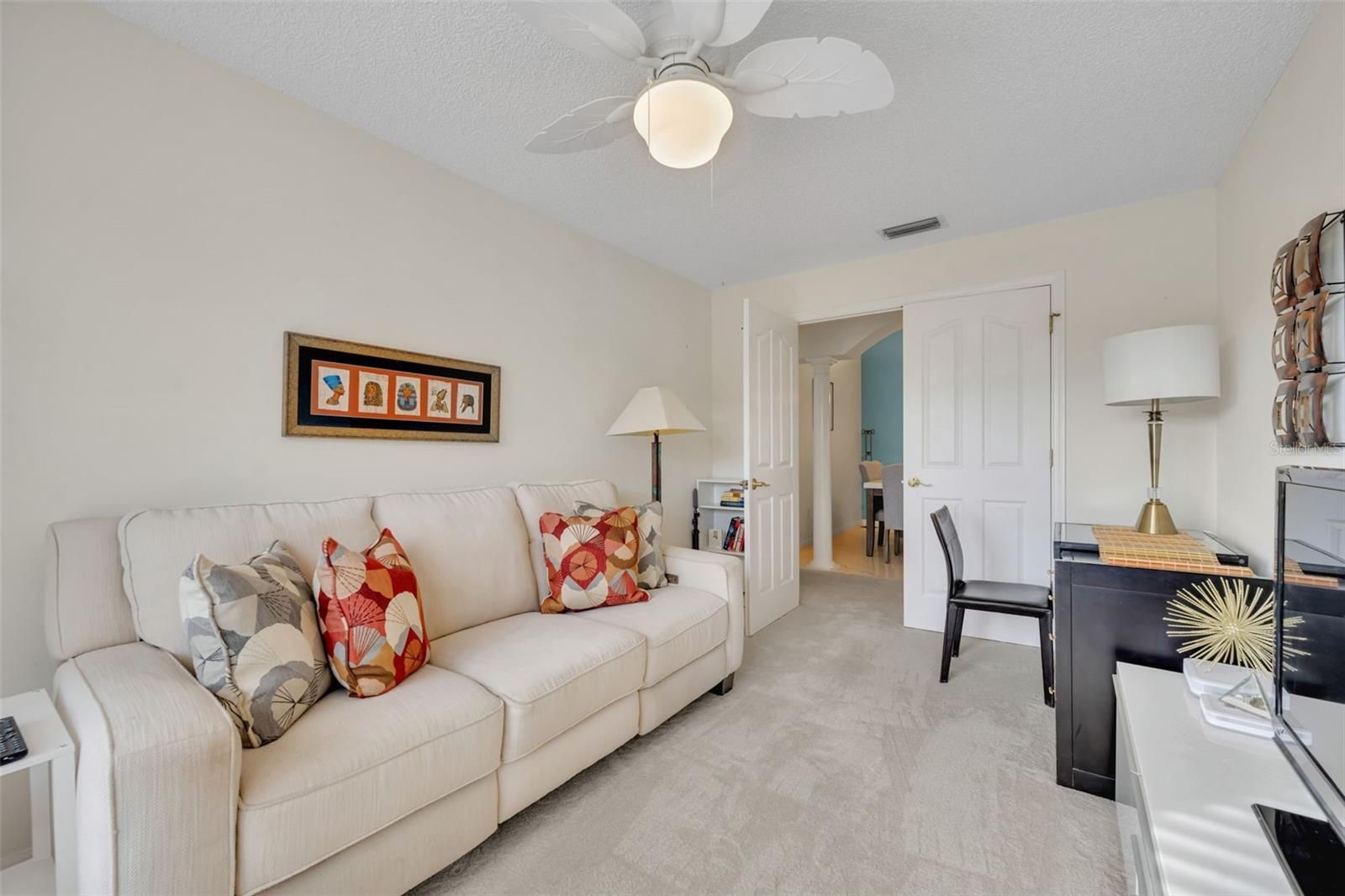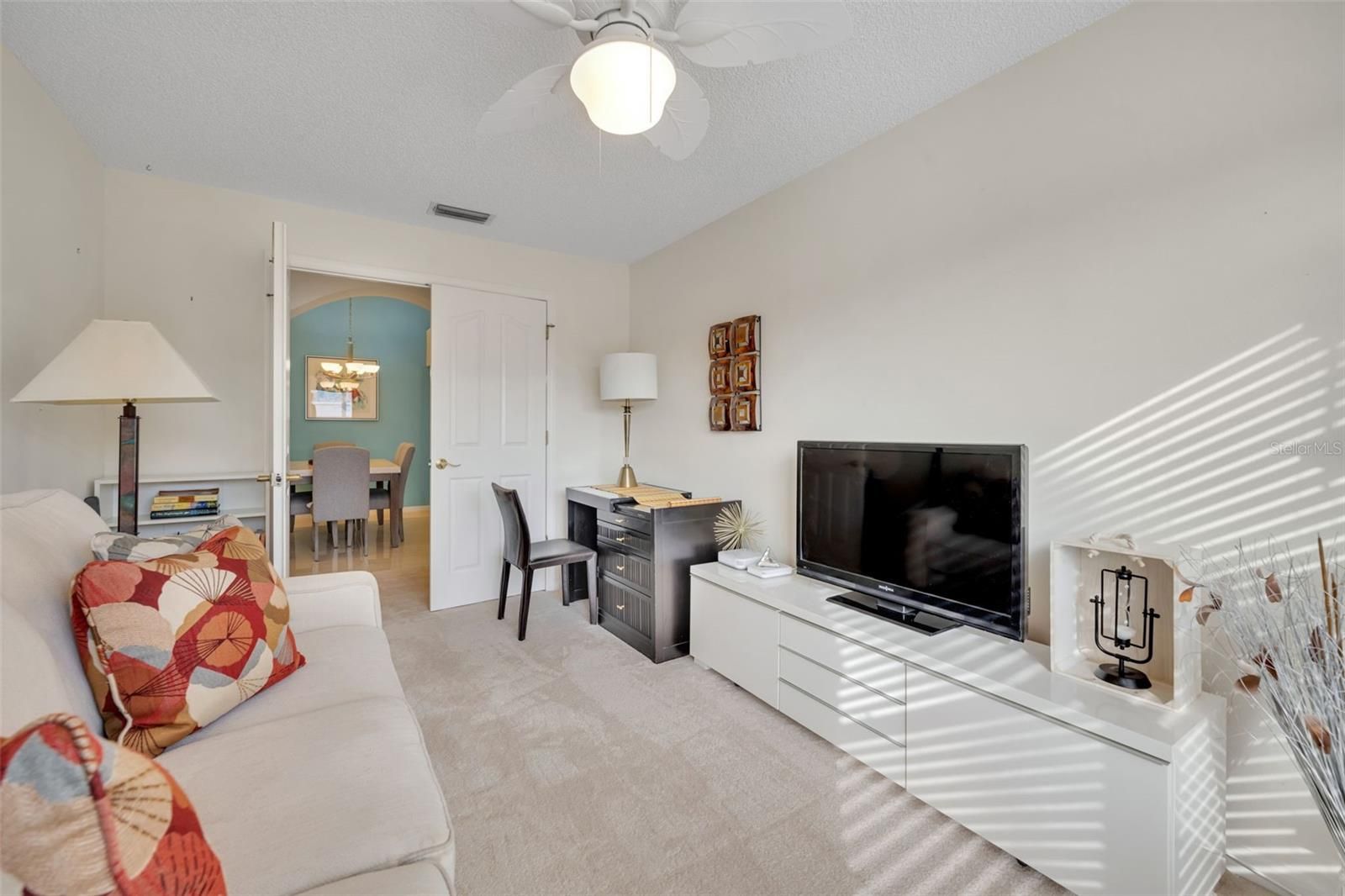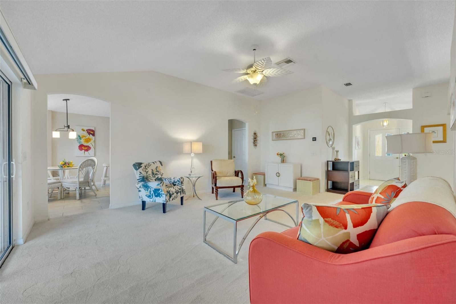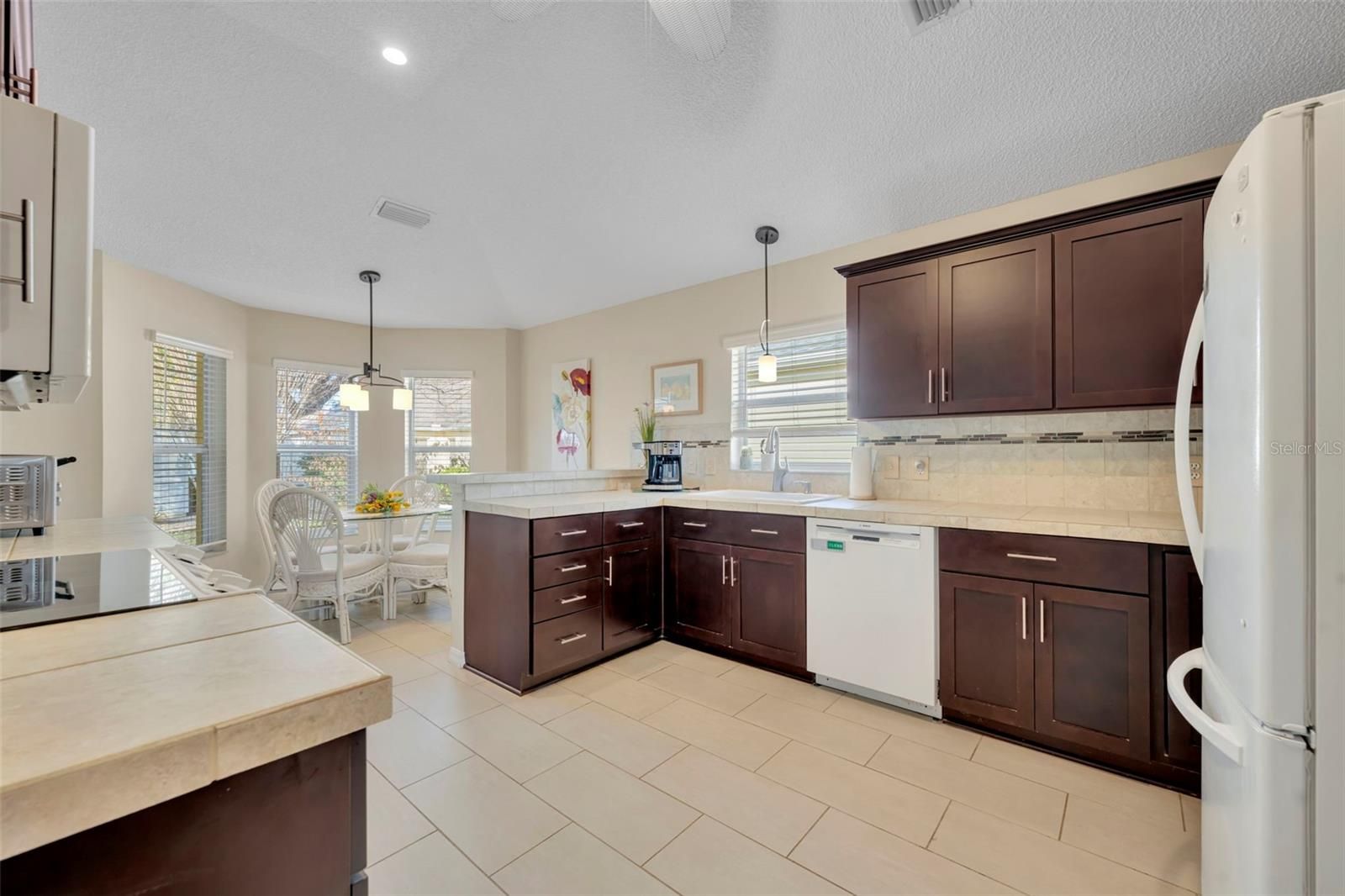 Location, Lifestyle, and Value — This Beautifully Updated Home in The Villages Has It All! BOND IS PAID!!! Welcome to this charming and well-appointed 2-bedroom, 2-bath home with a versatile BONUS ROOM that can easily serve as a THIRD BEDROOM, home office, hobby space, or den, offering flexibility to fit your lifestyle. The heart of the home is the beautifully upgraded kitchen, featuring gorgeous countertops, upgraded cabinetry with convenient pull-outs, a stunning stone backsplash, oversized kitchen sink, breakfast nook and quality appliances including a Bosch dishwasher, GE range and microwave, and Kenmore refrigerator — perfect for both everyday living and entertaining. One of the standout features is the unique dining room, a rare and inviting space that adds character and functionality, making gatherings with family and friends truly special. Throughout the home you’ll find brand-new carpet, creating a fresh and comfortable feel. The spacious primary suite offers dual vanities and tile flooring, providing both style and convenience. Step outside and enjoy Florida living at its best with a 9x20 screened lanai plus an additional patio area ideal for grilling or relaxing outdoors. The large garage provides ample storage, and a golf cart with brand-new batteries is included, making it easy to start enjoying The Villages lifestyle immediately. Additional highlights include: 2019 ROOF Samsung washer & dryer 1,534 sq. ft. of comfortable living space Furniture and furnishings negotiable Perfectly positioned for convenience, this home is: Approximately 10 minutes to Spanish Springs Town Square Only 14 minutes to Lake Sumter Landing Just minutes from the Savannah Center and the El Santiago swimming pool for entertainment, events, tennis and pickleball courts!! If you love to golf the El Diablo Executive Golf Course if minutes away!!! Located on a quiet street in a peaceful village, you’ll appreciate the serene setting — and on clear evenings, you can even watch rocket launches from Cape Canaveral right from your front yard, a truly special Florida experience. Whether you’re looking for a full-time residence or seasonal retreat, this home combines comfort, upgrades, and an unbeatable location. Schedule your private showing today and start living The Villages lifestyle!