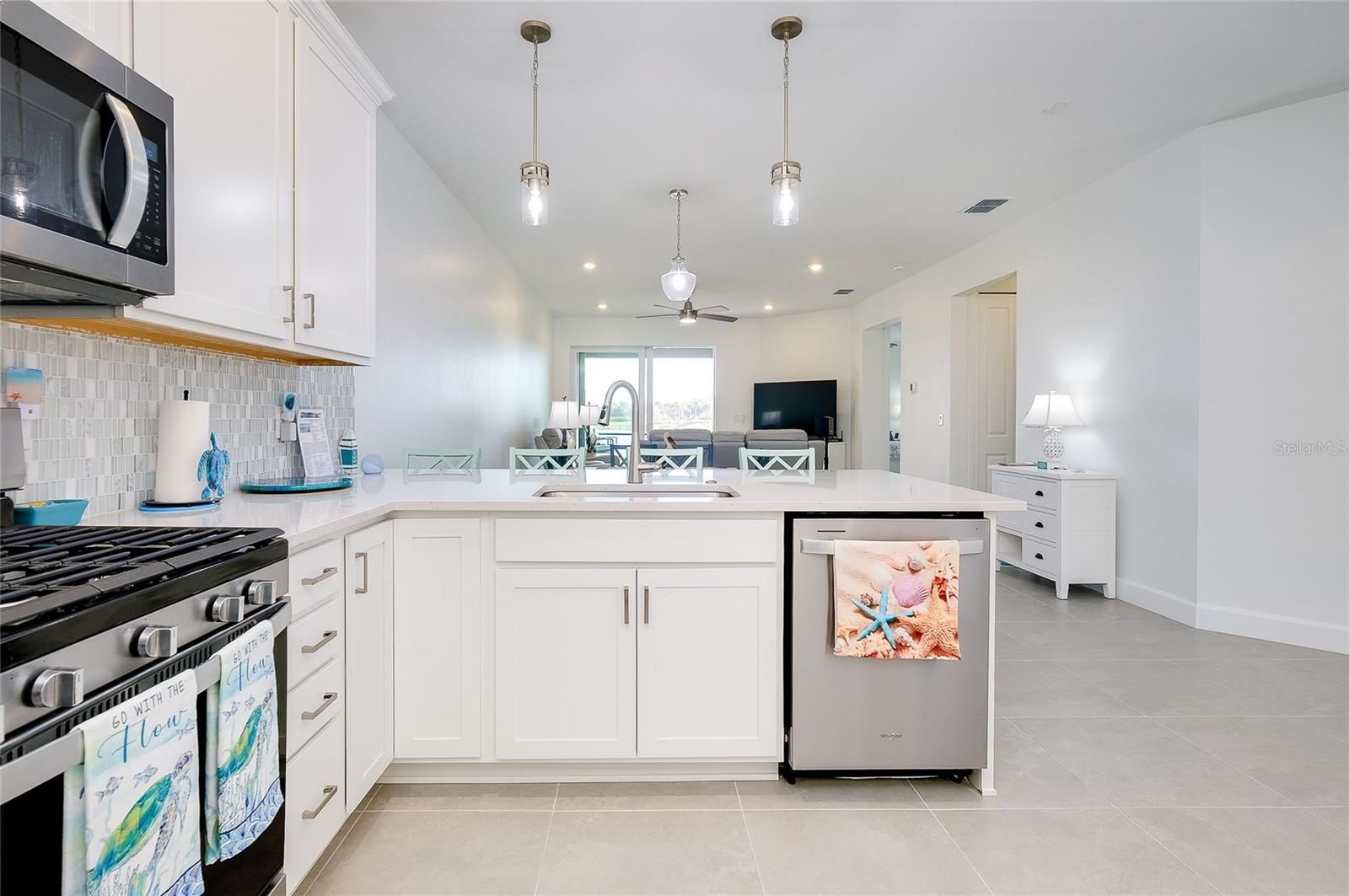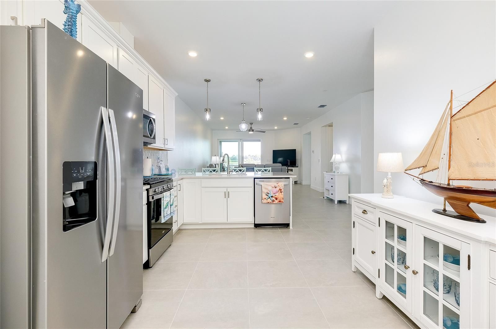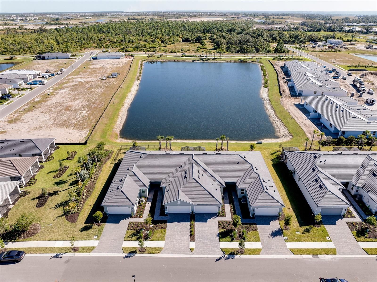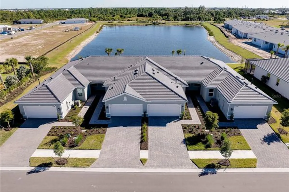 What an amazing view and opportunity to own a 2025 WATERFRONT villa in BEACHWALK by Manasota Key just 2.5 miles from the beach! This home was just built in JUNE 2025 and the owner has done SEVERAL UPGRADES such as CEILING FANS, PENDANT LIGHTS, blinds/window treatment, LAUNDRY CABINETS, EPOXY in the garage, and more! SAVE $4,000 in CAPITAL CONTRIBUTION SAVINGS compared to buying new from the builder and move in without the wait! BUILDER WARRANTIES are TRANSFERABLE to the new owner - this home is BETTER THAN NEW! Welcome to 27136 Capri Shores, a beautifully designed SEAGROVE model perfectly positioned to capture one of the best LONG WATER VIEWS in all of Beachwalk! This home offers the ideal blend of luxury, comfort, value, and features 2 BEDROOMS, 2 BATHS, and a versatile DEN or office. TILE THROUGHOUT for ease of cleaning! Step inside and you’ll find an OPEN-CONCEPT FLOOR PLAN with elegant finishes throughout. The GOURMET KITCHEN features modern cabinetry, GAS stove, stainless steel appliances, QUARTZ countertops, and a spacious ISLAND that flows seamlessly into the living and dining areas — perfect for entertaining or relaxing while enjoying your serene lake views. The owner’s suite offers a peaceful retreat with a spa-inspired bath and a very generous walk-in closet. Outside, your COVERED EXTENDED LANAI is the ideal spot for morning coffee, bird watching, or sunset dinners overlooking the sparkling water. Living in BEACHWALK by Manasota Key means every day feels like a vacation and NO CDD here or CITY TAXES! Residents enjoy MAINTENANCE FREE living and RESORT-STYLE AMENITIES, including: A stunning 11,000 sq. ft. clubhouse with ON-SITE DINING and BAR, RESORT-STYLE POOL with beach entry and lap lanes, PICKLEBALL and tennis courts, Bocce courts, FITNESS center and movement studio, DOG PARK and walking trails. Only minutes from Manasota Key beach, and local shopping and dining! Coming soon...the opening of the WATERLINE RESTAURANT and the addition of a new 13,000 sq. ft. 3RD AMENITIES CENTER with GOLF SIMULATOR, auditorium and huge GAME ROOM. Don’t miss your chance to own this move-in ready villa with an incredible long water views — and instant savings!