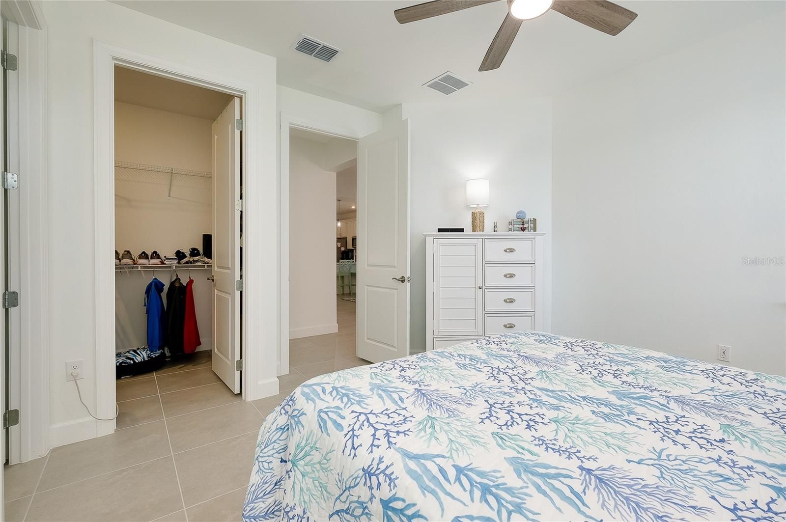 - Ceiling Fan(s), Eat-in Kitchen, In-Wall Pest Control, Open Floorplan, Main Level Primary, Solid Surface Counters, Split Bedrooms, Thermostat, Walk-In Closet(s), Window Treatments