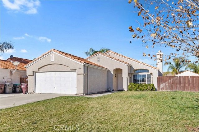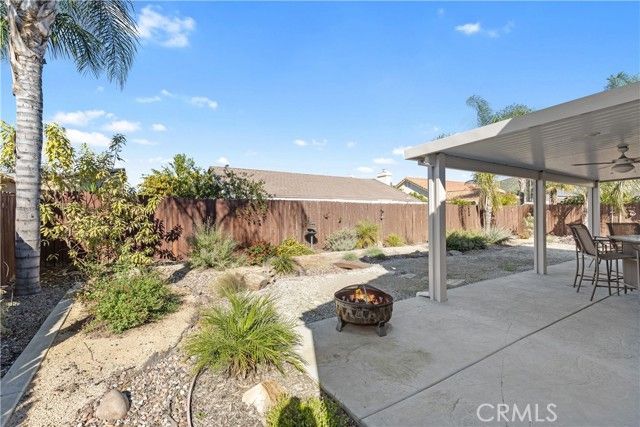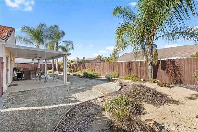 Welcome to this well maintained 2 bedroom, 2 bathroom single story home offering 988 square feet of comfortable living on a spacious 7,405 square foot lot. Located in a peaceful Menifee neighborhood with no HOA and low property taxes, this home is an excellent opportunity for first time buyers looking for a turnkey option in a great area. The living room, dining area, and kitchen are cozy yet functional, providing everything you need for everyday living. From the kitchen to the main living space, the pride of ownership is clear with a clean and well cared for interior throughout. The backyard is a standout feature with a patio area and attractive landscaping that looks great while remaining low maintenance. There is space on both sides of the home, including one side with a large storage shed or the potential to create RV parking. A solid starter home that checks all the boxes and is ready for its next owner.