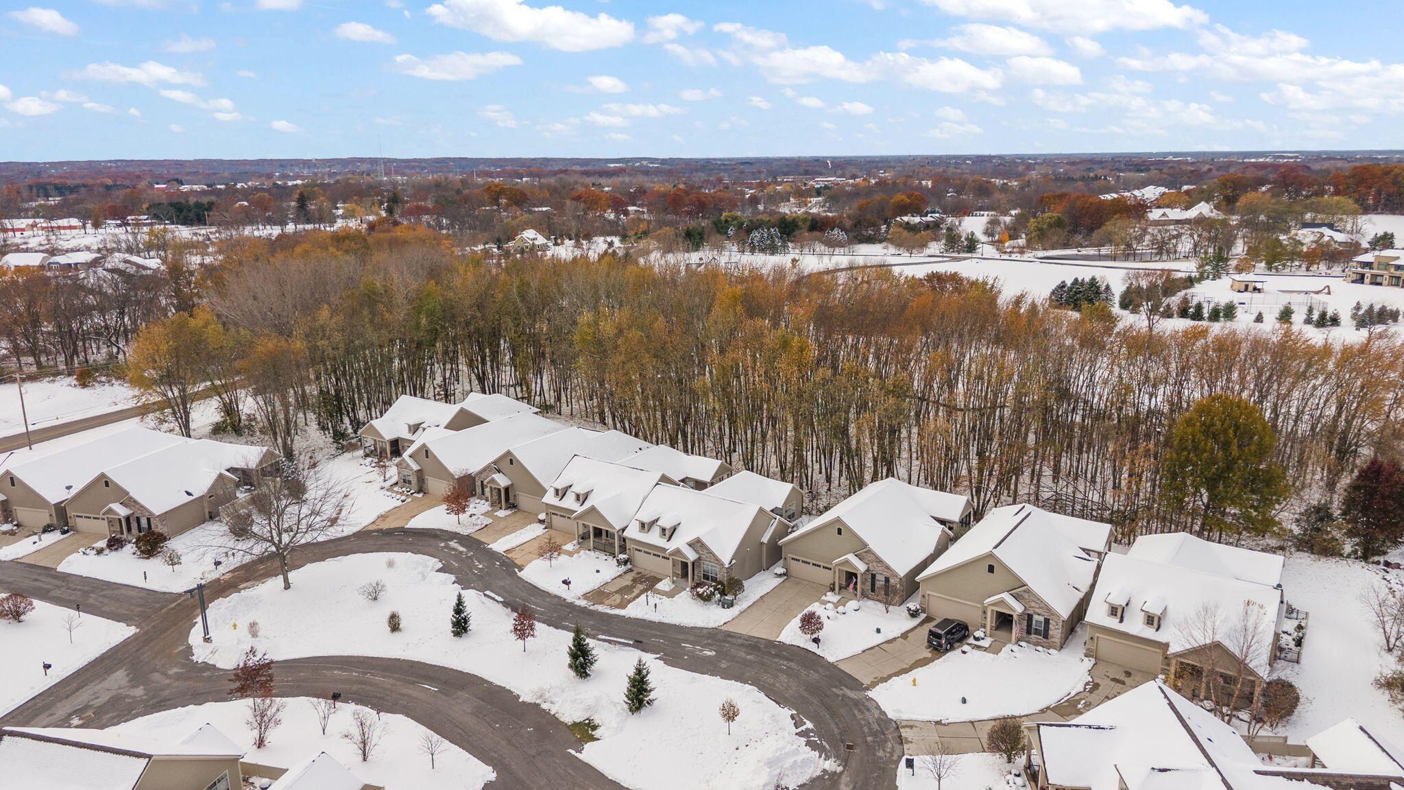 Experience luxury maintenance-free living in the highly sought-after Courtyard of Pepper Creek! This elegant ranch features two spacious bedrooms, a dedicated office, and a full unfinished daylight basement with endless possibilities. The inviting open floor plan offers a cozy gas fireplace, beautiful kitchen with granite countertops, stainless steel appliances, and elegant lighting throughout. The primary suite provides a tranquil retreat with a walk-in closet and attached bath featuring double vanities, while the second bedroom enjoys access to its own full bath. Convenient main-floor laundry adds to the ease of everyday living. Step outside to your private back patio overlooking the woods, perfect for peaceful mornings or entertaining guests. Additional updates include a new water heater (2024). The HOA covers pool, gym, clubhouse, landscaping, roof, snow removal, and lawn care, giving you the ultimate in luxury and low-maintenance living. Call for your showing today!