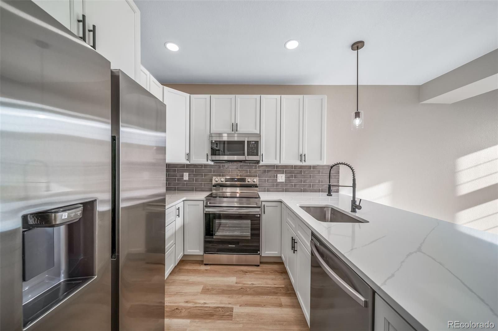 Completely remodeled from floor to ceiling, this stunning luxury townhome showcases elegant modern finishes throughout. The kitchen and all bathrooms feature white soft-close cabinetry paired with high-end quartz countertops, while luxury LVP flooring flows seamlessly across the main level. The spa-inspired primary suite is a true retreat, offering a custom walk-in shower, freestanding soaking tub, dual vanities, and generous his-and-hers closets. Two additional bedrooms and four beautifully updated bathrooms provide comfort and flexibility for guests or home office needs. Additional highlights include an oversized two-car garage, newer HVAC system, gas fireplace, and all new lighting and plumbing fixtures—making this home truly turnkey and move-in ready. The location is exceptional, with an easy commute to Downtown Denver or the Tech Center. Enjoy immediate access to the South Platte River trail and Littleton Public Golf Course, along with the security and amenities of a gated community featuring a clubhouse and swimming pool. Just a short walk to charming Downtown Littleton with its shops, dining, and entertainment. A rare opportunity to own a fully remodeled townhome in a premier location—priced well below all comparables.